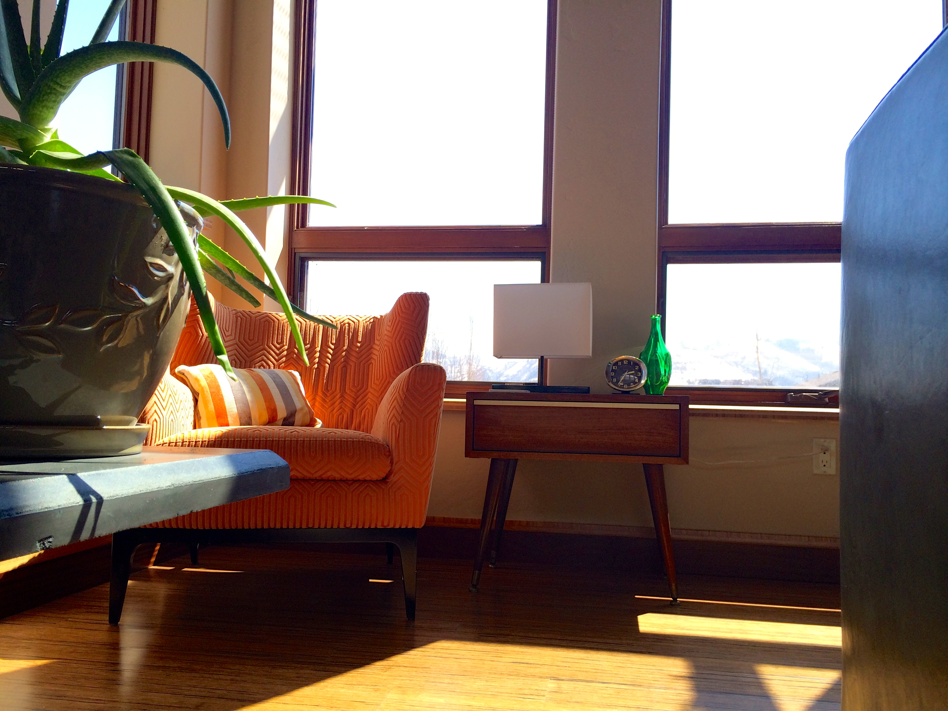 A gorgeous flower arrangement sent from two dear, far-off friends.