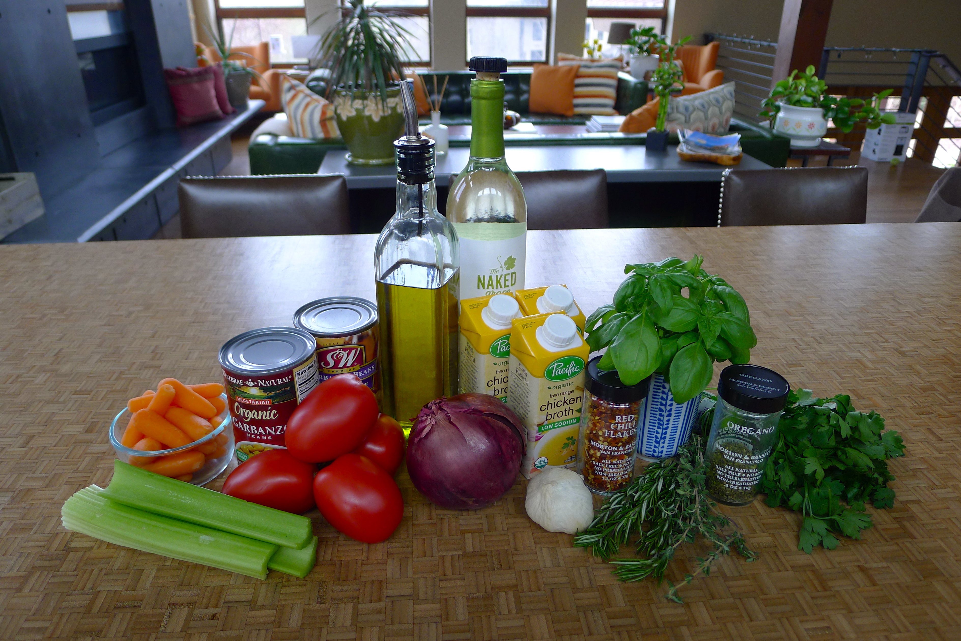 I took advantage of the chilly weather to try a tasty new soup recipe. Giada called it Ceci Soup; ceci are chickpeas in Italian. As I gathered the ingredients, I enjoyed what was literally the calm before the storm rolled in.