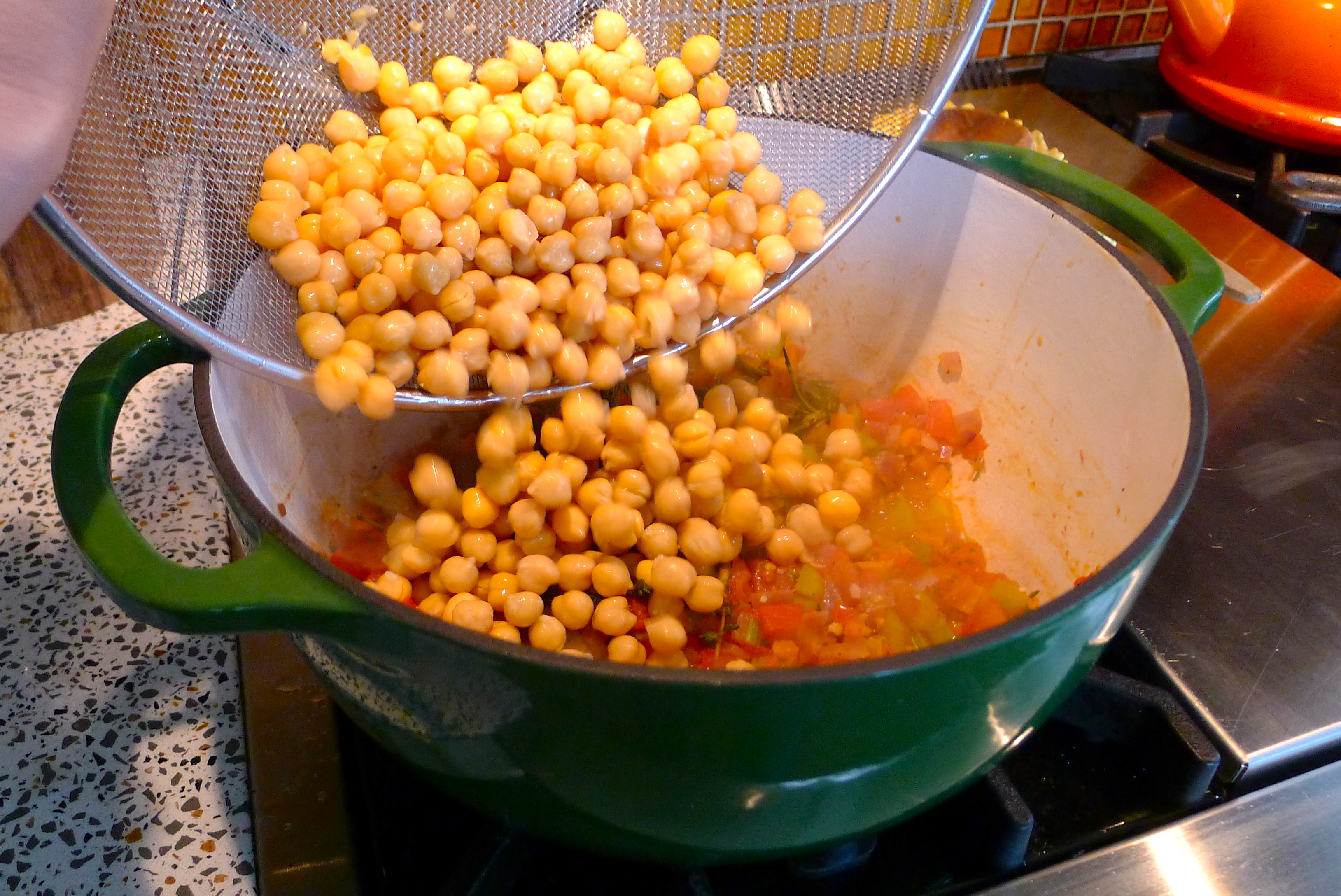 - 2 cans chickpeas, rinsed and drained