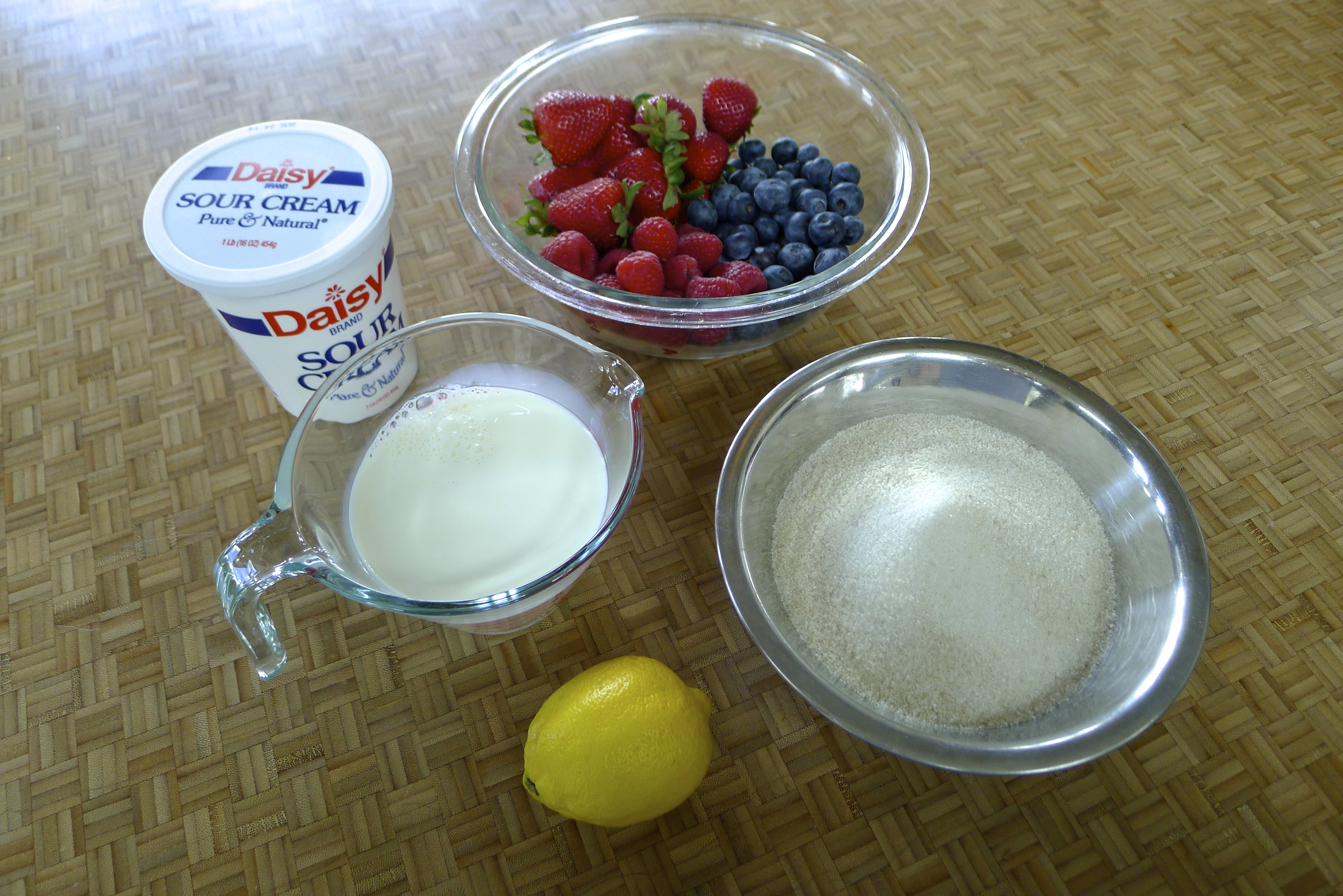 - 3 cups berries (I used blueberries, strawberries, and raspberries)