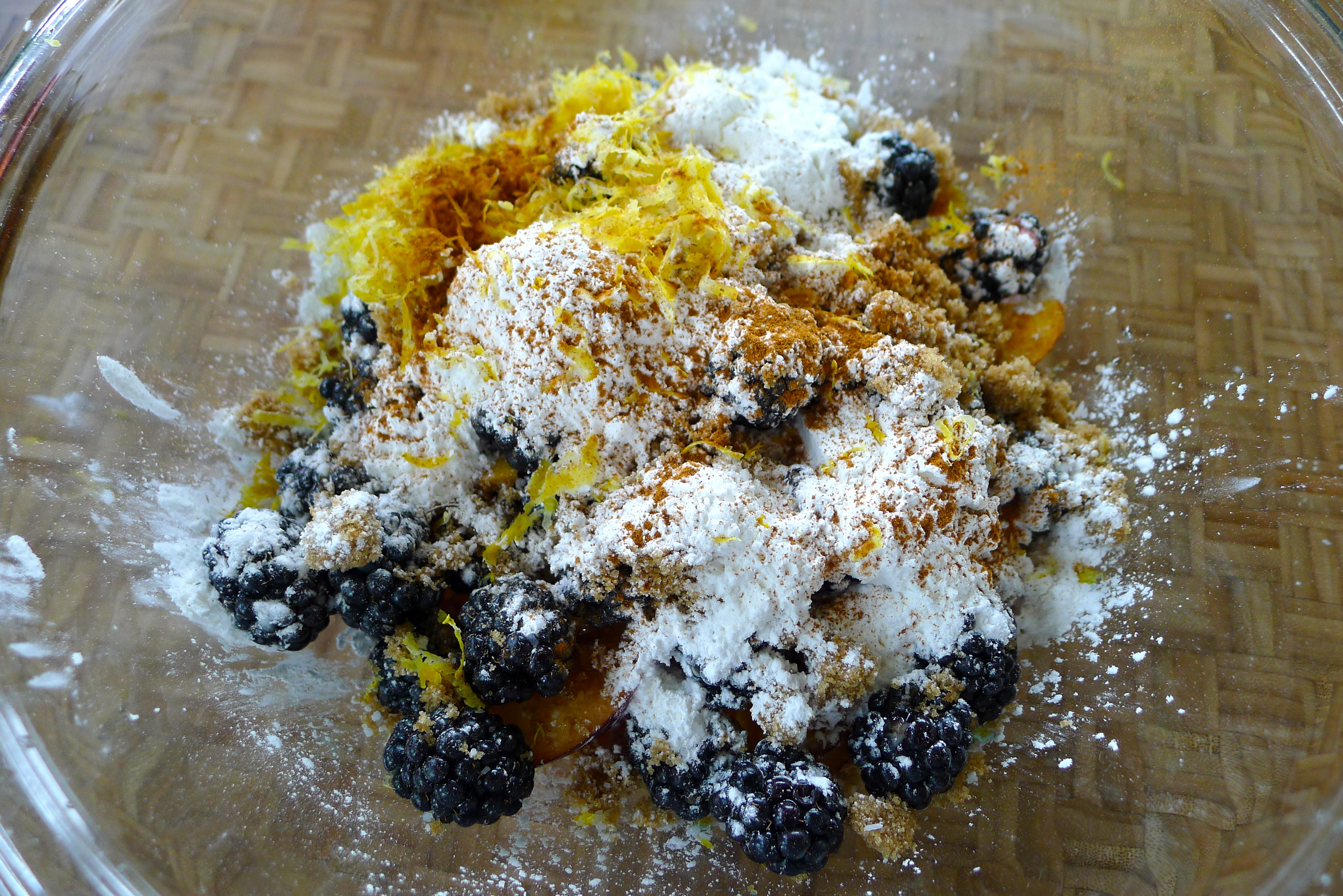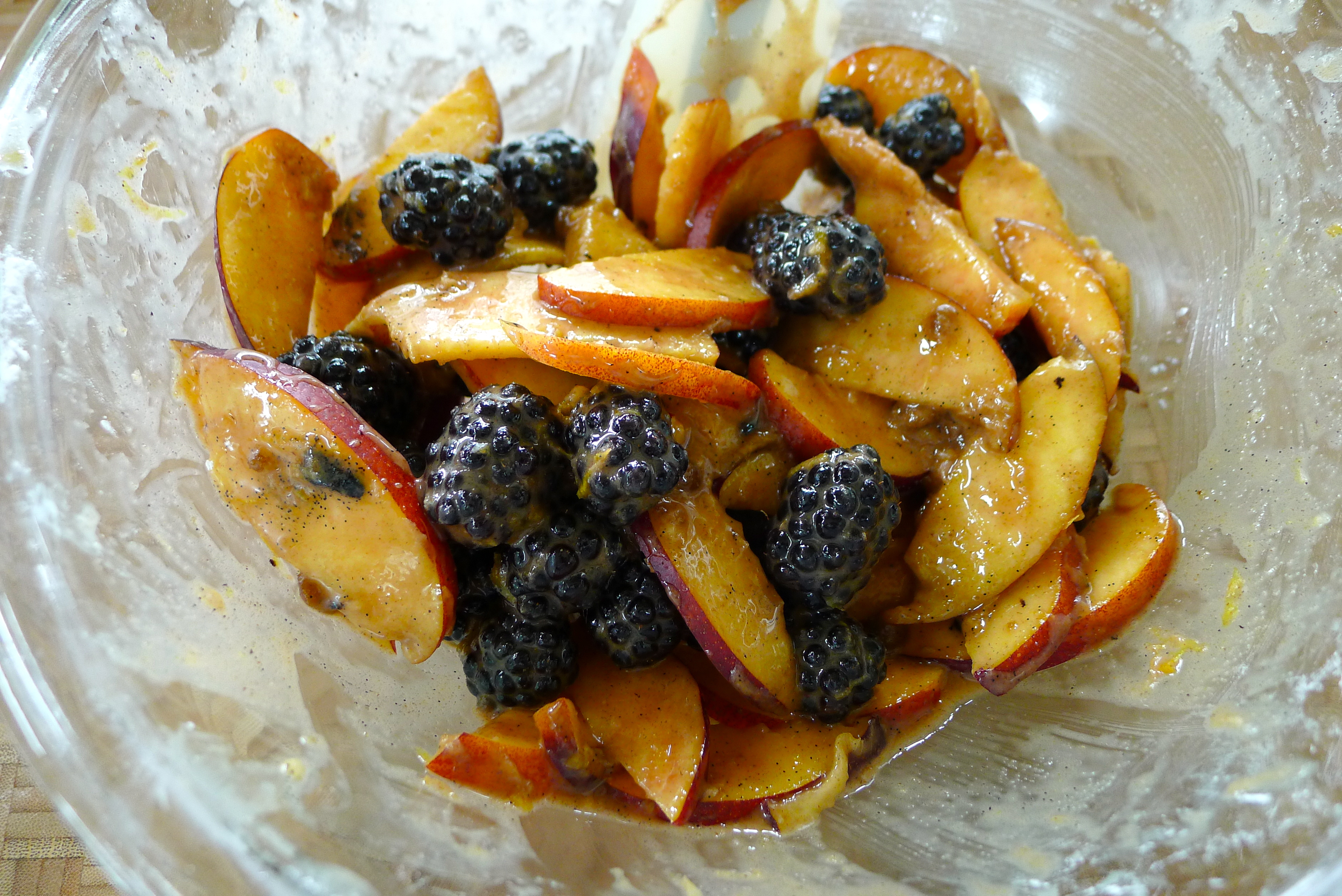 - 3+ cups of your favorite/in-season fruit. I used two nectarines and a pint of blackberries.