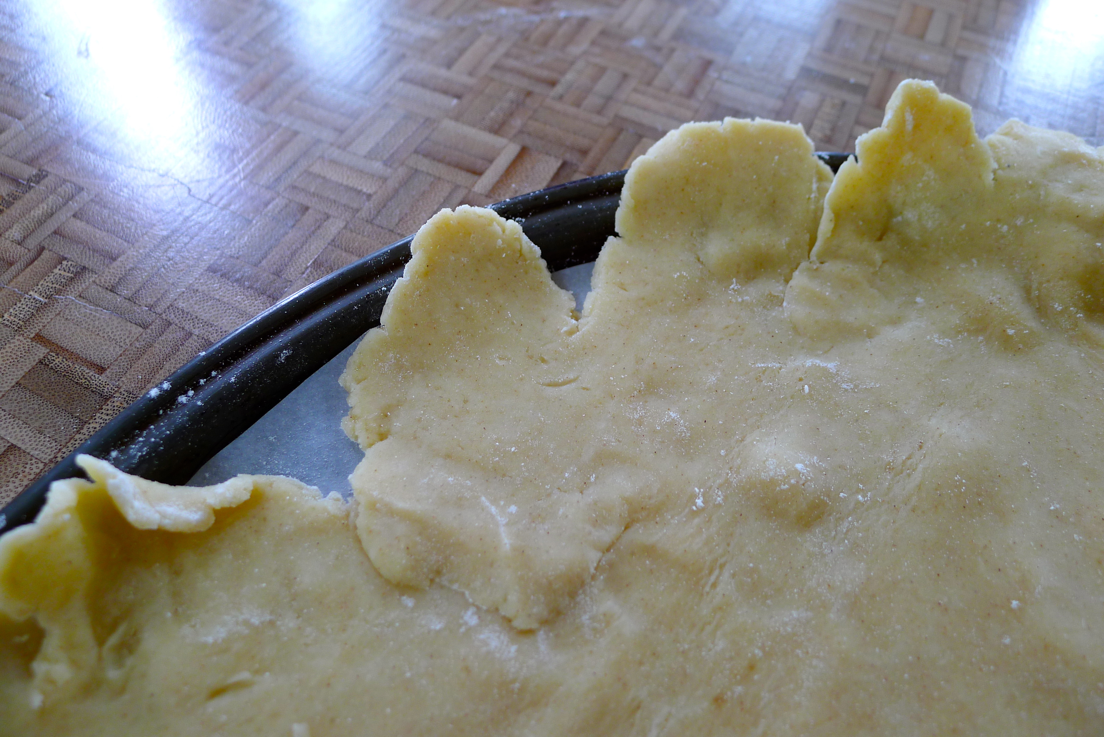 In a food processor, mix the flour, sugar, salt, and cinnamon. Add the butter and pulse until the mixture turns to crumbs. Add the lemon juice and then one tablespoon of water at a time, mixing in each one, until it turns into a ball of dough.