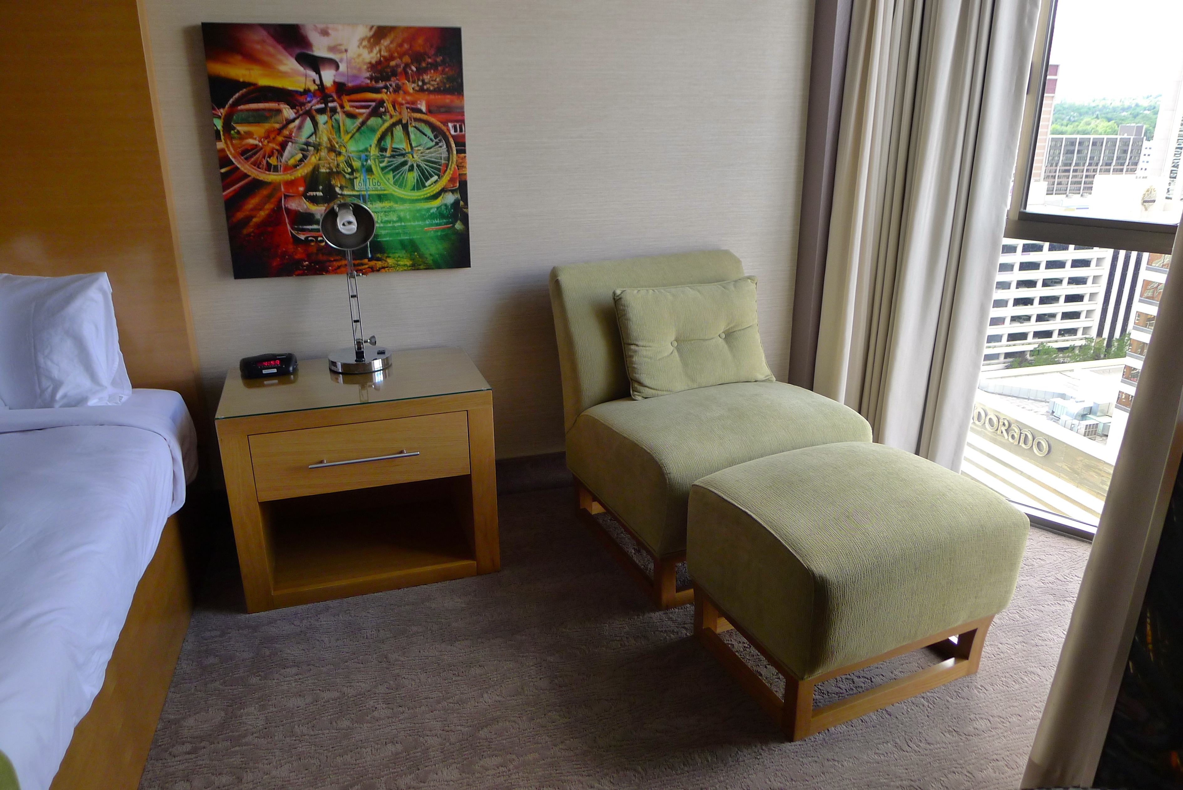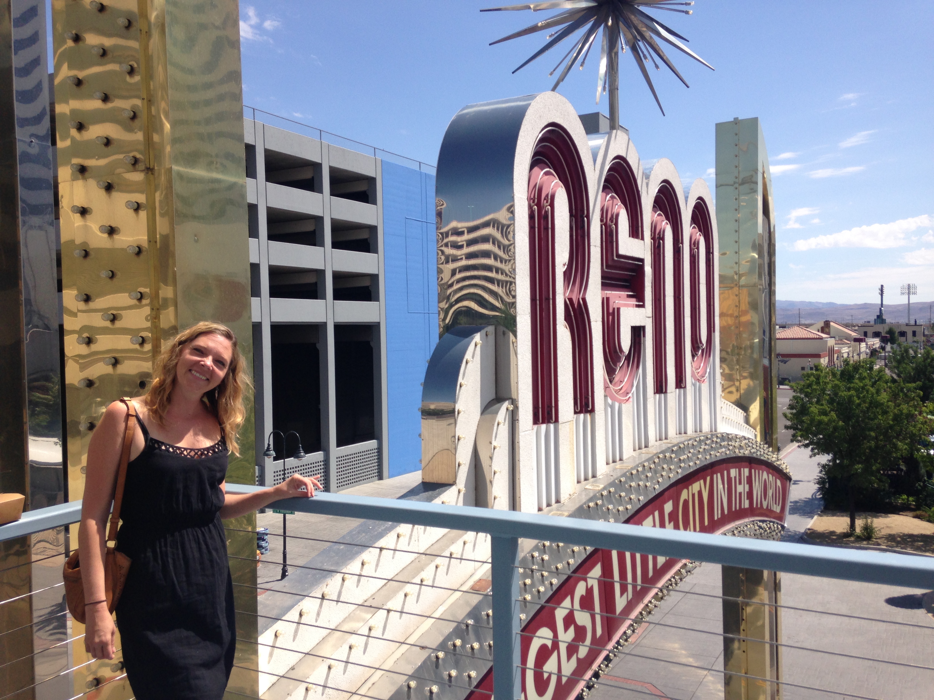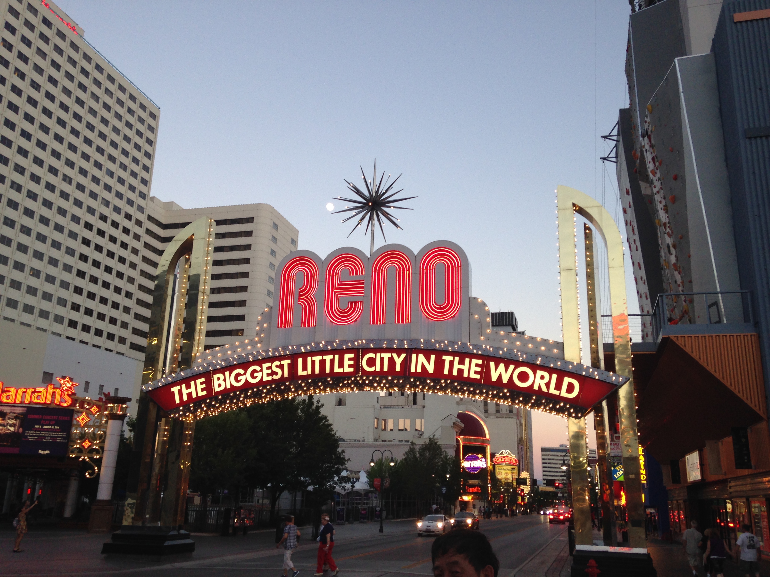 One night in Reno was supposed to be a quick, forgettable stop-over to make the 12+ hour drive a little easier. The only good thing I’d heard about the town was that on their honeymoon (42 years ago), my parents won enough money to purchase the land on which my childhood home would be built. I’d found a new hotel with a great rate, with no smoking or gaming, but right on the strip. We were pleasantly surprised that the brand-new Whitney Peak Hotel focuses on an outdoor lifestyle, with funky modern décor, a 7,000 square foot bouldering gym, and the tallest climbing wall in the world (167 feet, right over the “Reno” sign).