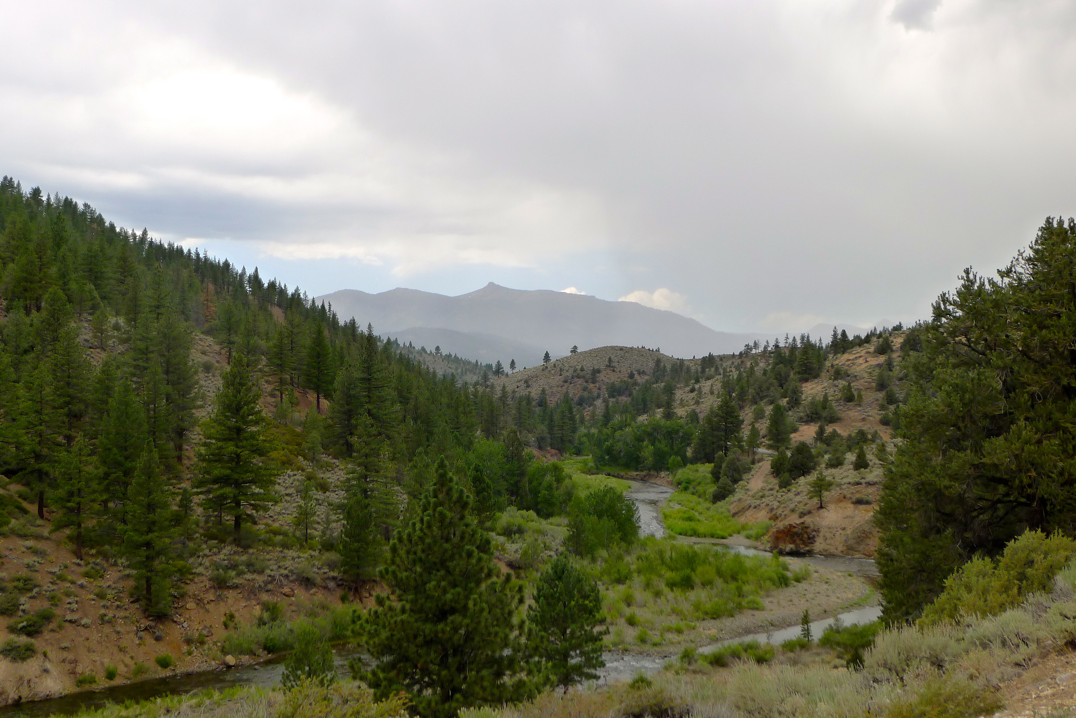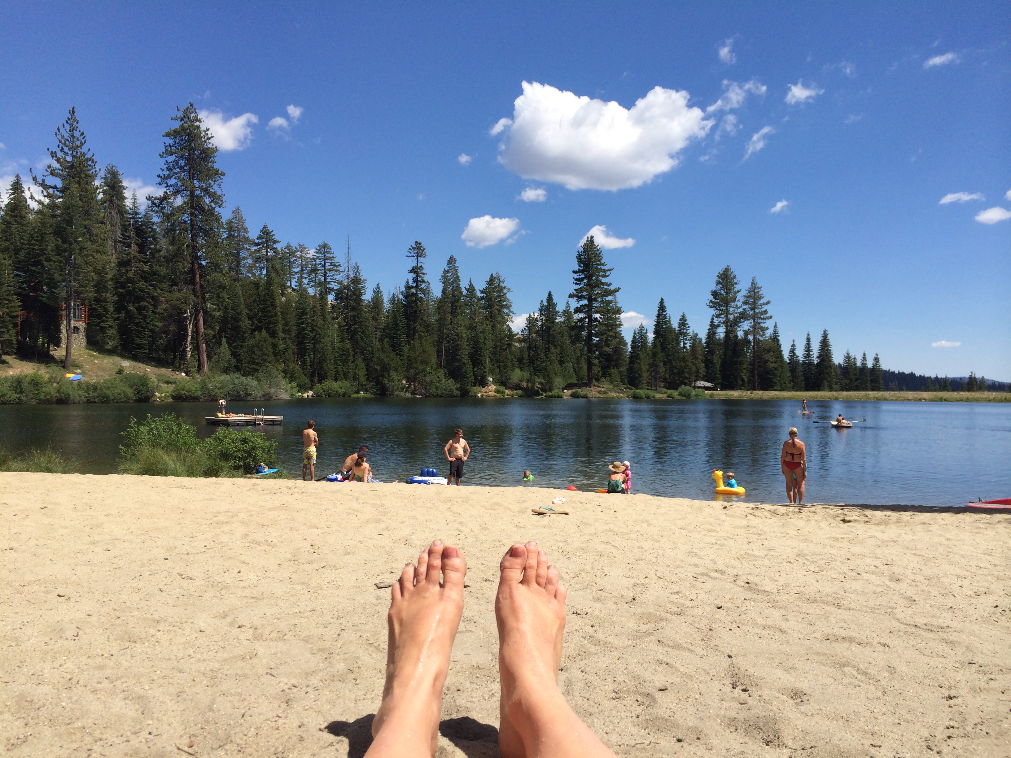 Not long after leaving Reno, the drive changes dramatically. Instead of a flat, straight highway, we gained significant altitude on a super-curvy, one-lane road that winds through giant trees into the Sierras. It was no longer scorching hot; in fact, we drove through a bit of chilly rain. A charming cabin awaited us, a rental we’d share with friends for the long weekend.