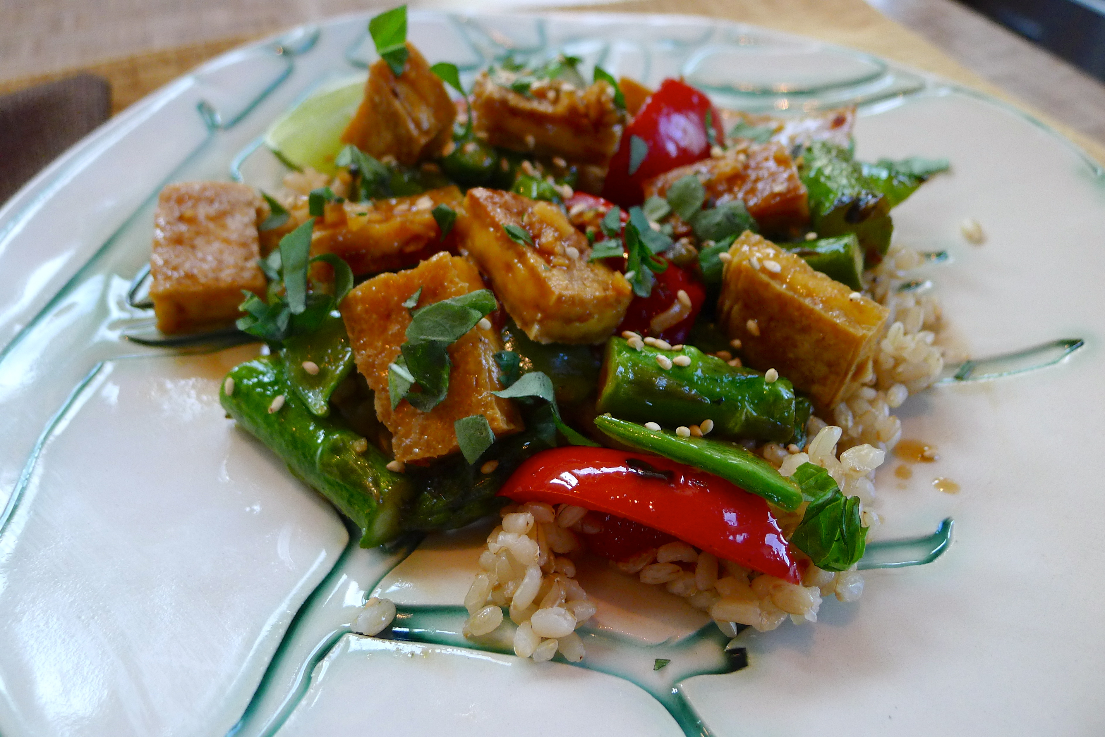 1. One of our FAVS here. Super easy, practically zero clean-up (I “fry” the tofu in the same pan for the sautee), and no one gets hurt for my tummy pleasure. Same can be done on the grill on skewers; just bake and/or sautee tofu and marinade first, then “finish” in the grill sopping with what remains of the sauce. Mmmm. Kid-approved.