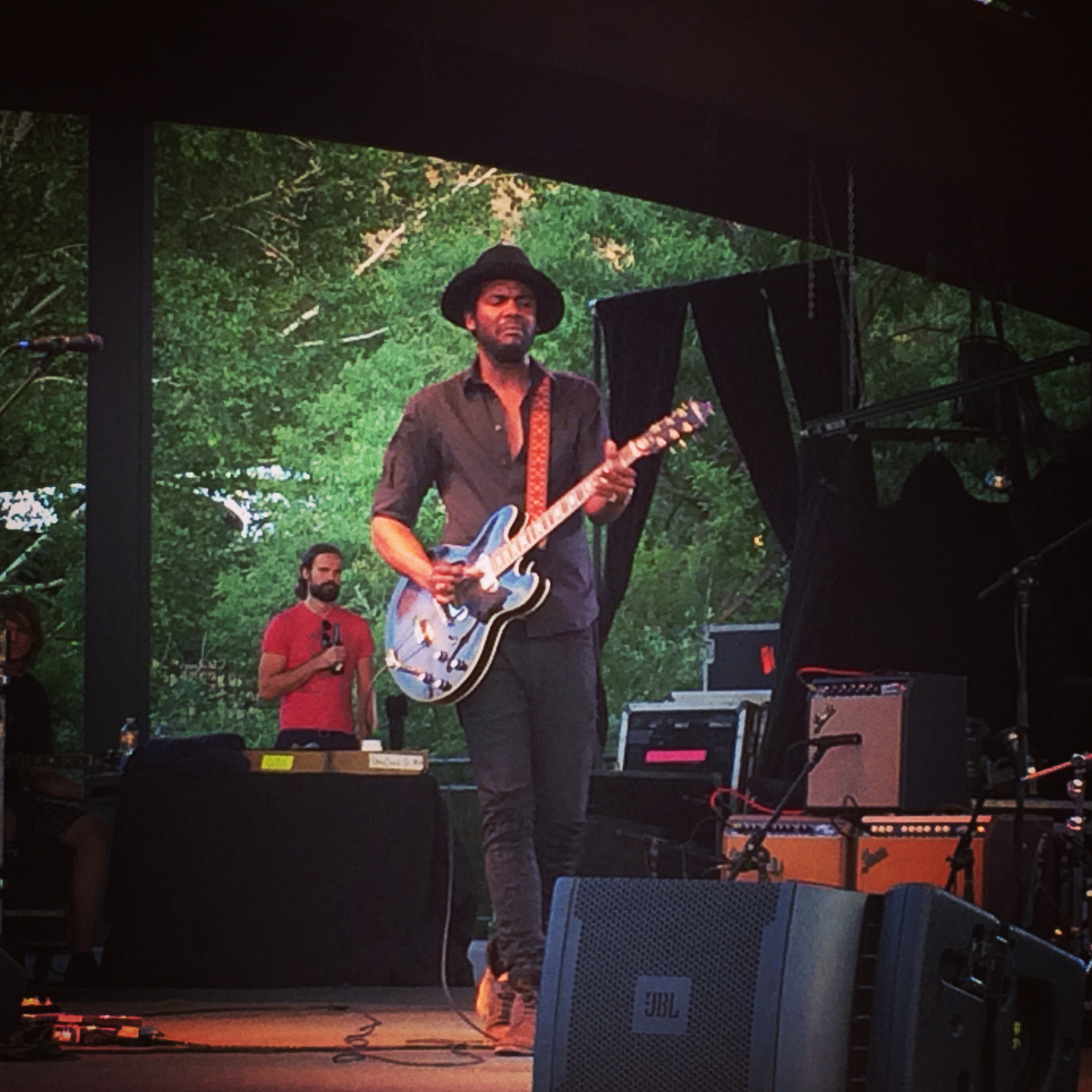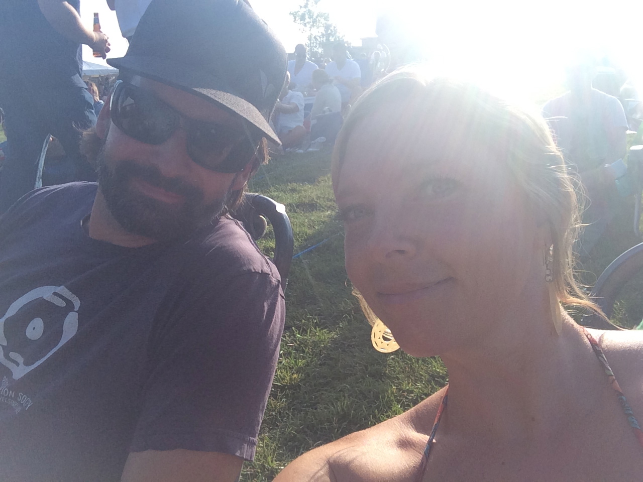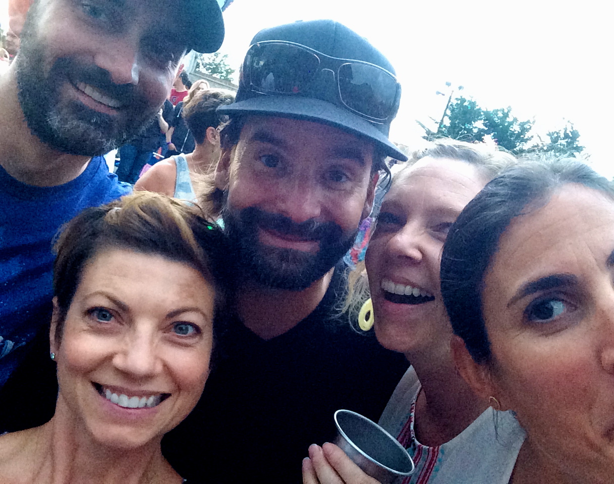 Our first show was the Tedeschi Trucks Band, a husband and wife guitar team who we’d seen play before. Their music is a combination of rock and deep blues, with Derek’s incredible guitar riffs and Susan’s husky voice battling for the spotlight. It’s hard to know which musician to focus on because they are both so good. John and I braved the 100-degree heat in line for an hour with cocktails and a tiny umbrella for shade. We set up camp where we usually do, stage left near the aisle with a great view of the stage. I put together a picnic of leftover veggie pasta, tomato and basil salad, and plenty of meats and cheeses and crackers. Oh, and wine. What a show!
