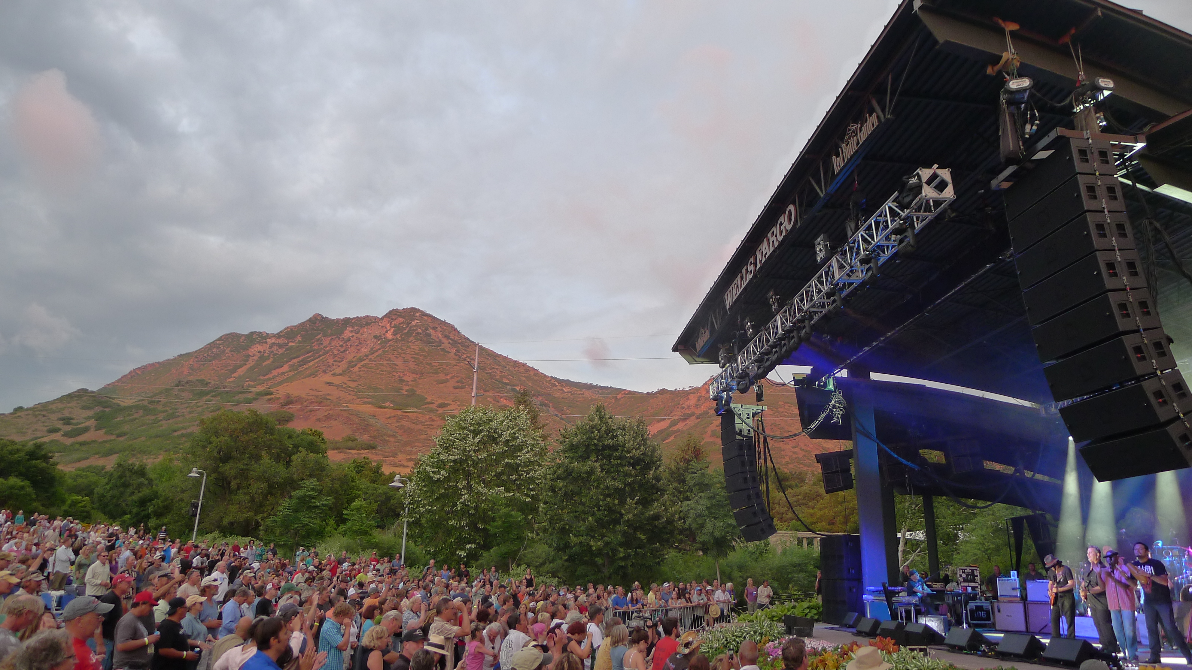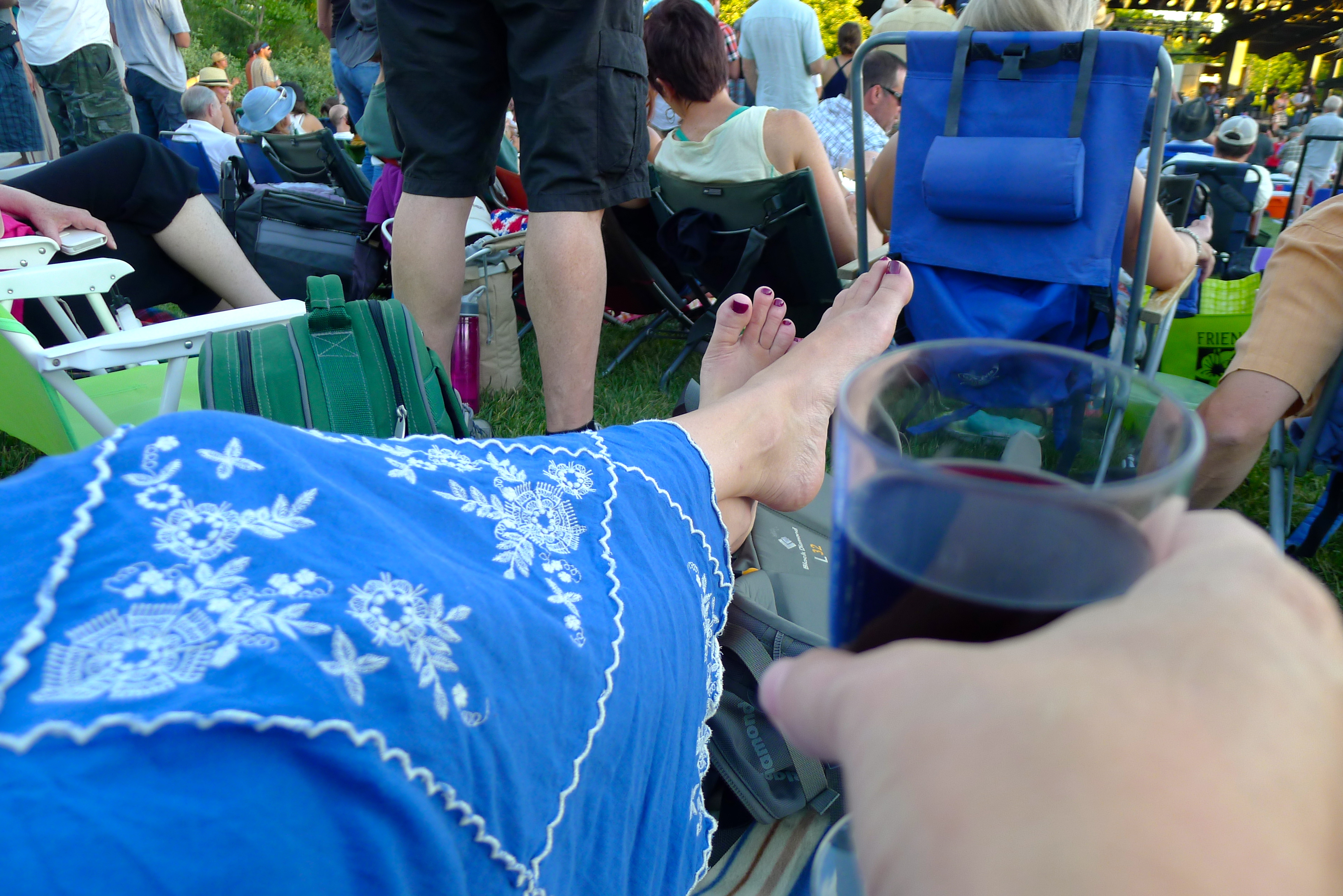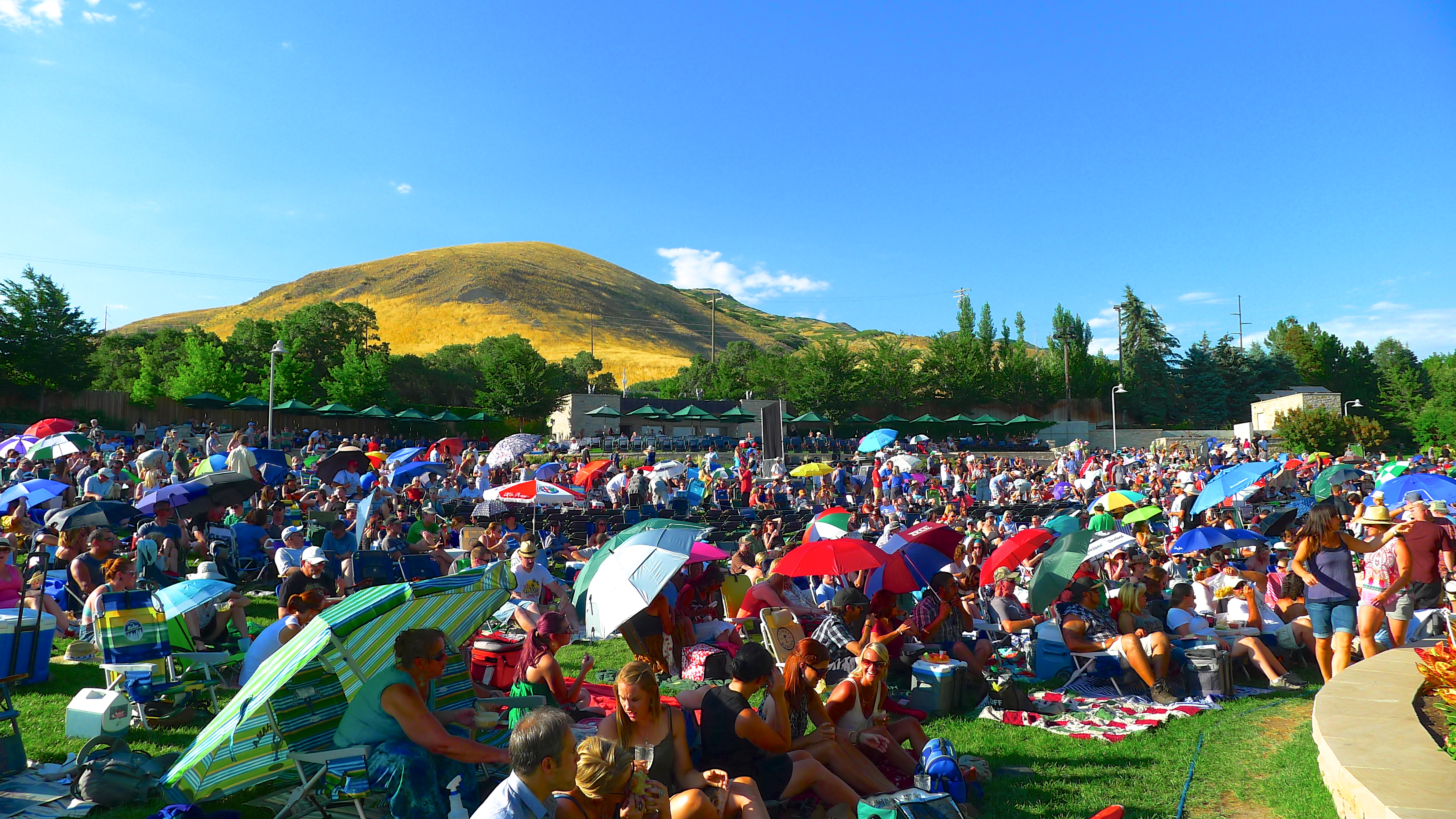 Red Butte Garden’s amphitheater is gorgeous. It’s tucked into the foothills near the University of Utah, part of the botanical gardens I visited recently. A gentle slope of grass leads back from a beautiful open stage and truly, there’s not a bad seat in the house. That said, people will line up hours before the gate opens to be able to get their preferred spot on the grass. It’s like tailgating for a big game, only instead of kegs of beer, there are huge thermoses filled with cocktails and multiple bottles of wine. Instead of grills and hot dogs and brats, there are picnic baskets and Tupperware filled with sundried tomato pesto and brie cheese and artisan crackers. The picnic is part of the fun, and waiting in line is part of the process.