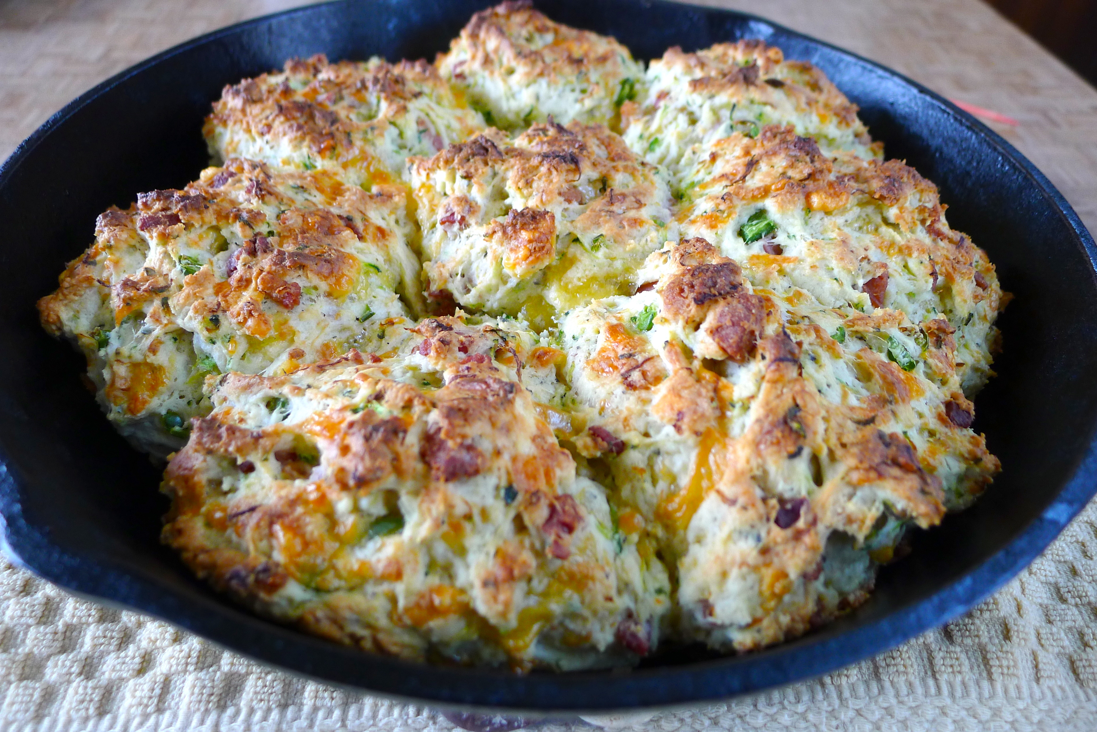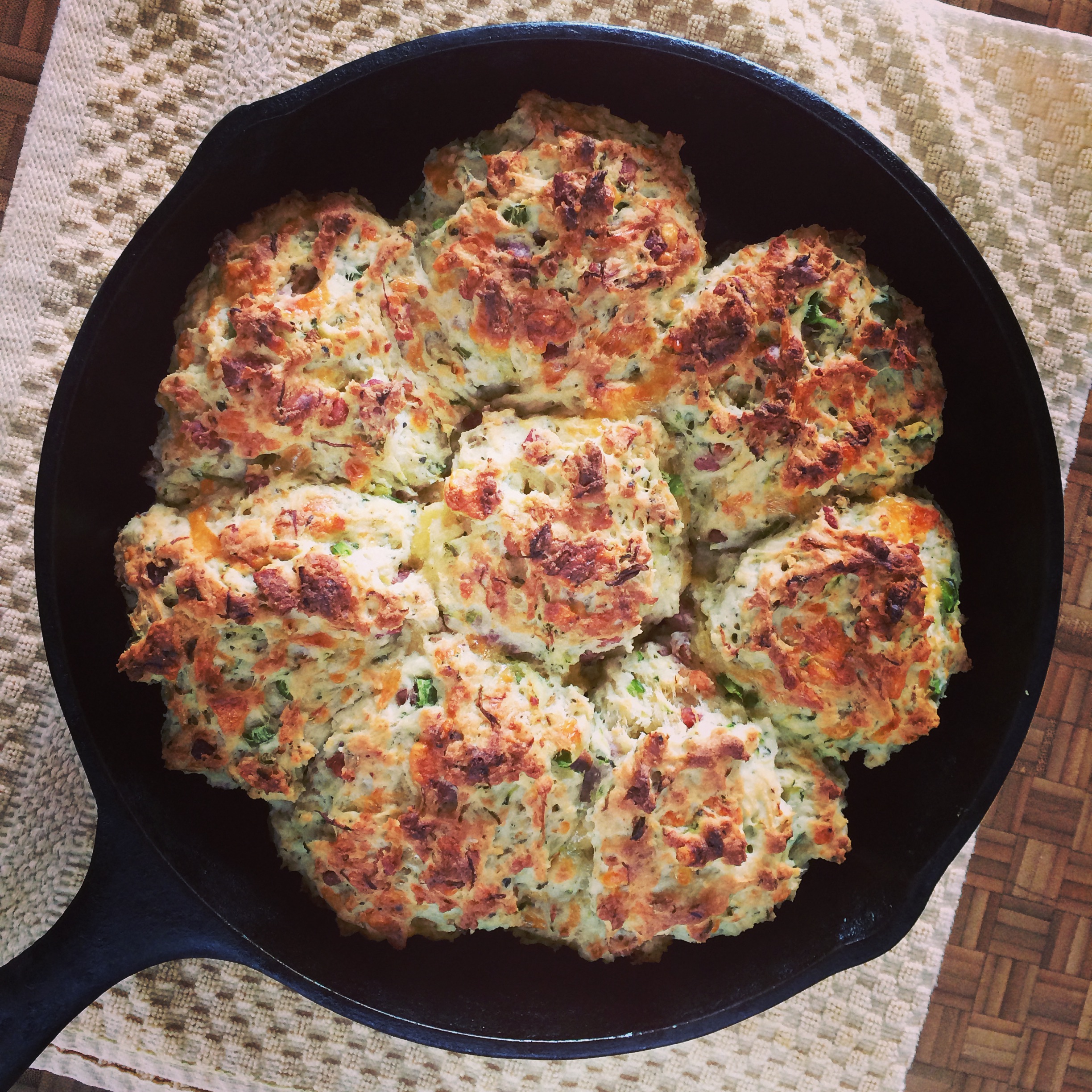 Zucchini-Cheddar-Jalapeno Skillet Biscuits with Pancetta