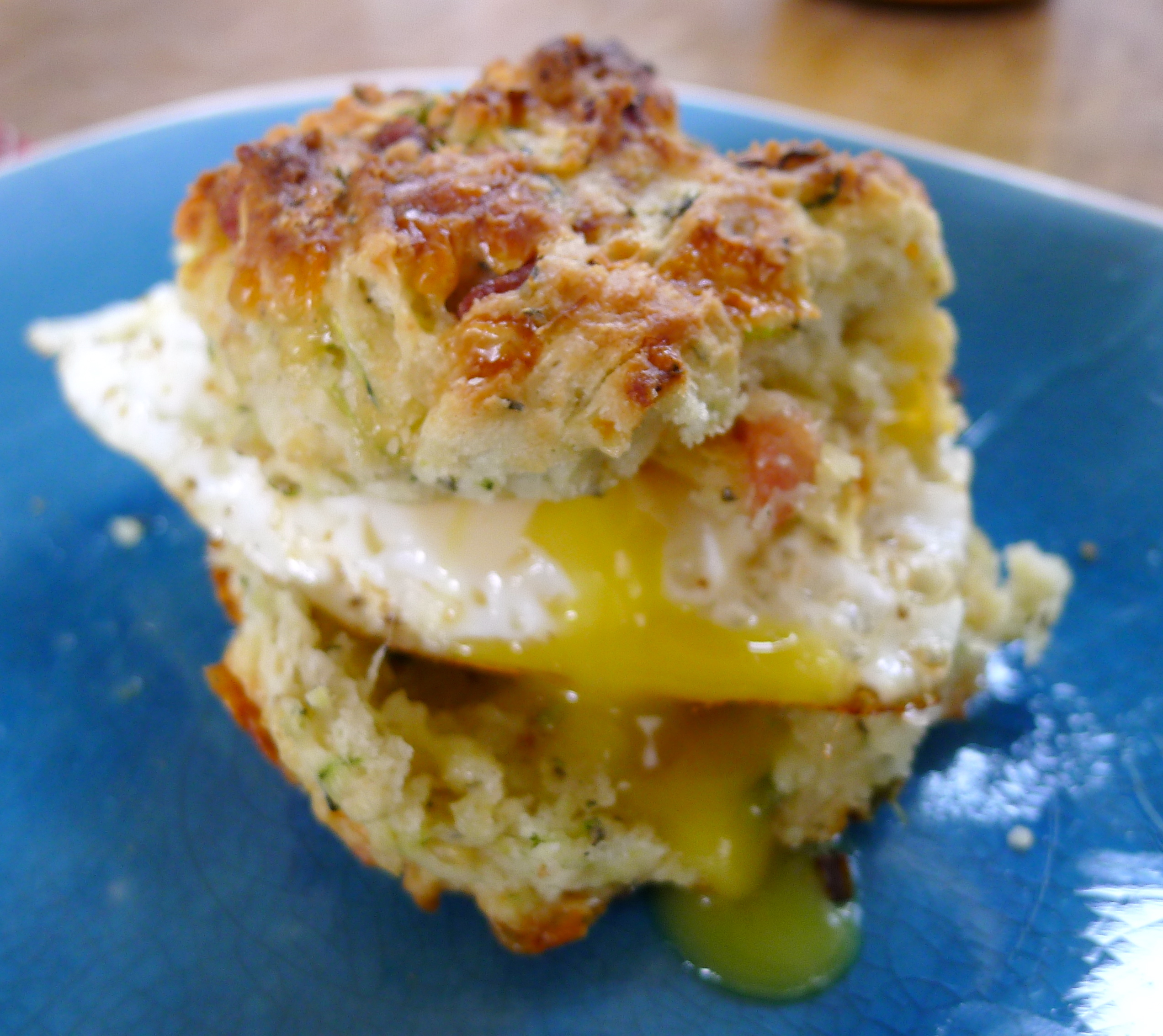 With the glorious summer thunderstorms we’ve been having in Park City, the temperature has dropped enough to accept having the oven on in the morning. I spied a recipe for zucchini biscuits and thought, why stop with zucchini? I grabbed some breakfast-y meat (pancetta), a jalapeno, cheddar cheese, some spices…and the result was pretty scrumptious.