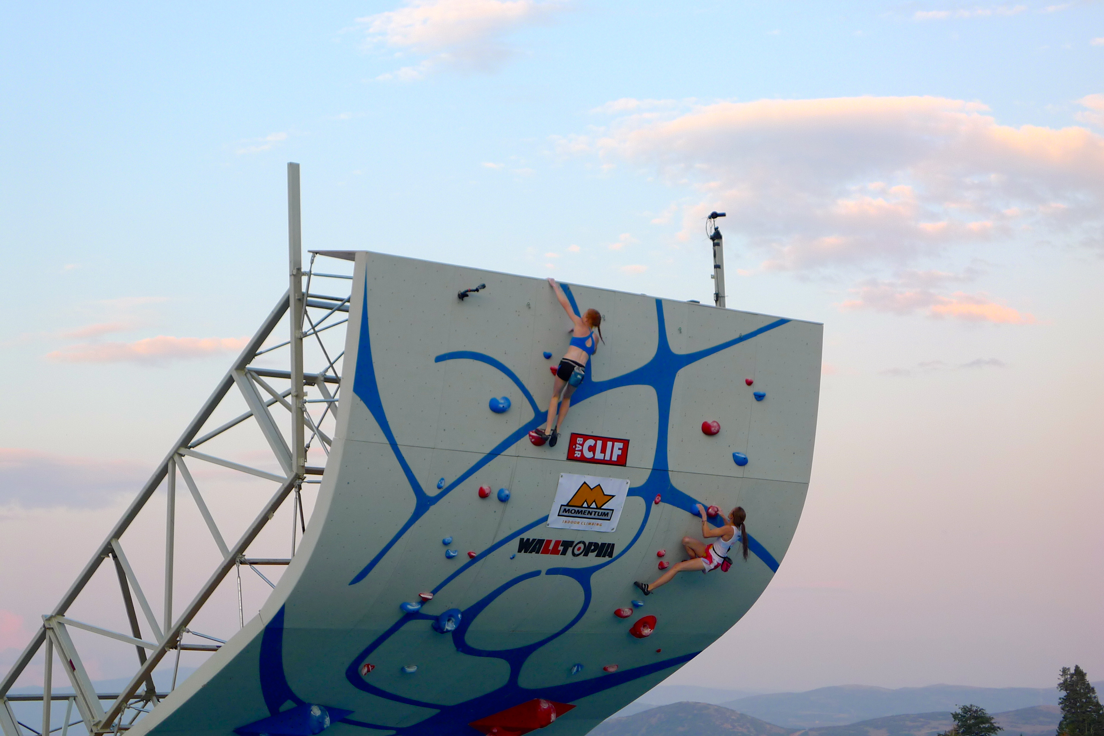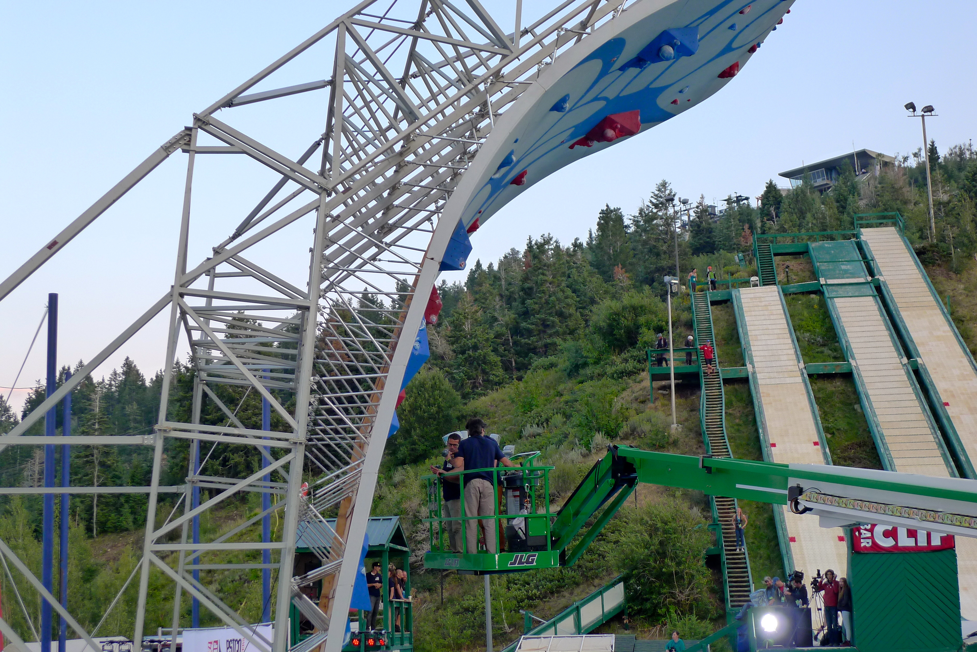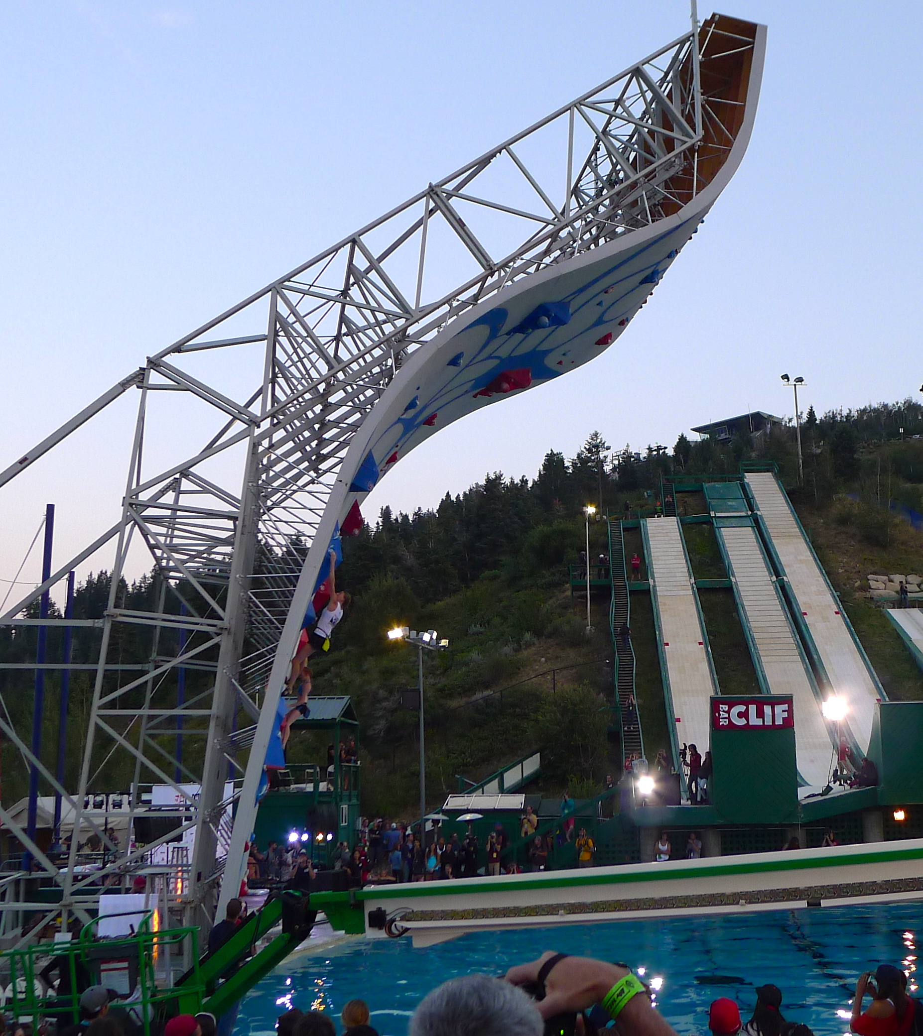 The summer Outdoor Retailer Show wrapped up this weekend in Salt Lake City. These trade shows bring something like 30,000 outdoor industry people to town to see new products coming to market (and show off their own goodies) at over 1,500 display booths. Our dear friends attend each show (check out their amazing organic skin products here), which means we get to spend time with them twice a year here in Utah. On Friday, we were invited to the ClifBar Psico Bloc, a climbing event at the Olympic Park here in Park City. I’d missed the event last year, but I’d seen photos. Another friend works for ClifBar and gave us the VIP treatment for the show. Bonus!