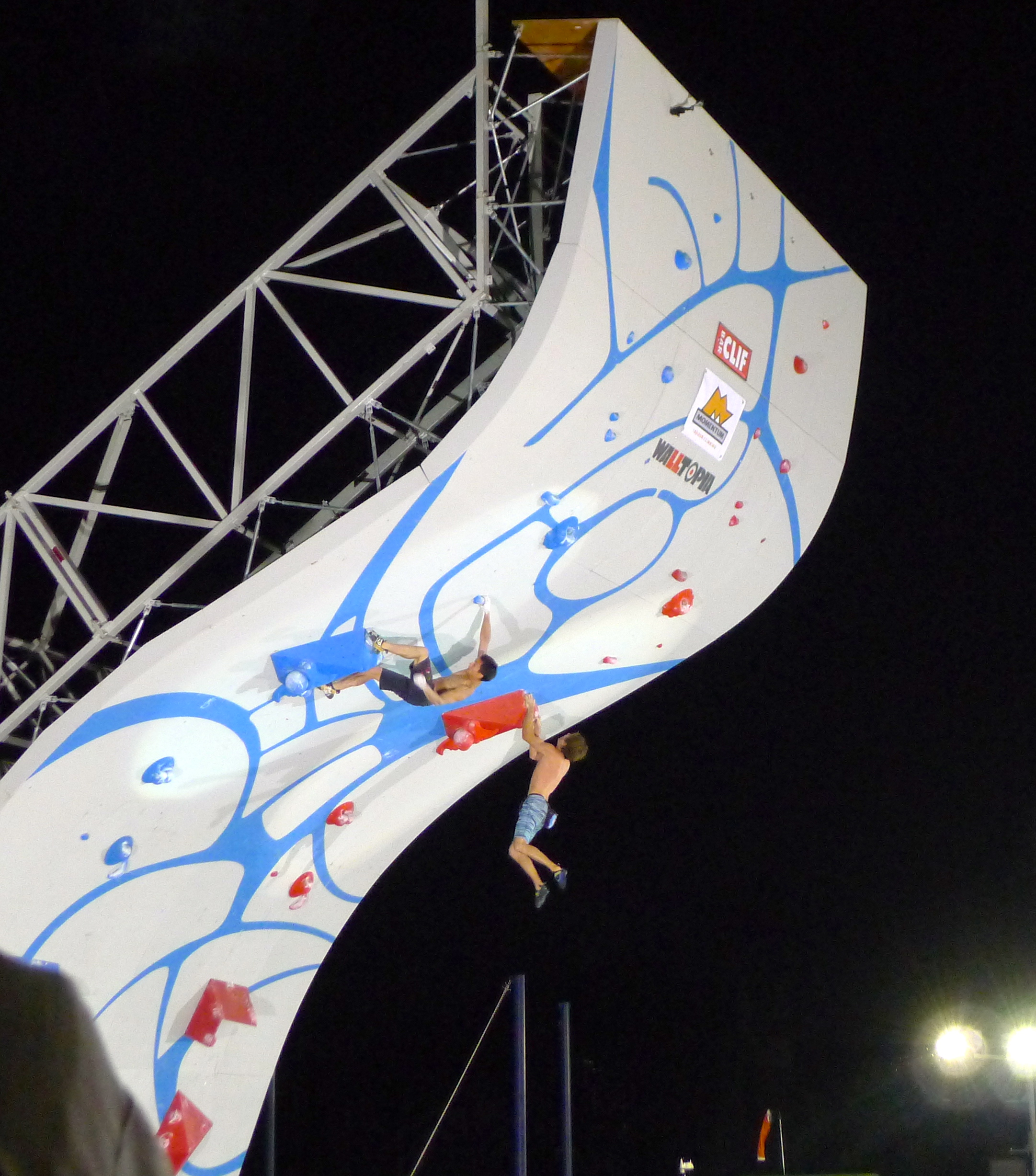 John and I made our way around the event for to see the wall from different perspectives. For the semi-finals and finals, we ended up standing near Lynn Hill, one of the best female climbers in the world- a climbing legend. We watched the two fastest climbers race side-by-side up the wall, neck and neck until the top. The crowd loved it!