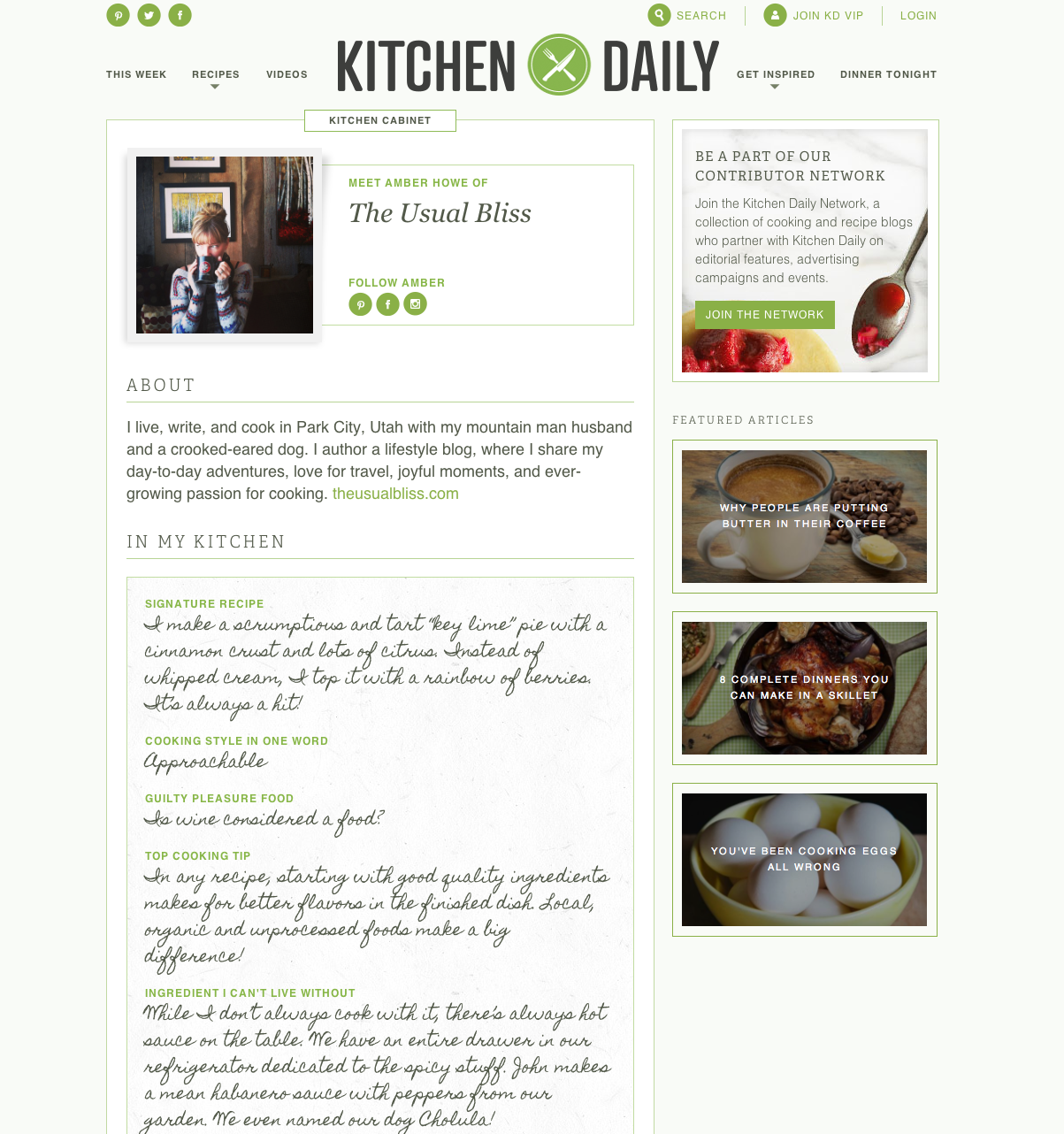 I was invited to join Kitchen Daily’s Contributor Network! Check out the website– yum.