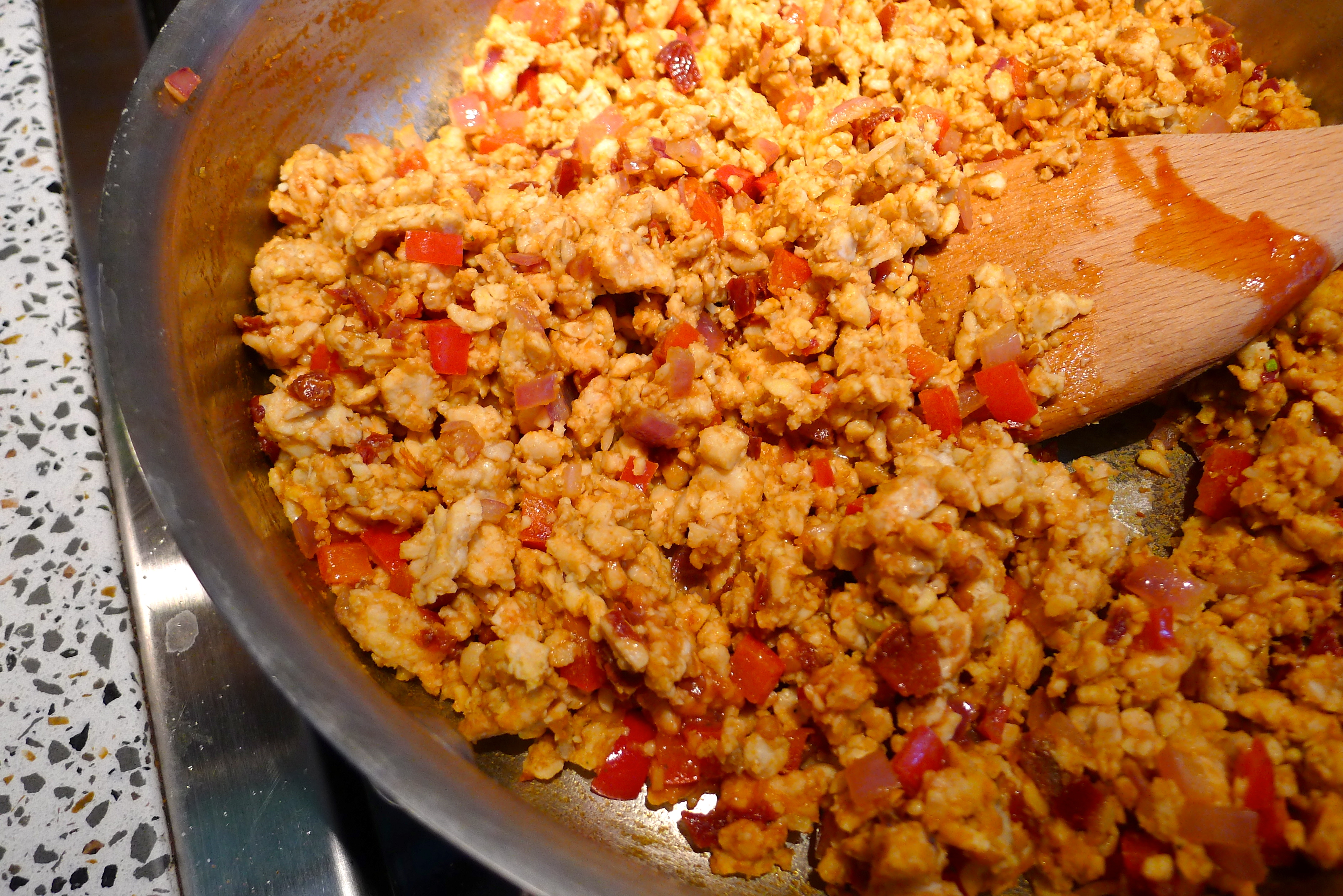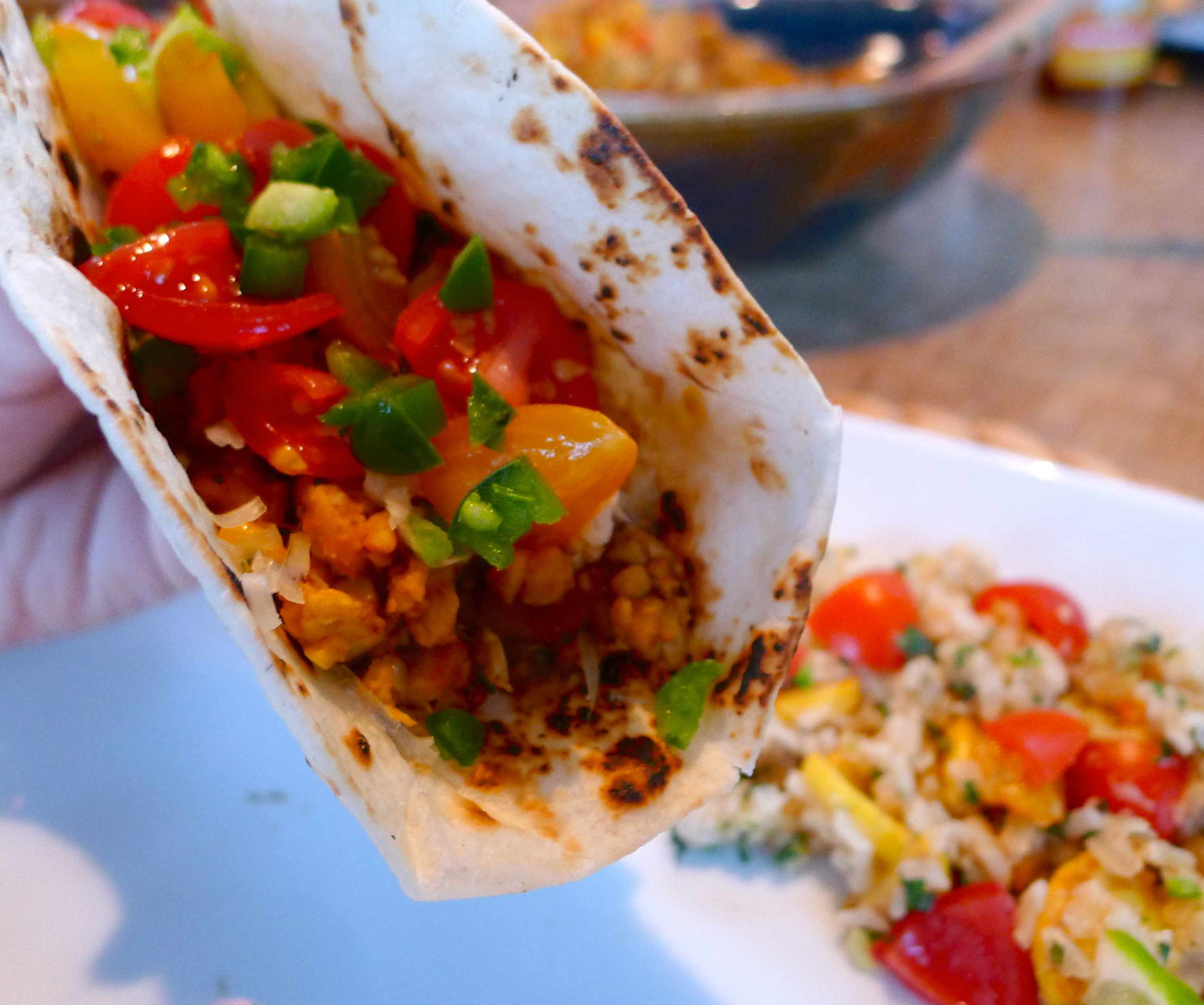 Confession: I made too much taco filling for the two of us. One brick would have been sufficient. But the tempeh is delicious the next day- we made tempeh nachos for dinner the next night.
