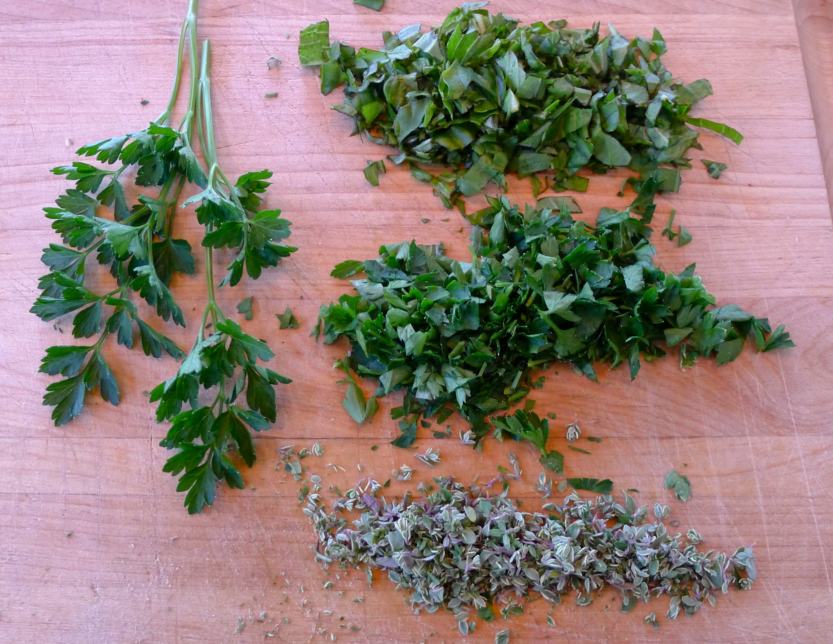 Pizza on the grill takes less than 10 minutes. The edges of the crust were perfectly browned. Before serving, I sprinkled more herbs over the top of the pizza. YUM.