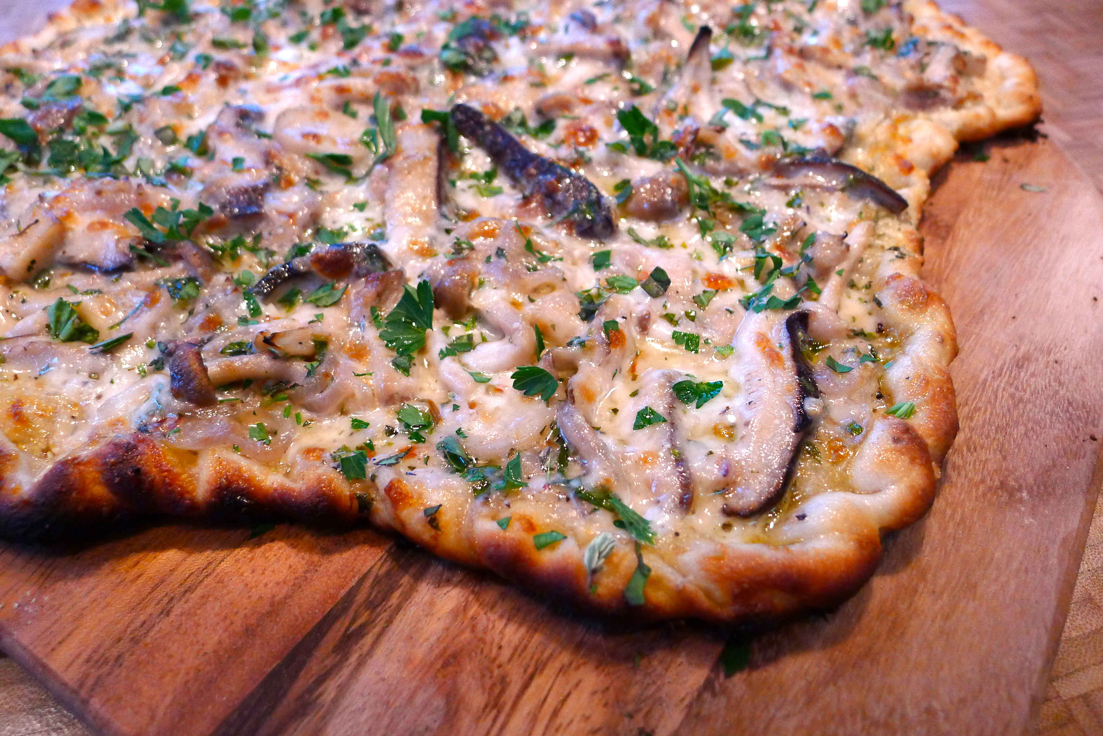 In the end, John was right. The wild mushroom pasta made a fantastic wild mushroom pizza. The mushrooms have so much flavor and texture and I love that you can see all of the different types. The mascarpone cheese lends a bit of creaminess and tang and the herbs freshen everything. This recipe is perfect for this time of year as we embrace fall flavors. It proves yet again that just about anything can top a pizza and be delicious.