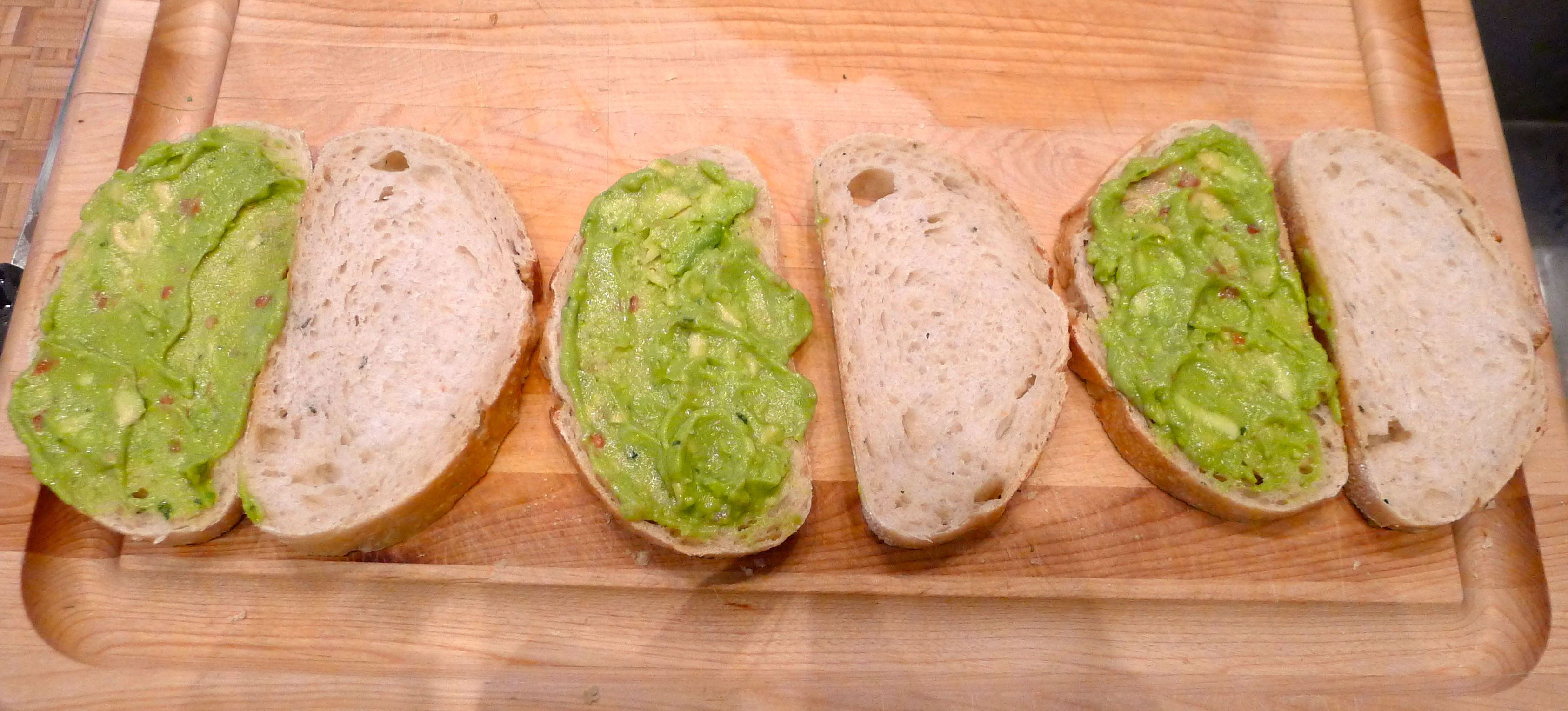Lay out slices of bread side by side. Spread one half with guacamole. Sprinkle cheese on both halves. Scoop some fajita mixture on one half and put the halves together. Grill on a panini press until the bread is browned and the cheese is melted. Eat with Mexican rice, but no need for tortillas. Yum!