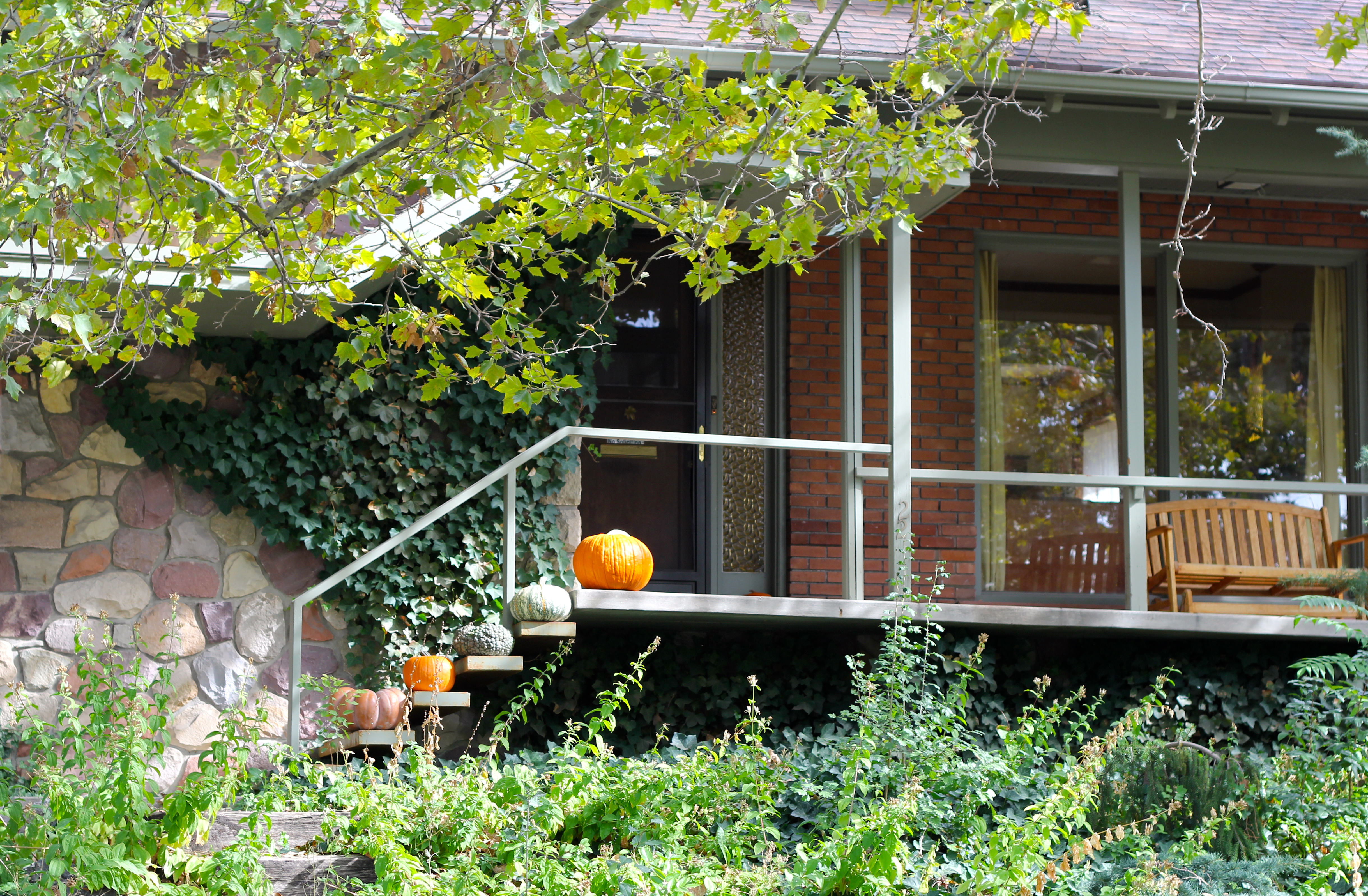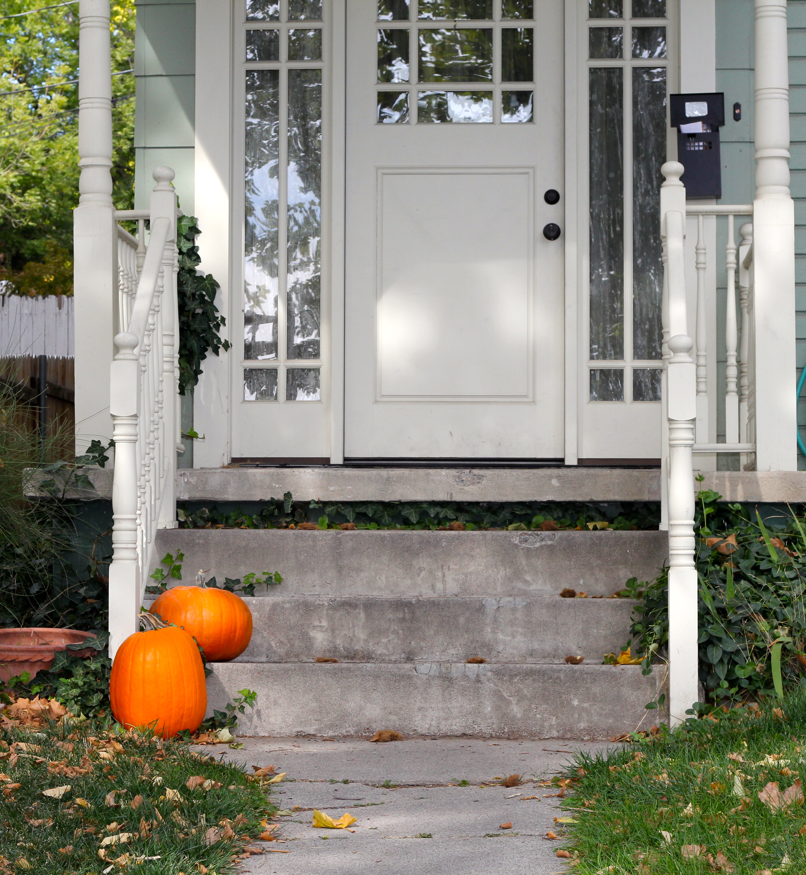These photos are simply gorgeous, Amber. So many vibrant colors. I especially love the photo with the little pumpkins lined up on the stairs:)