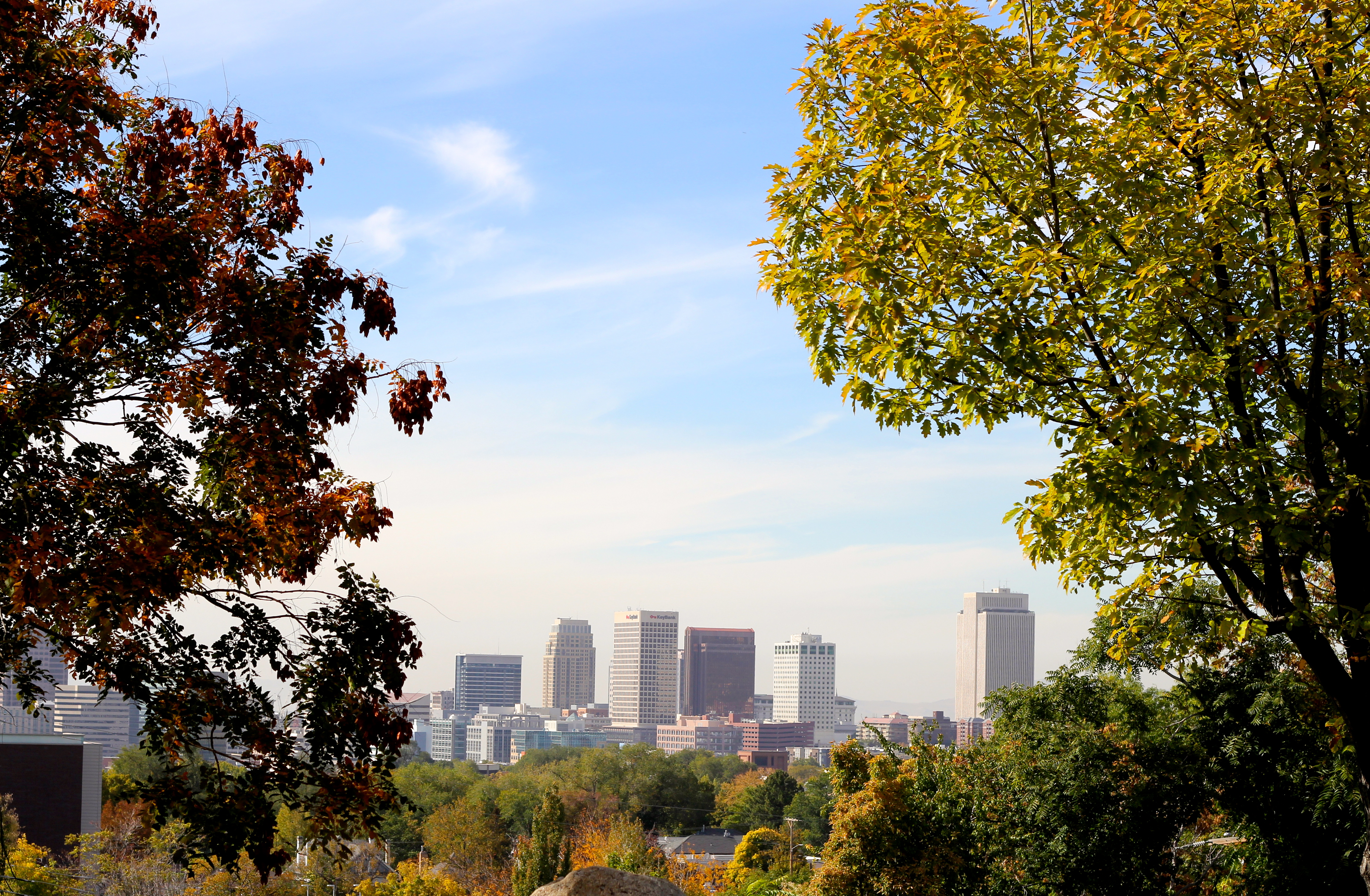 Q Street-T Street/1st Avenue-4th Avenue, Mount Calvary Catholic Cemetery. View of the city skyline and the Avenues from Fault Line Park. Canon EOS 60D, 50 mm lens.
