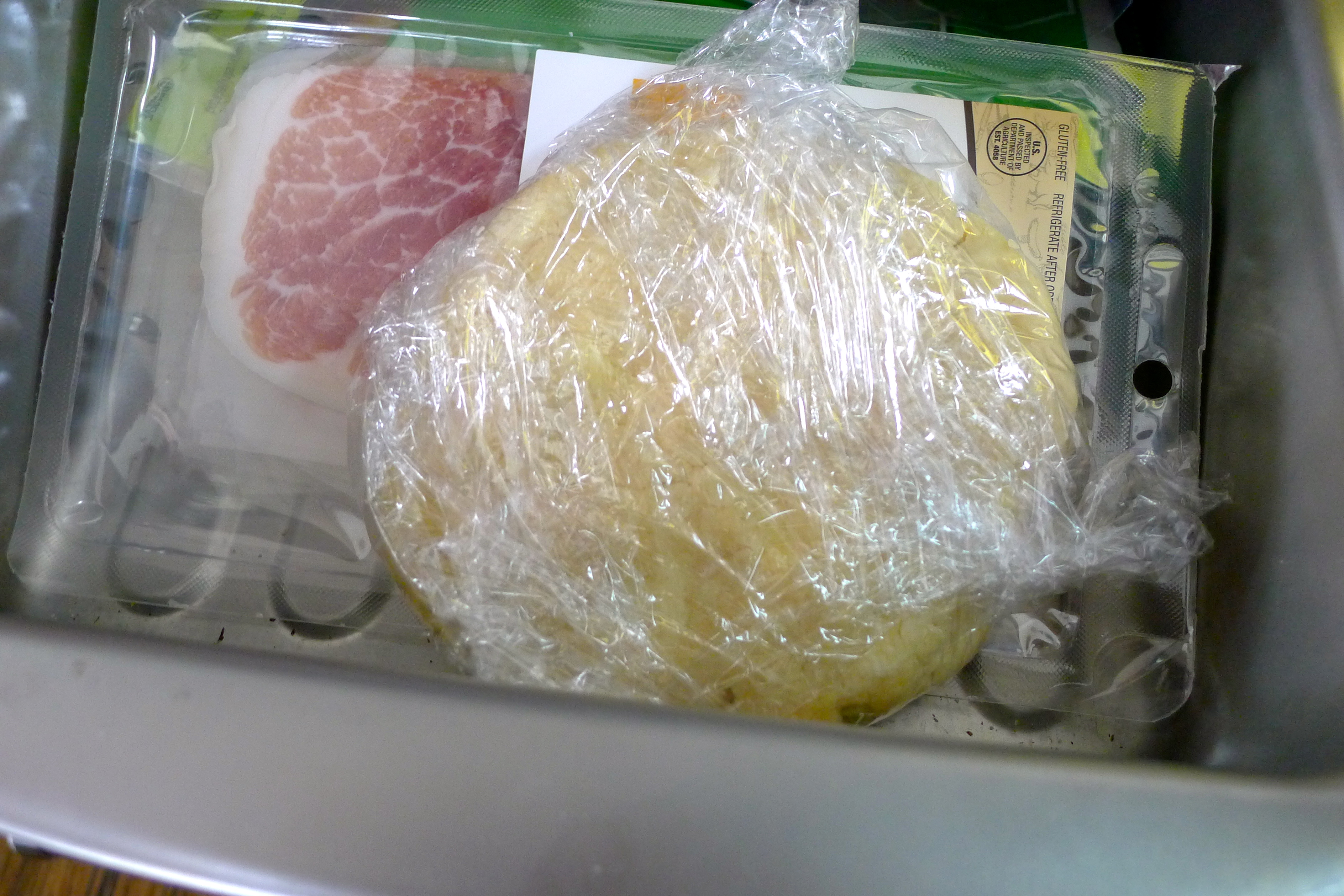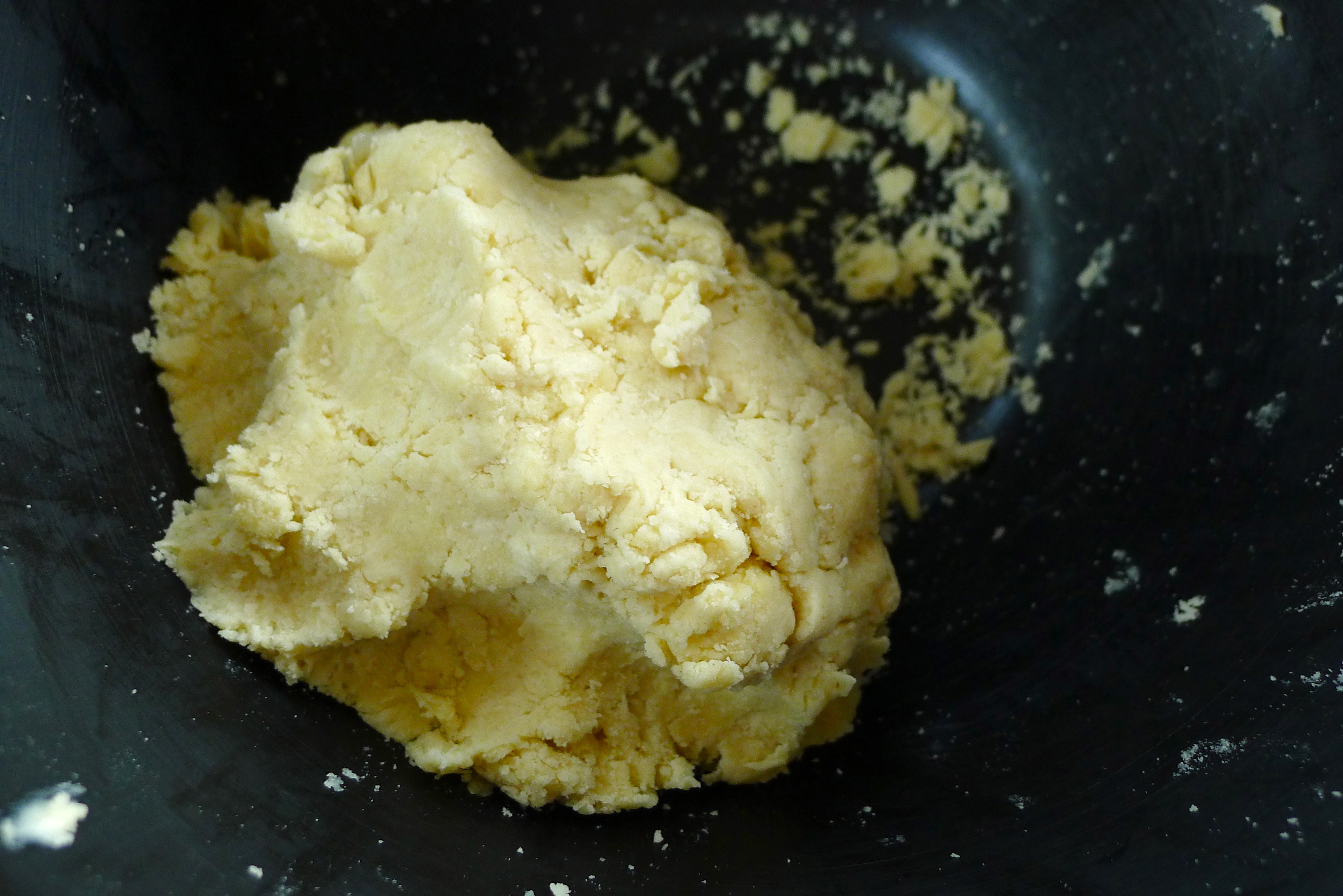 Next comes the part where I think experience is key. You add cold water, tablespoon by tablespoon, sifting it into the flour mixture using your fingers. You magically know when you’ve used enough water and the dough is the right consistency. The recipe we followed said, “It will go from being a shaggy mess to coming together.” I think humidity and altitude probably have something to do with the variance, but I think the most important thing is to not add TOO MUCH water. I did my best, formed the dough into a disc and wrapped it up, and popped it into our too-full fridge for a half an hour.