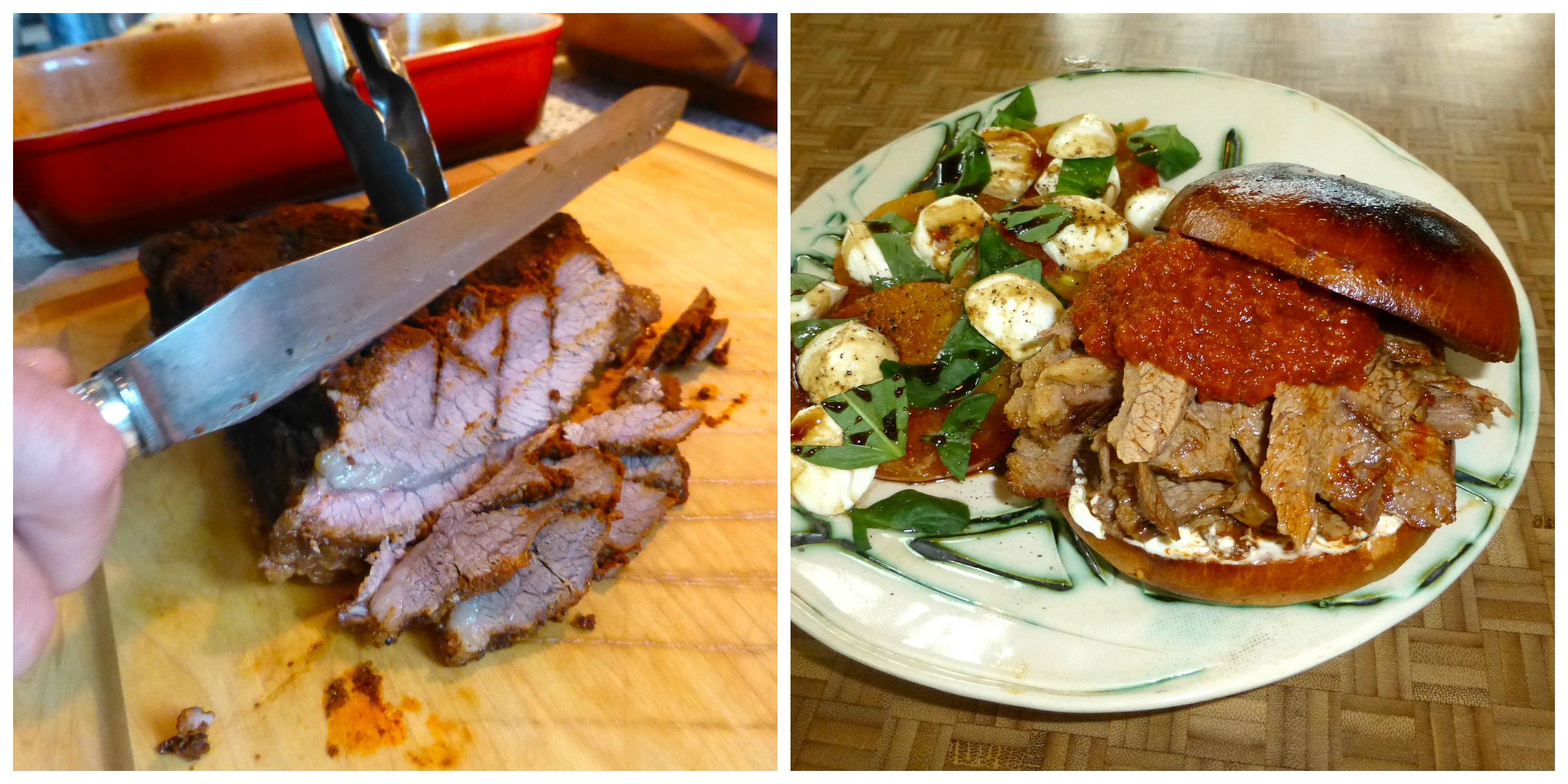 When my guest rooms are full, I like any recipe that you stick in the oven and forget about for a while. This beef brisket is delicious on its own, but my favorite is to slice it up for sandwiches. Homemade spicy BBQ sauce, too!