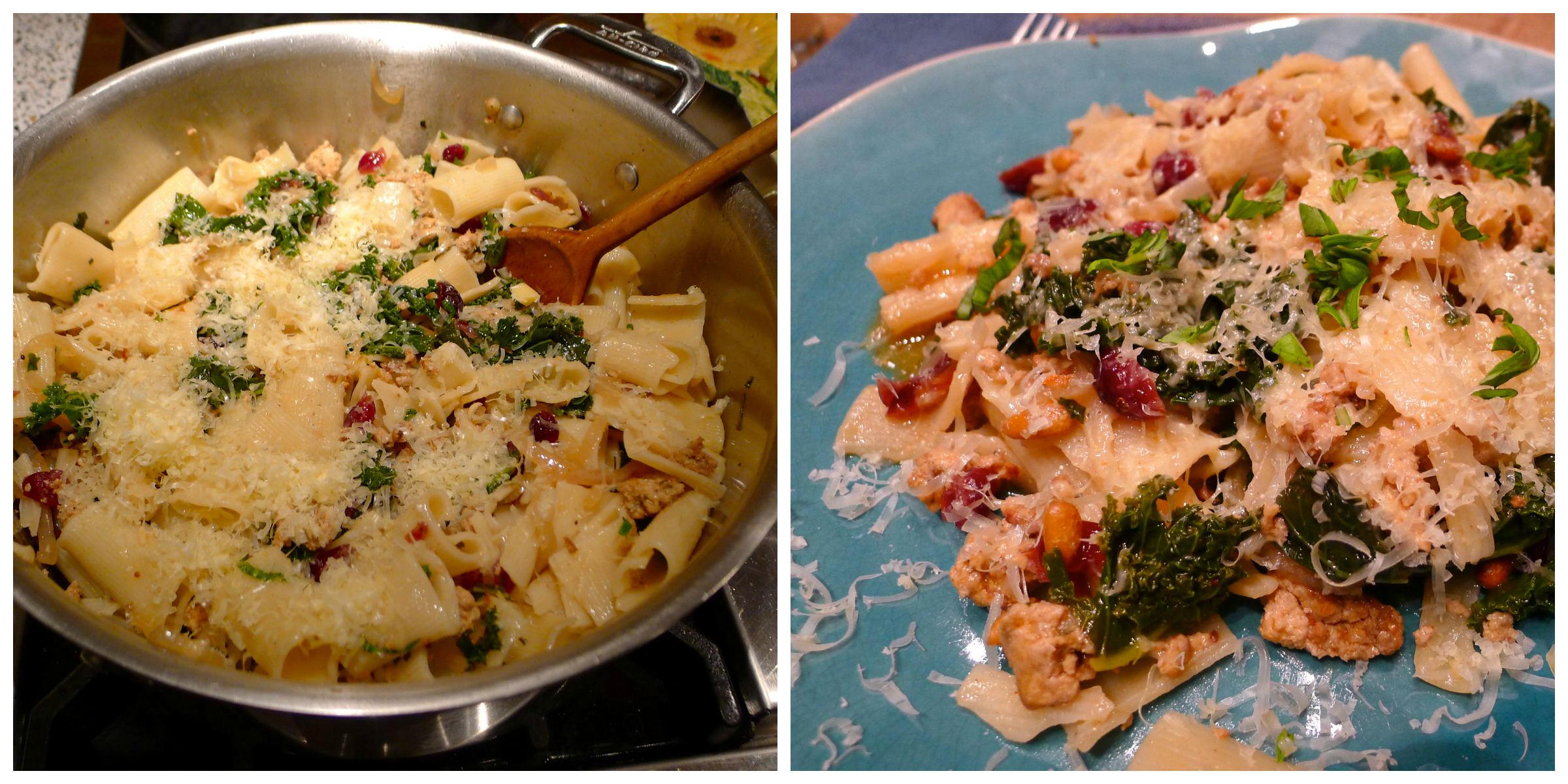Chorizo Pasta with Cranberries, Kale, and Gouda