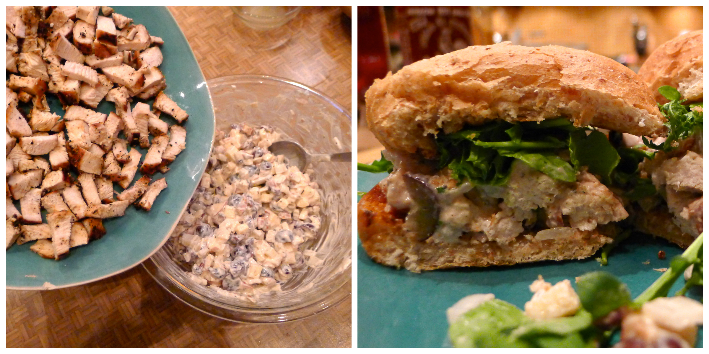 Lunchtime seems to be different for each person. It’s handy to make a batch of this chicken salad ahead of time to keep in the fridge so guests can help themselves. It’s a healthy version (using Greek yogurt) and has crunchy apples and chewy cranberries in it.