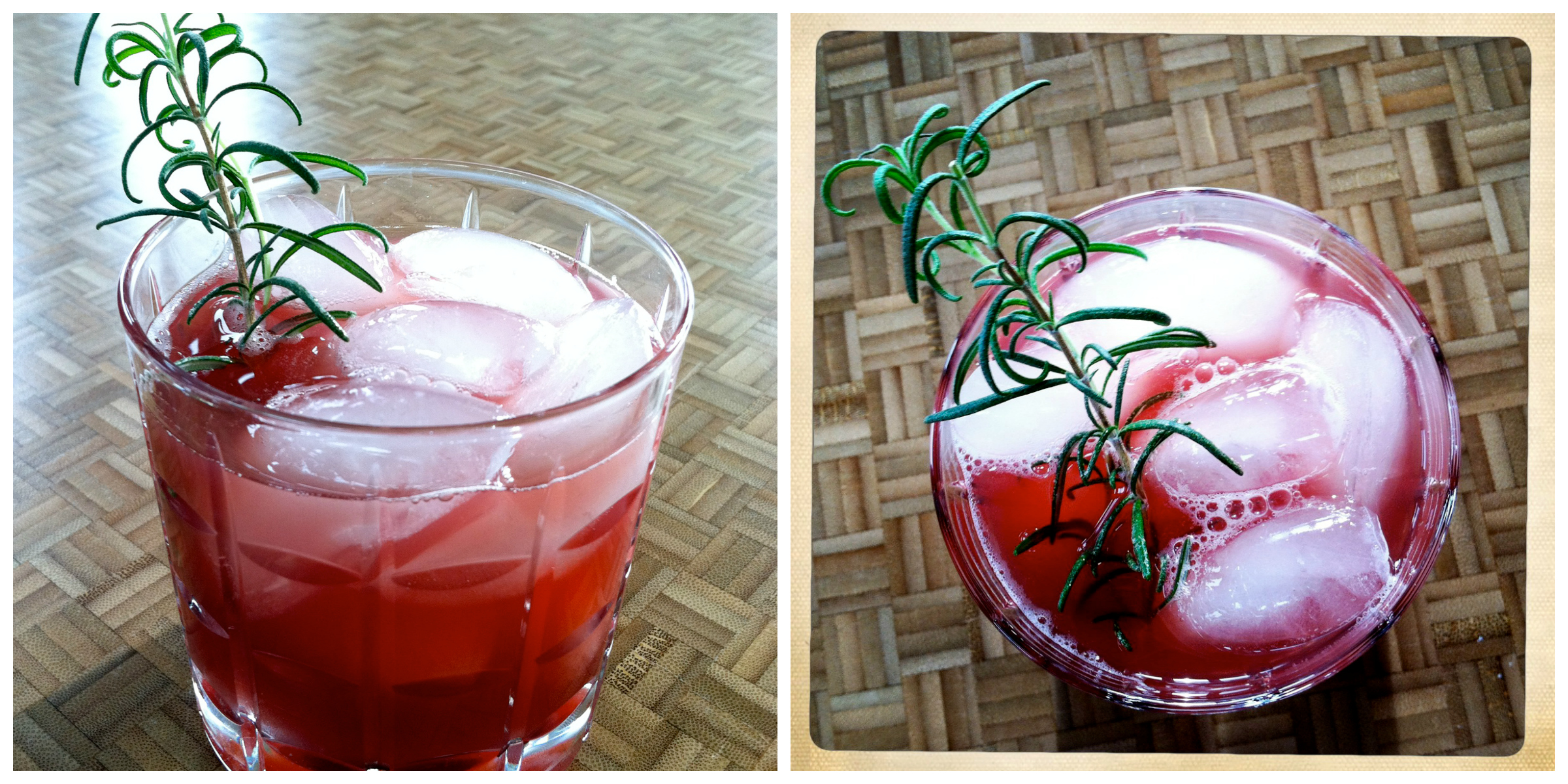 This tart cocktail tastes like Christmas, with cranberries and fresh rosemary. It would be scrumptious for your party punch bowl!