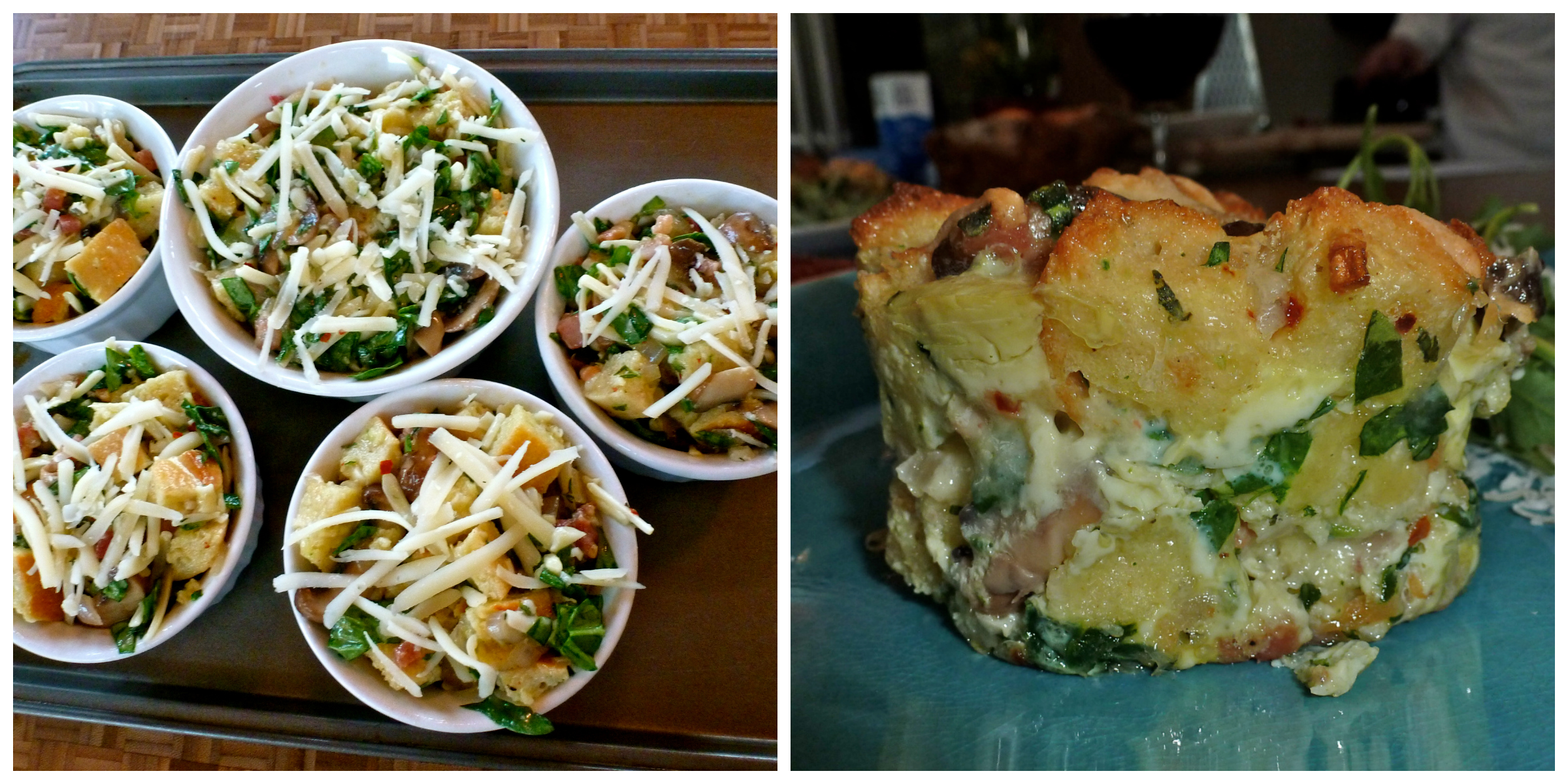 These little bakes are like mini quiches with all sorts of goodies inside like pancetta, spinach, gruyere cheese, chunks of bread, and lots of herbs. You could make them in a muffin tin for single servings.