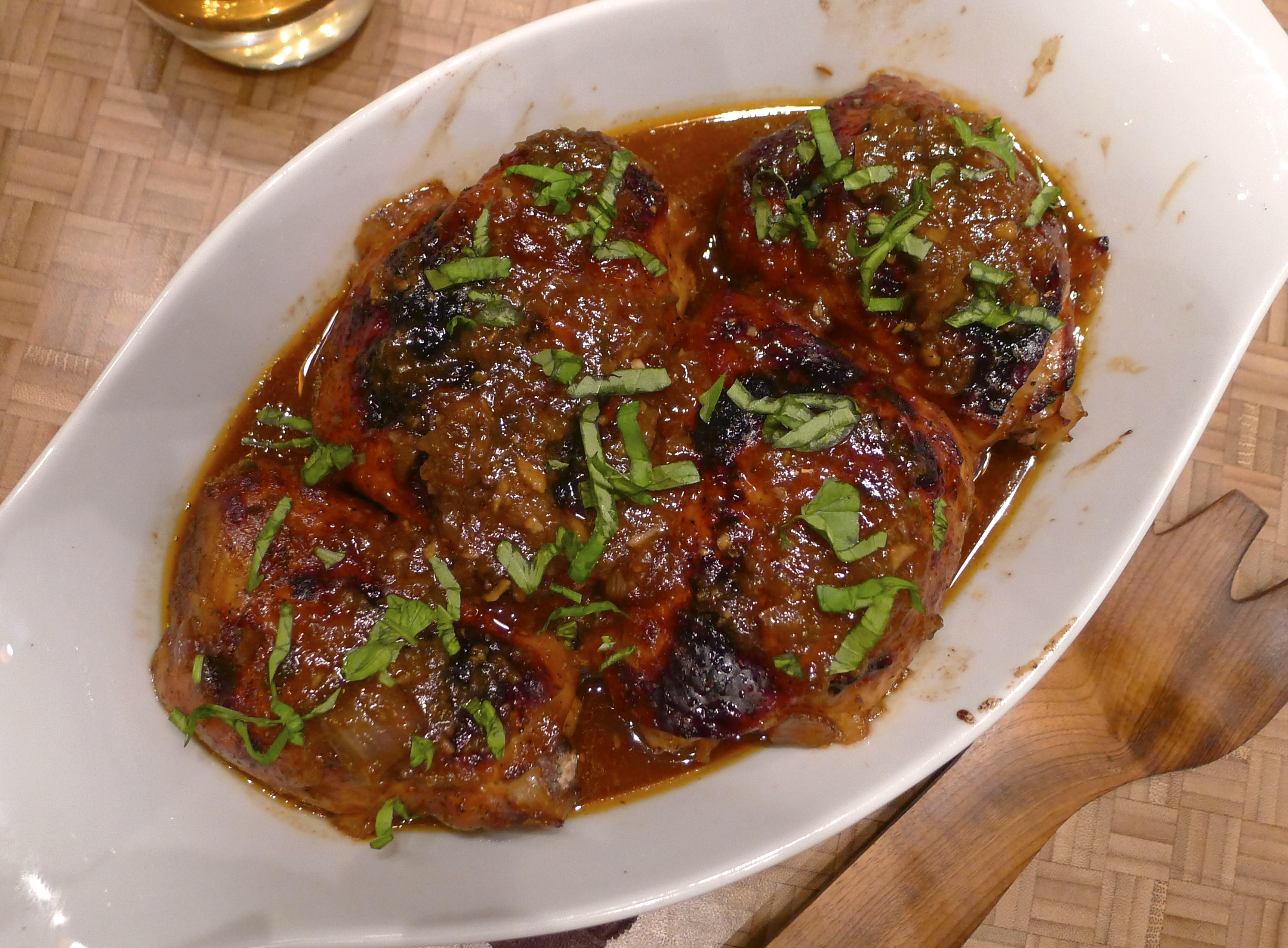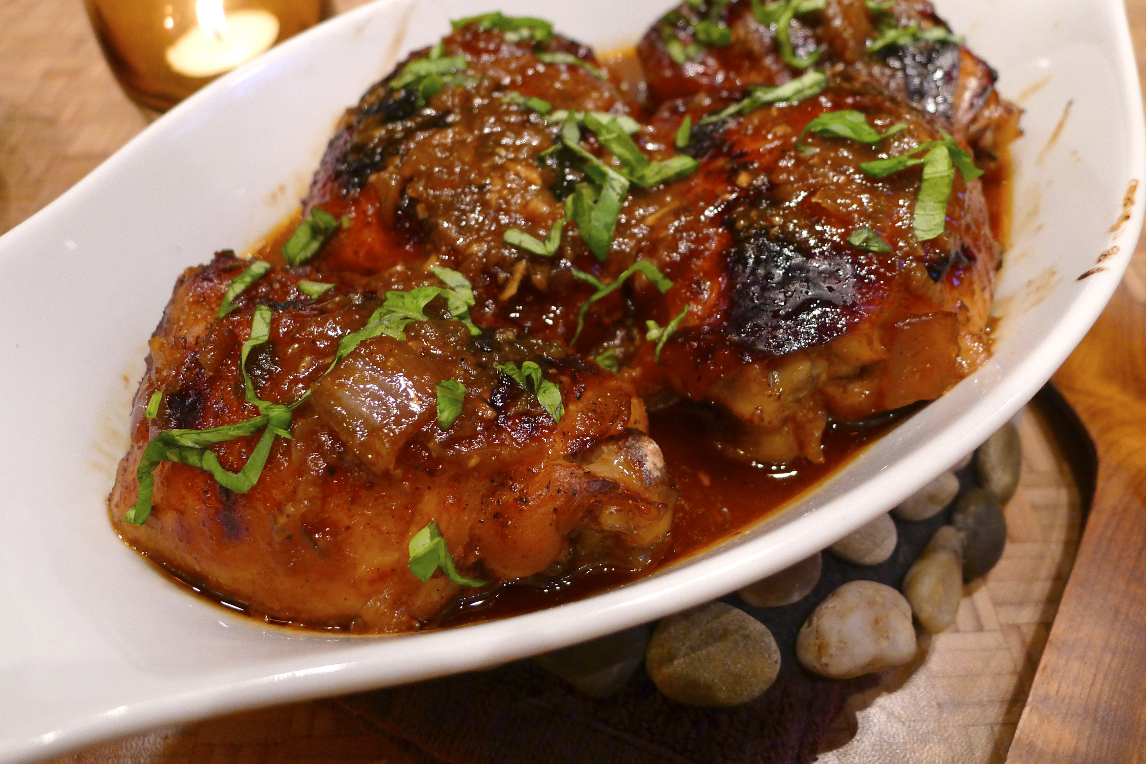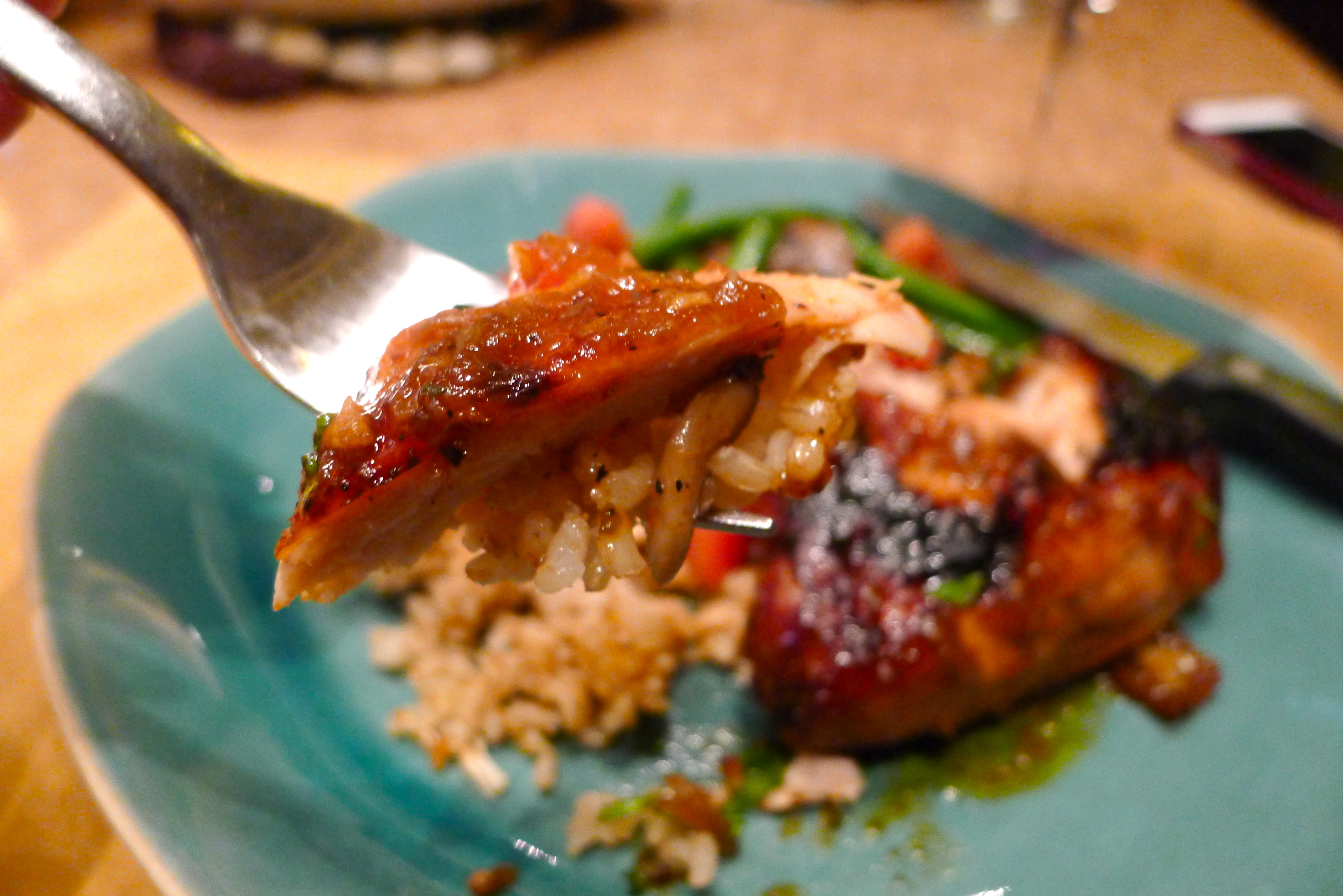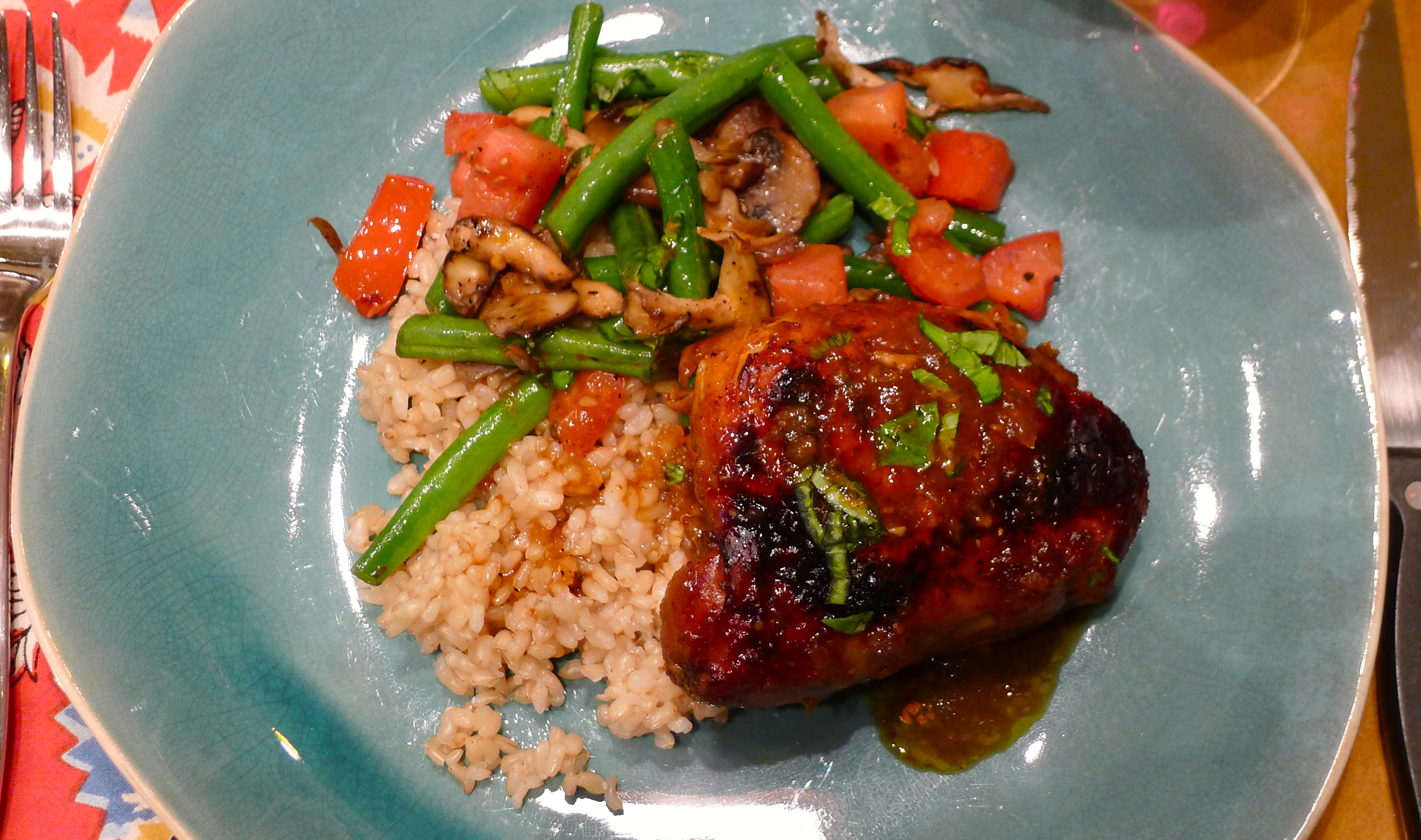I served the chicken with a medley of sautéed mushrooms, green beans, and fresh tomato. Don’t forget the extra sauce– despite the chicken’s juiciness, the sauce really makes the dish. Each tender bite has that magic spicy-sweet combination that I adore.