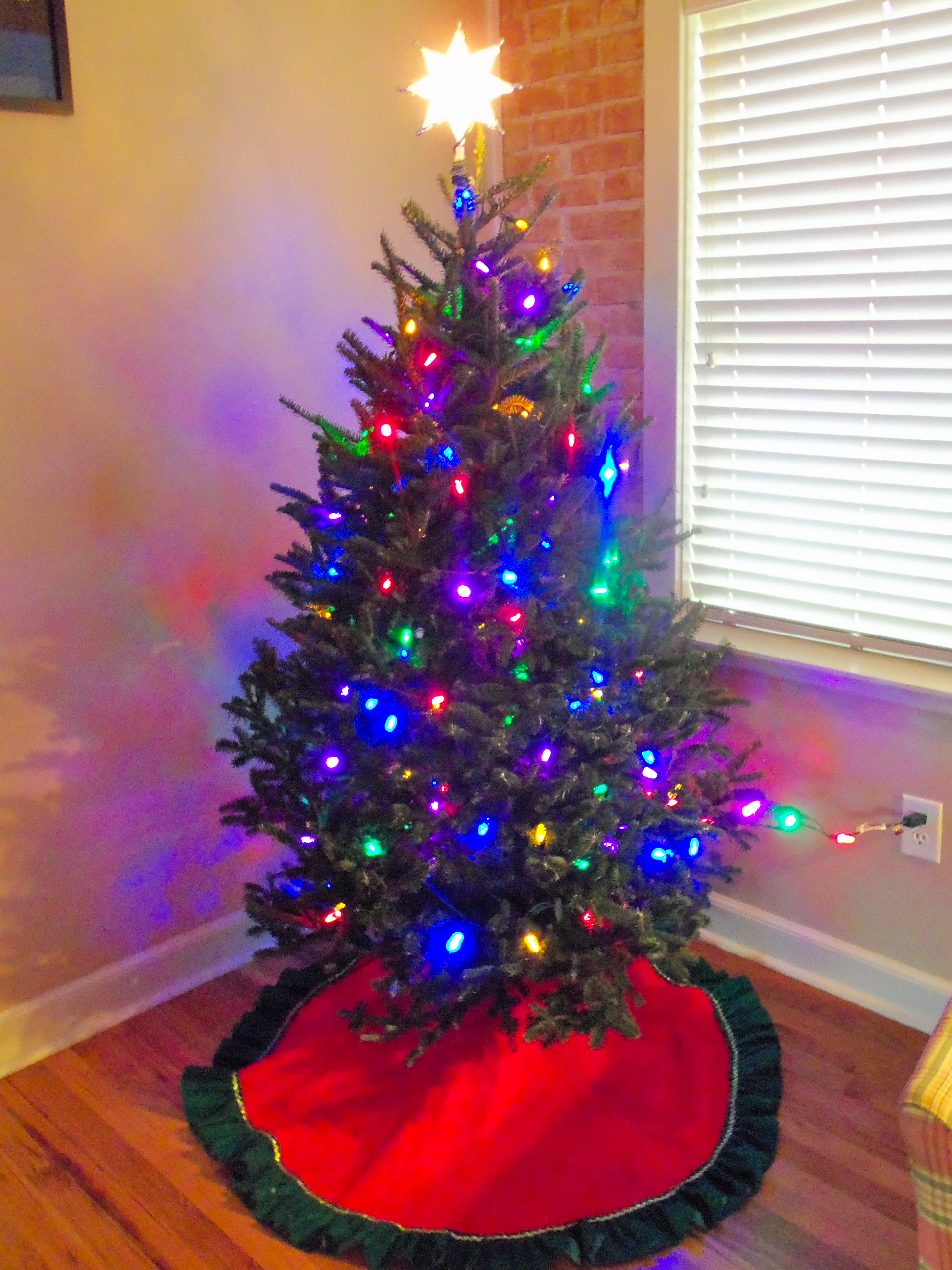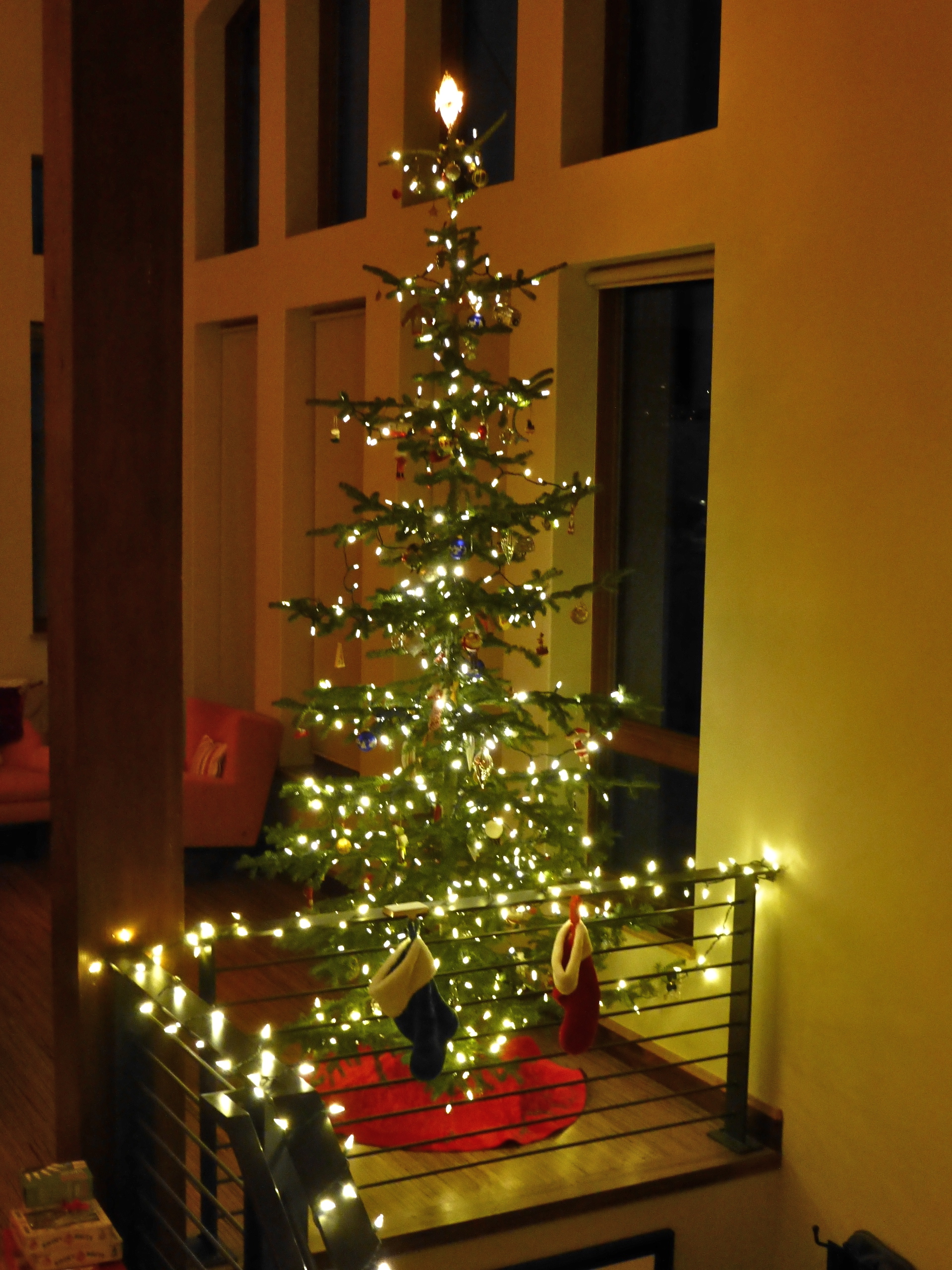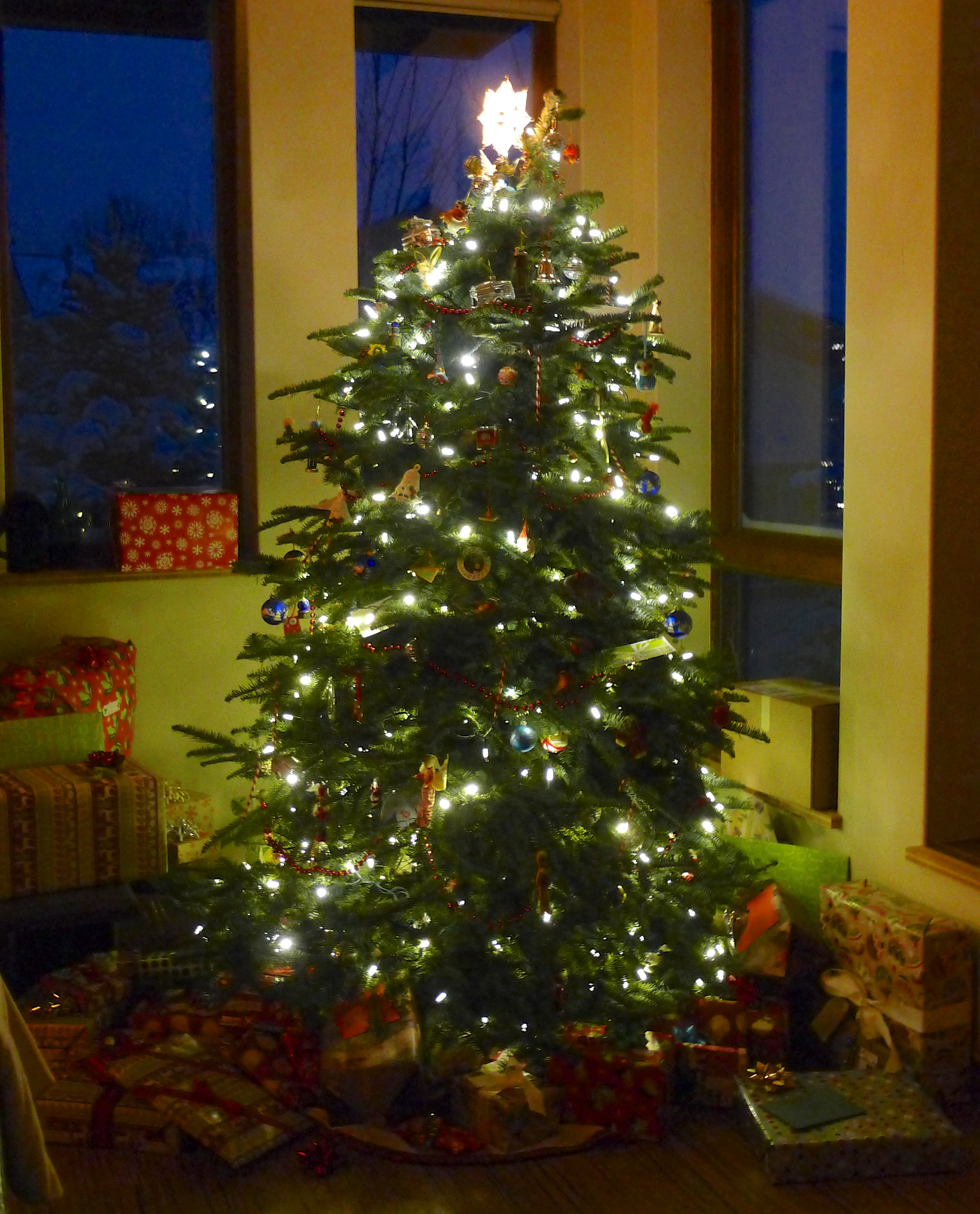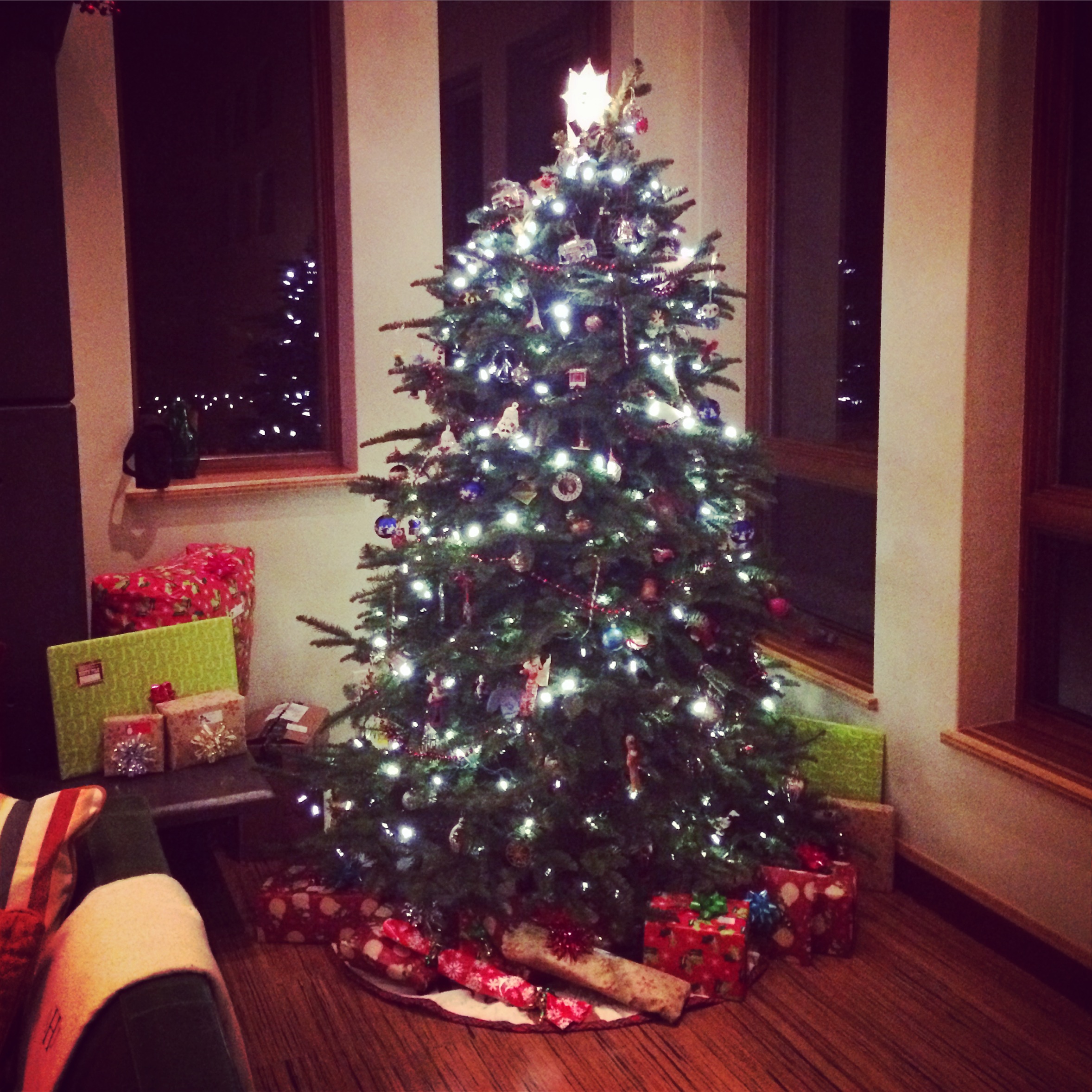 Thankfully, it wasn’t as difficult to get Boris off of the truck, up the stairs, and into the living room as it was with Big Bertha. There was a bit of trunk-trimming and Boris’s off-kilter top section was a little tricky, but he fit right into the designated Christmas tree corner.