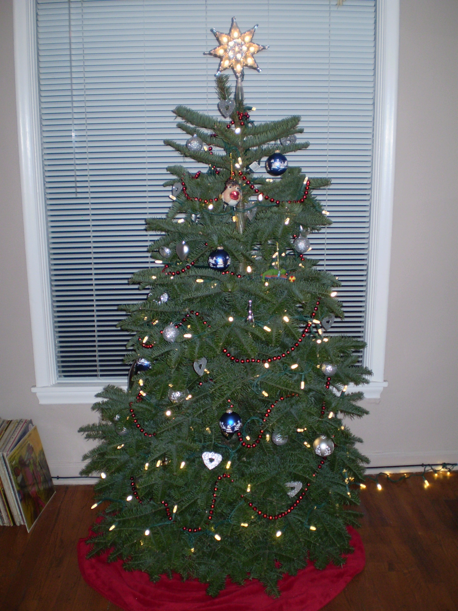 I know we’re not the only ones who name their Christmas trees. Let’s pay a visit to Christmas trees past. For the first couple of years, all of our trees (at my house and at John’s) were named Sherman.