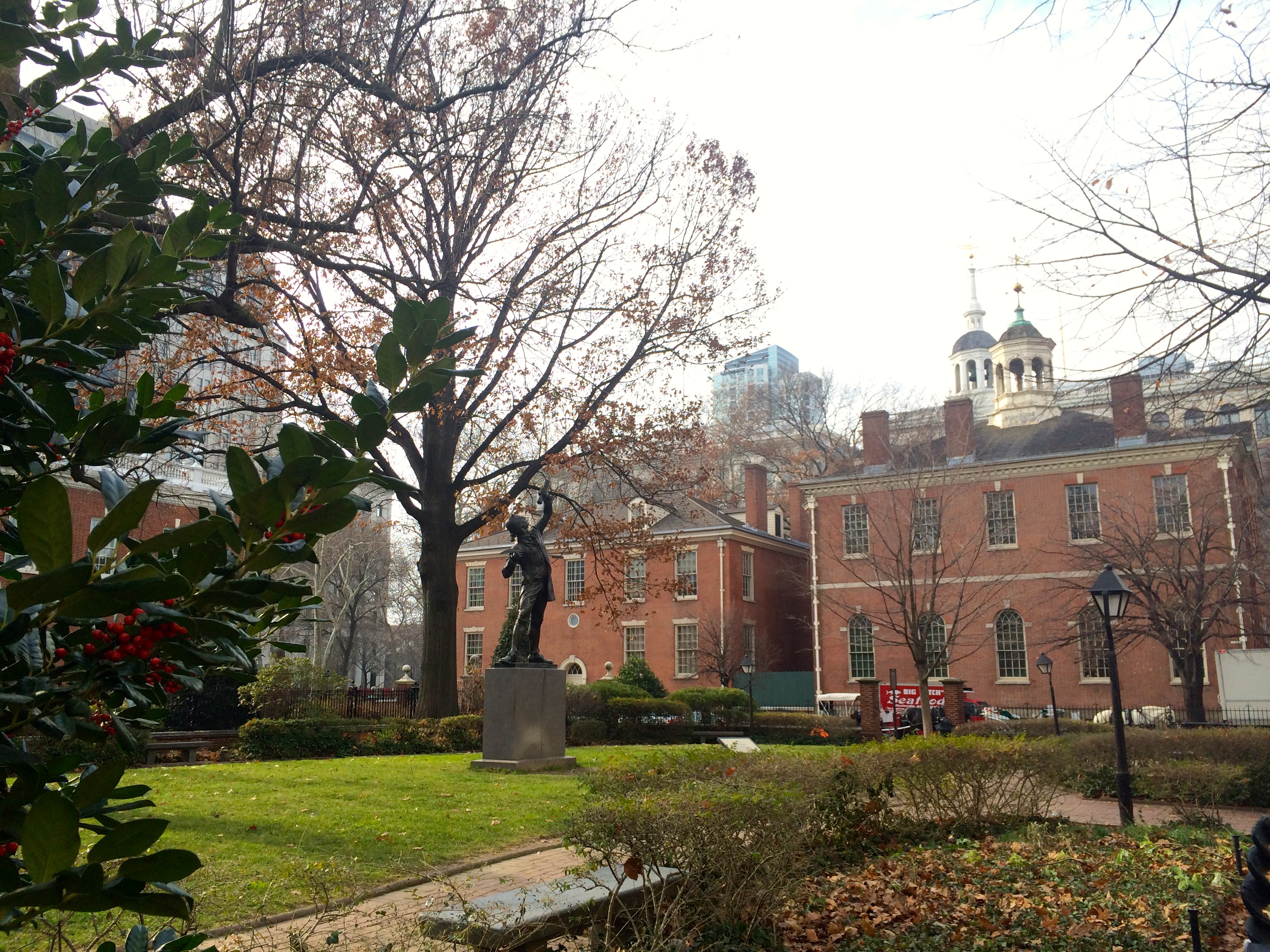 A couple of days is not long enough with family; even though we had quality time together, we felt like we were leaving far too soon. We boarded another train for Philadelphia. Despite all of the train travel on this trip, it didn’t get much easier for me. Thankfully, it wasn’t long until we arrived in Philly and checked in to the Hotel Monaco near Independence Square.