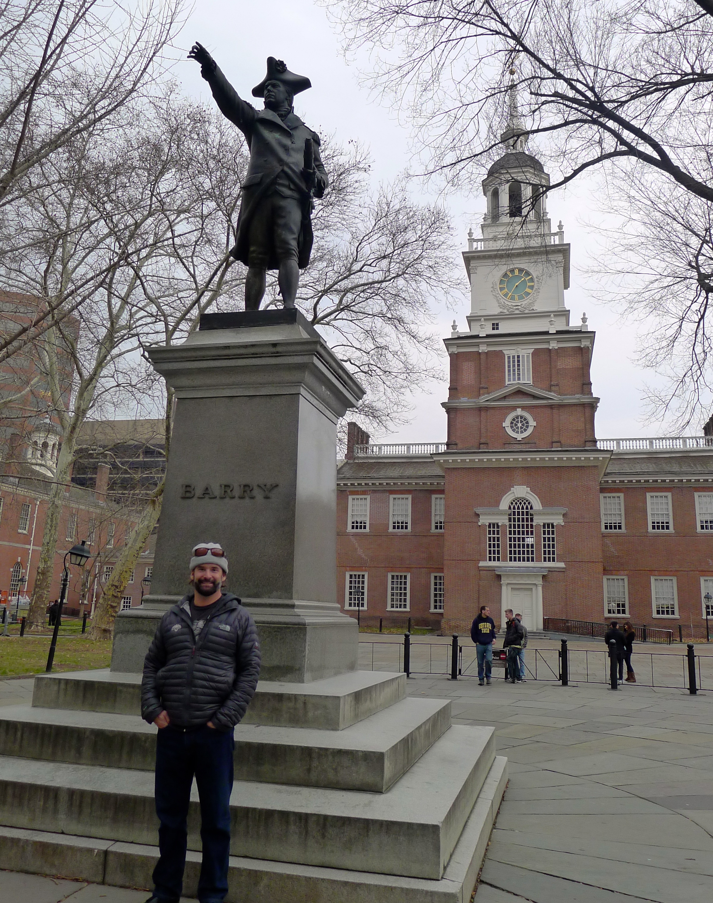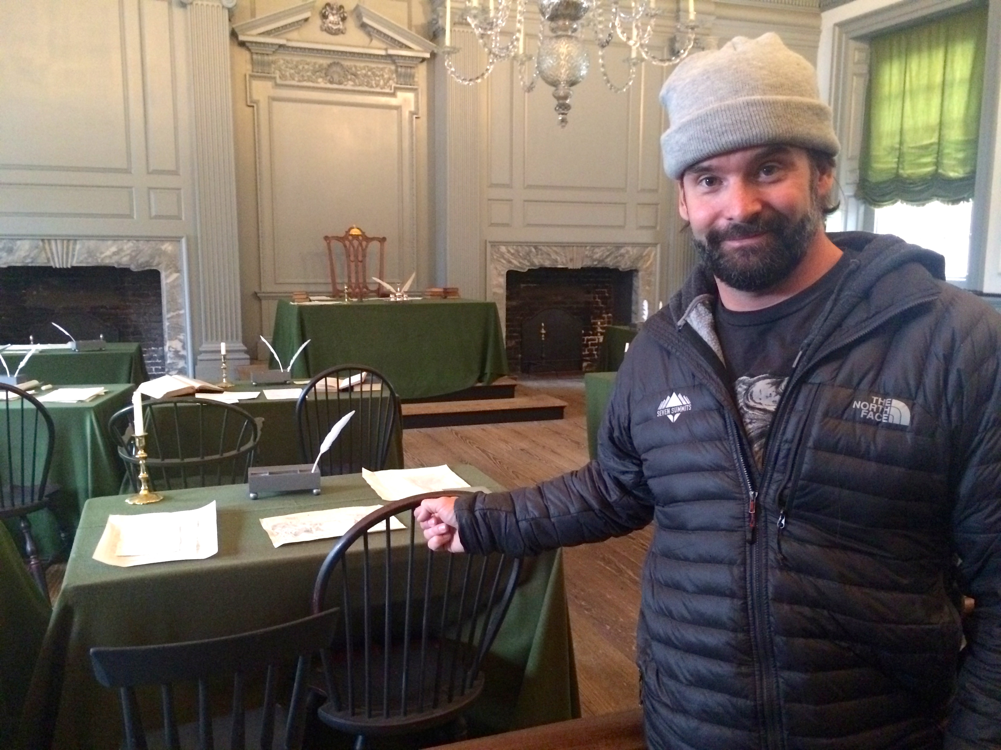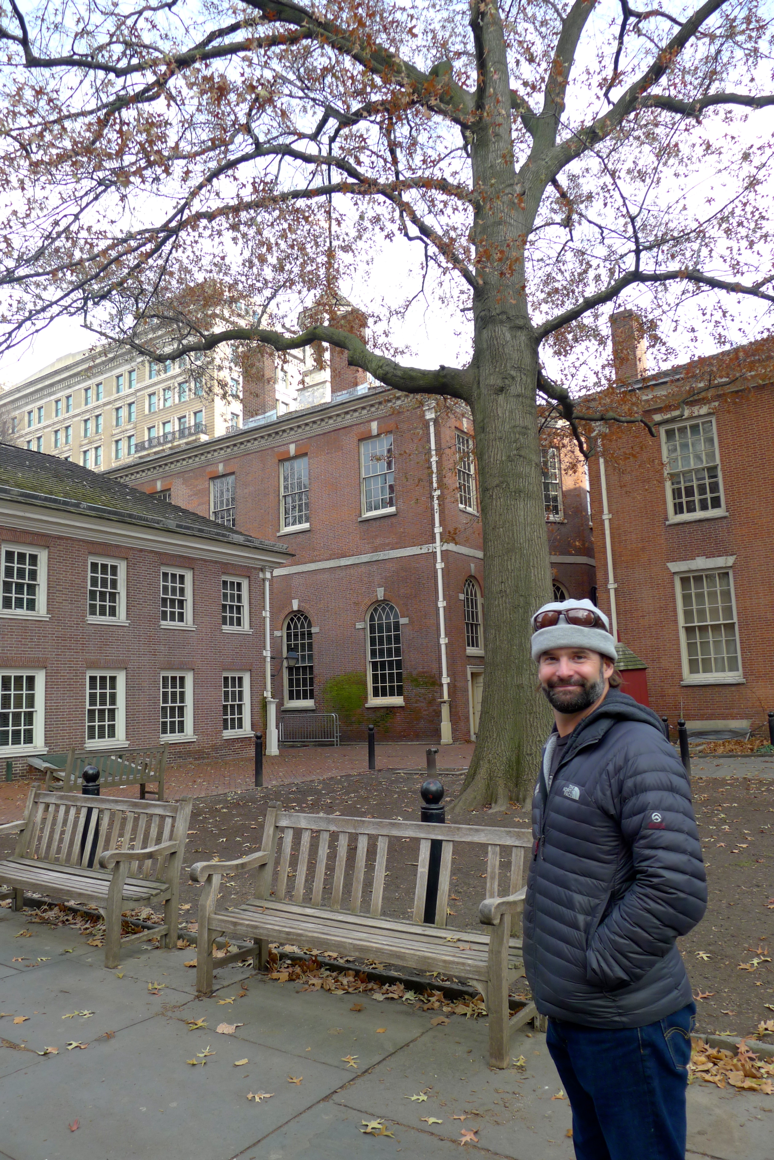 The last day of our trip would be a big one: we’d dive into some serious American history, visit the Liberty Bell, and hit a Flyers hockey game. After a delish lunch, we wandered around the square, touring the actual buildings where our country’s founders signed the Declaration of Independence and U.S. Constitution. John is a descendent of John Witherspoon (a signer!) and our tour guide pointed out the desk where he likely sat in the 1770s. Amazing.