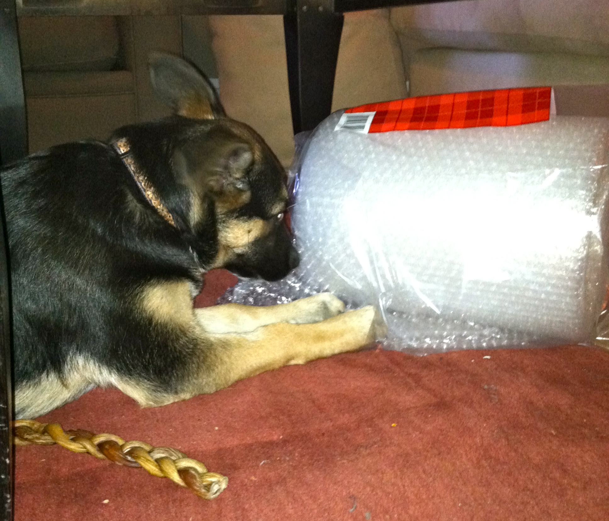 Not quite ready for her treat, but not letting it out of her sight…
