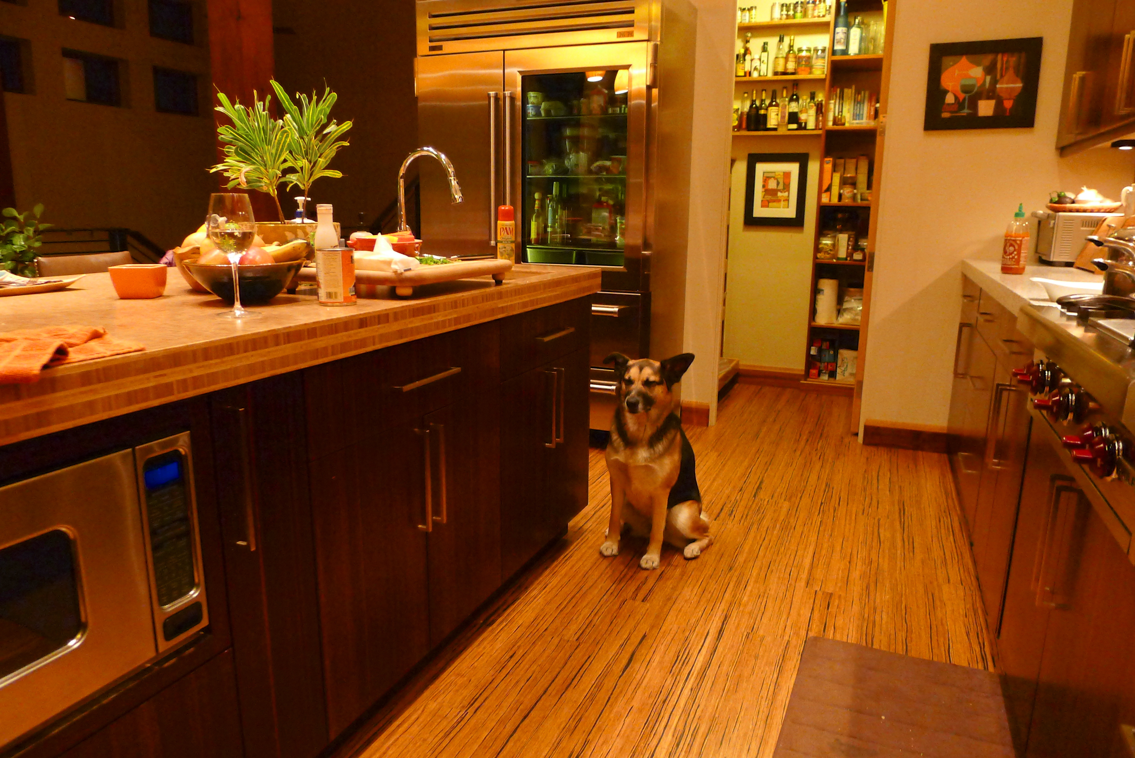 Next I added the poblano pepper and mushroom, and after a few minutes, I added the garlic and jalapeño. While the veggies cooked, John finished up Christmas thank you notes and provided a little background music. Cholula provided, ahem, moral support (Translation: she sat nearby, hoping for cheese.)