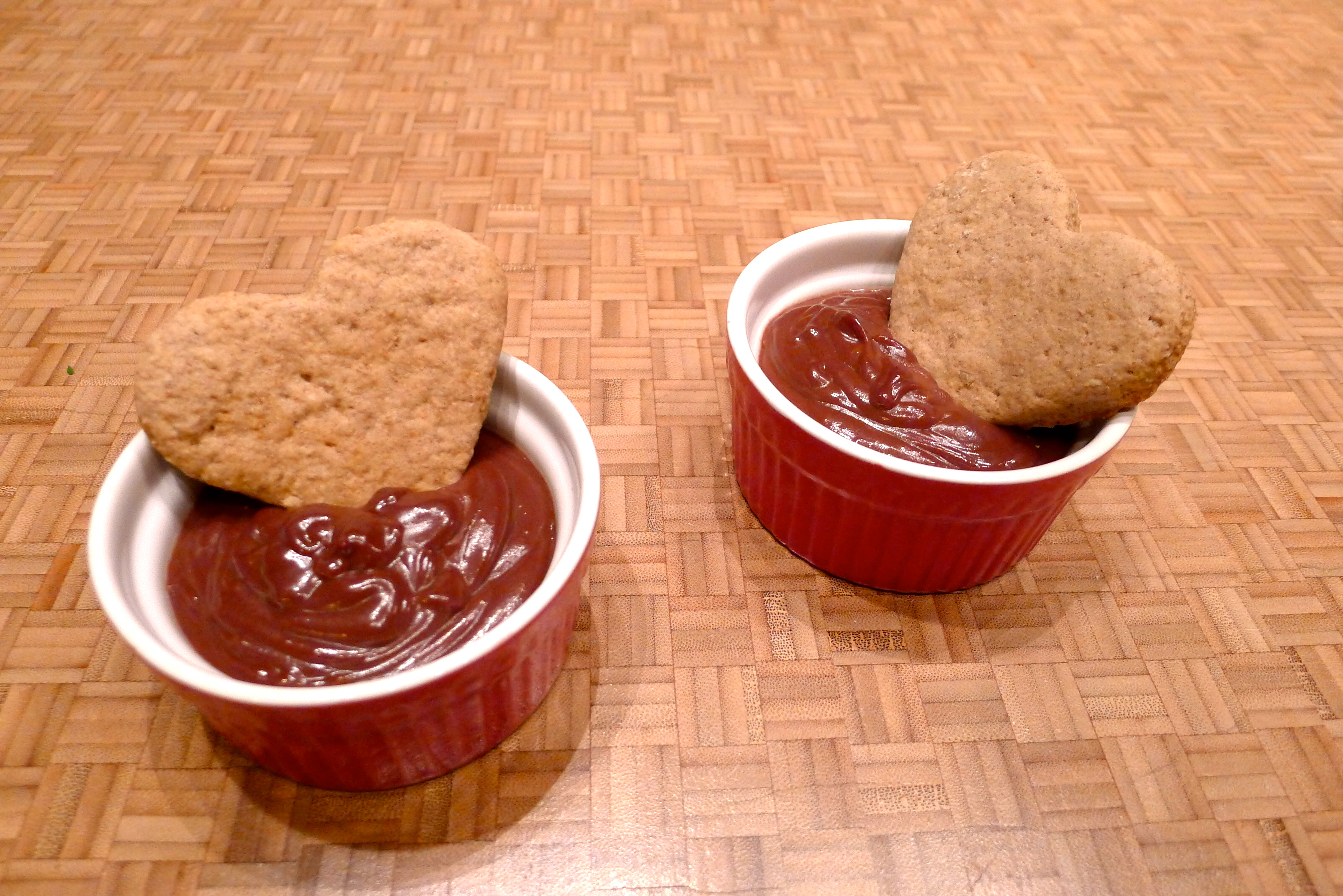 Last Valentine’s Day, I was surprised at how easy it was to make chocolate molten cakes. Maybe there’s something about love and chocolate that just go together, because this year, I made another rich and dreamy dessert: Spicy Chocolate Pudding served with homemade graham hearts.