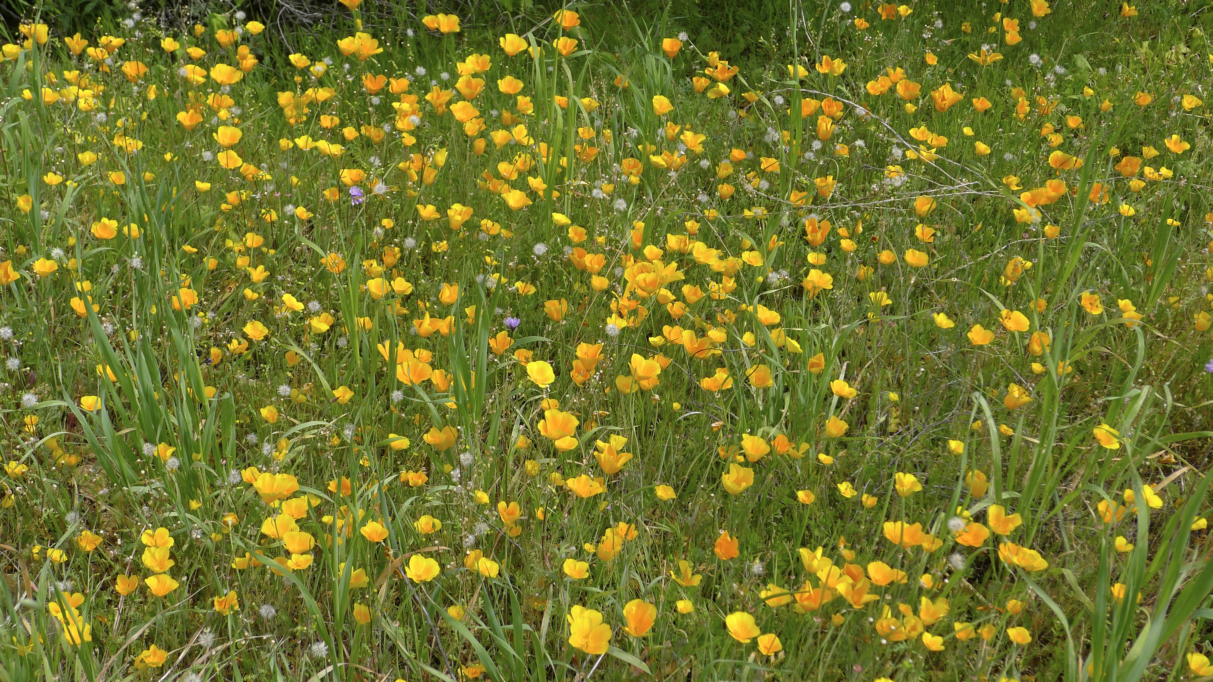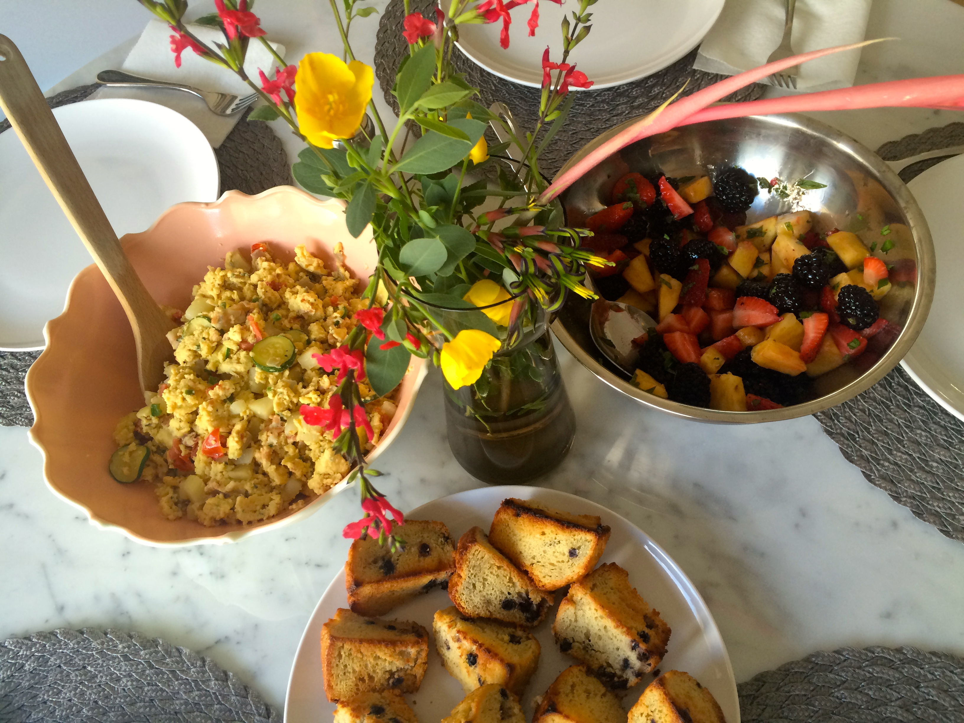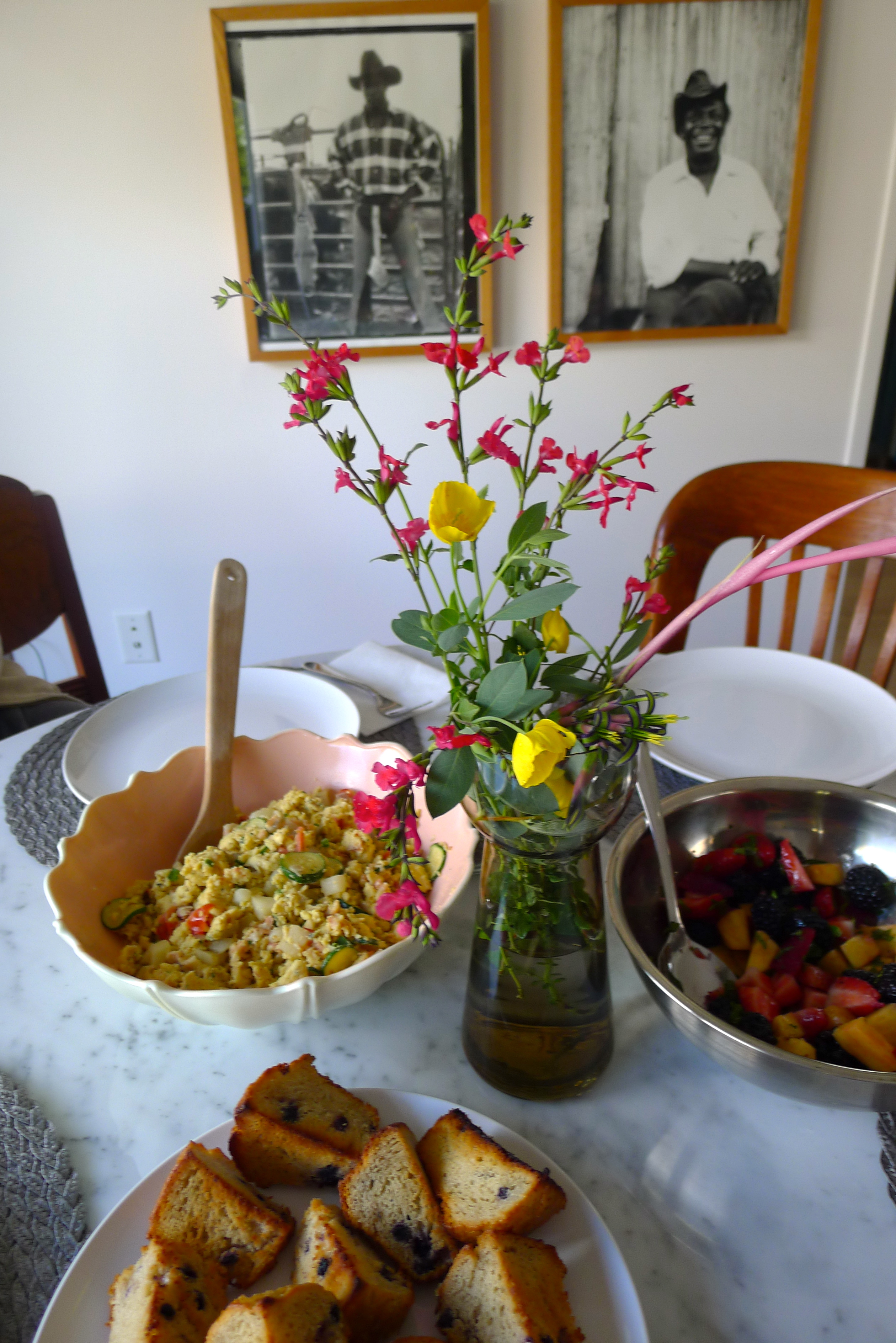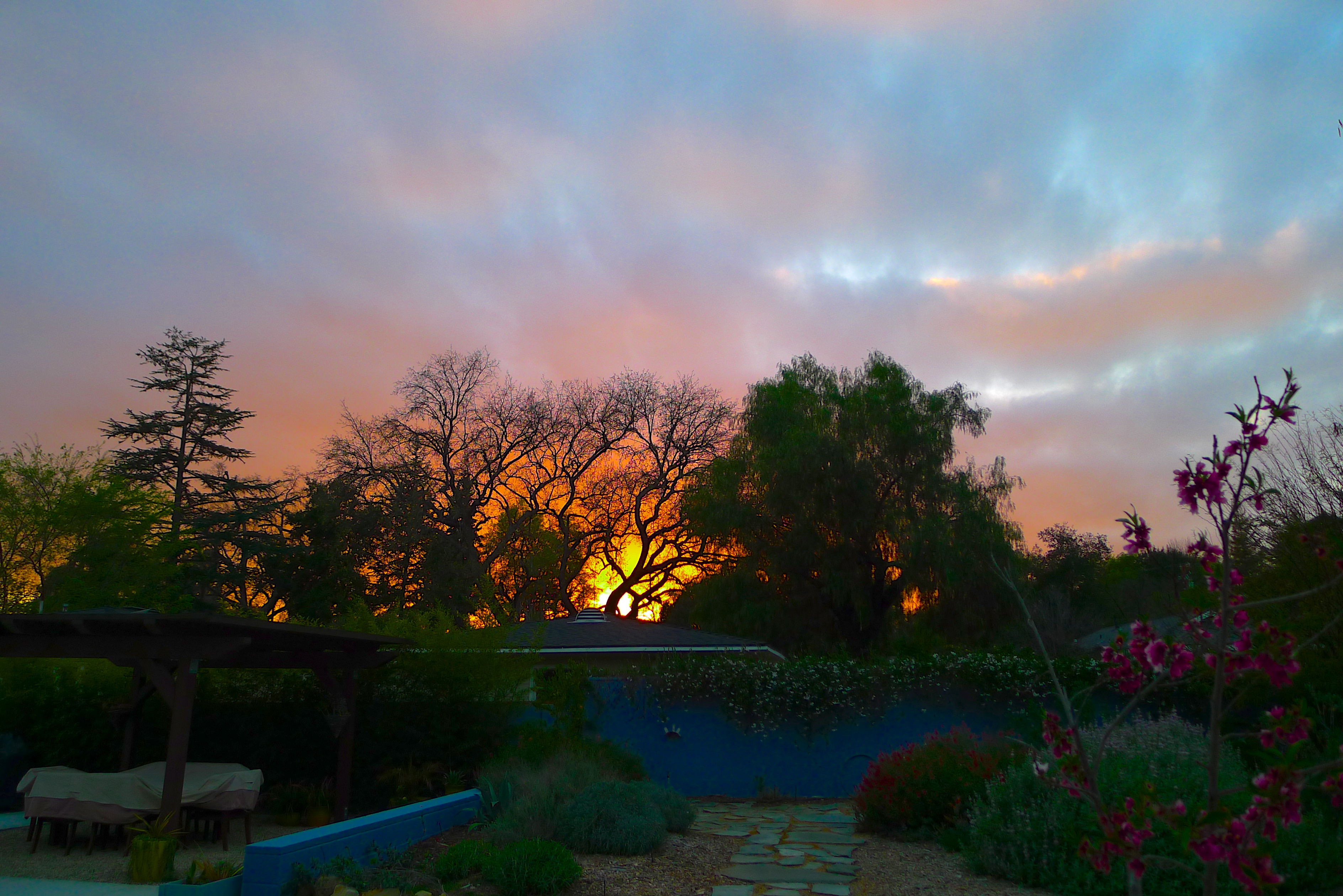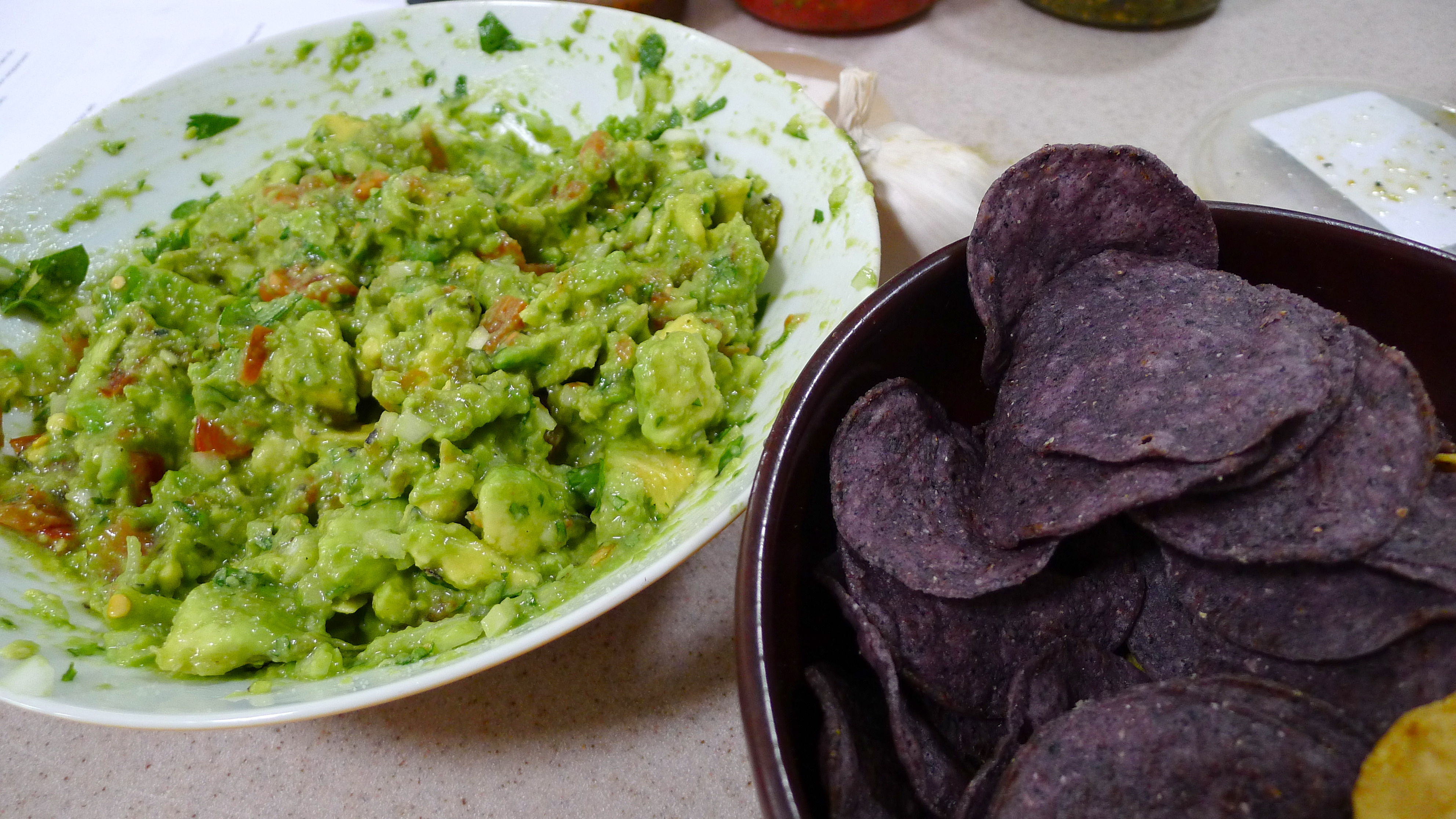 On Saturday, we took advantage of the beautiful weather and walked to town for coffee before heading out on a hike. With lots of recent rains, the hillsides were unbelievably vibrant and green. The view from the trail got better and better; we could see orchards and the entire Ojai valley. We strolled alongside trees laden with ripe oranges, inhaled the intoxicating aroma of orange blossoms, and passed many happy dogs hiking with their owners. We were so distracted by our surroundings that we ignored the darkening clouds overhead. A few raindrops later, we were back at the house with an obvious post-hike snack in this part of California: perfectly delicious fresh guacamole and crisp wine in the sunshine.