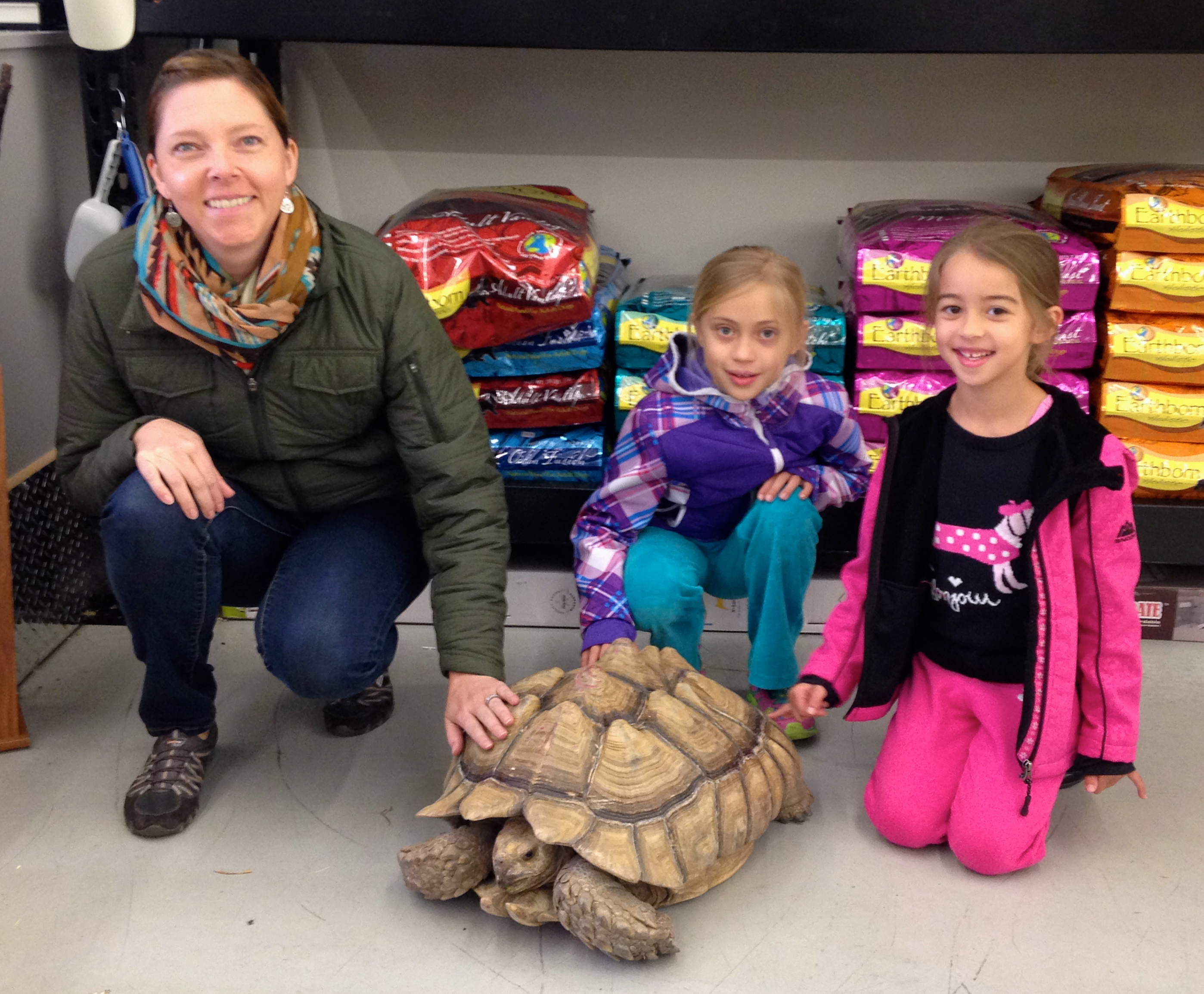 On Monday, Amanda and I had some time to ourselves. We went to breakfast and reminisced about the Ojai fun. We stalked a house they’re looking at buying. We relaxed with pedicures and tea. We tried a weird wrinkle treatment and watched home-improvement shows and sipped wine. We picked up the girls and visited spiders and lizards and rats and a giant tortoise at the pet store.