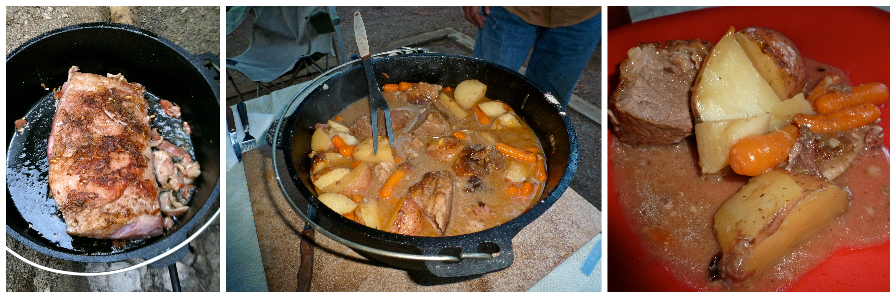 On a recent family camping trip, we made incredible pot roast in a Dutch oven and grilled fresh-caught trout. (One look at my folks’ set-up and it’s clear where I get inspiration for my own! See: wine glass.)