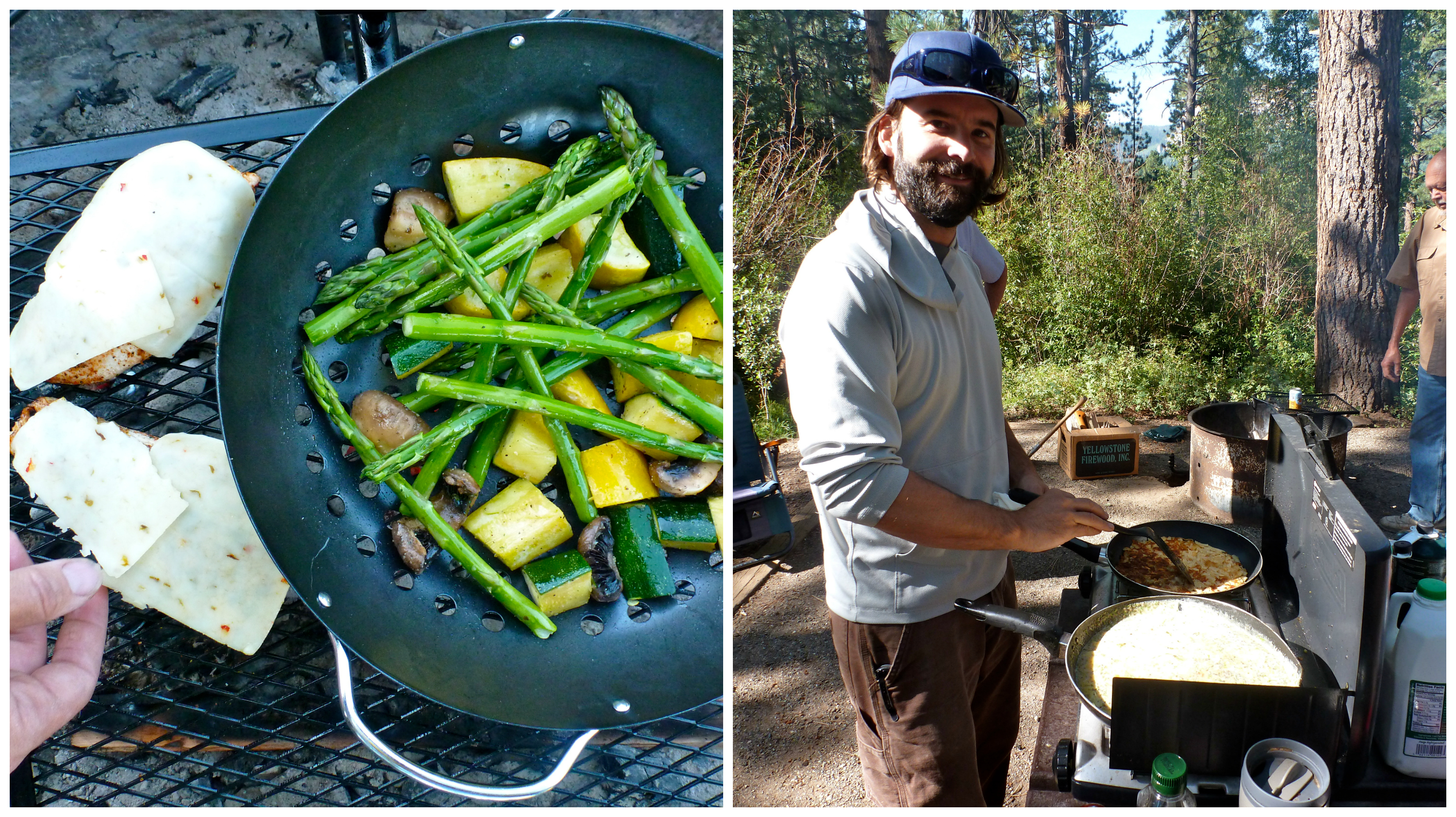 Breakfasts are usually granola and yogurt, scrambled cheesy eggs, hashbrowns, or bacon (obviously), but sometimes we’ll shoot for an omelet or make fried egg sandwiches or a breakfast quesadilla. Don’t forget hot coffee from the little French press!