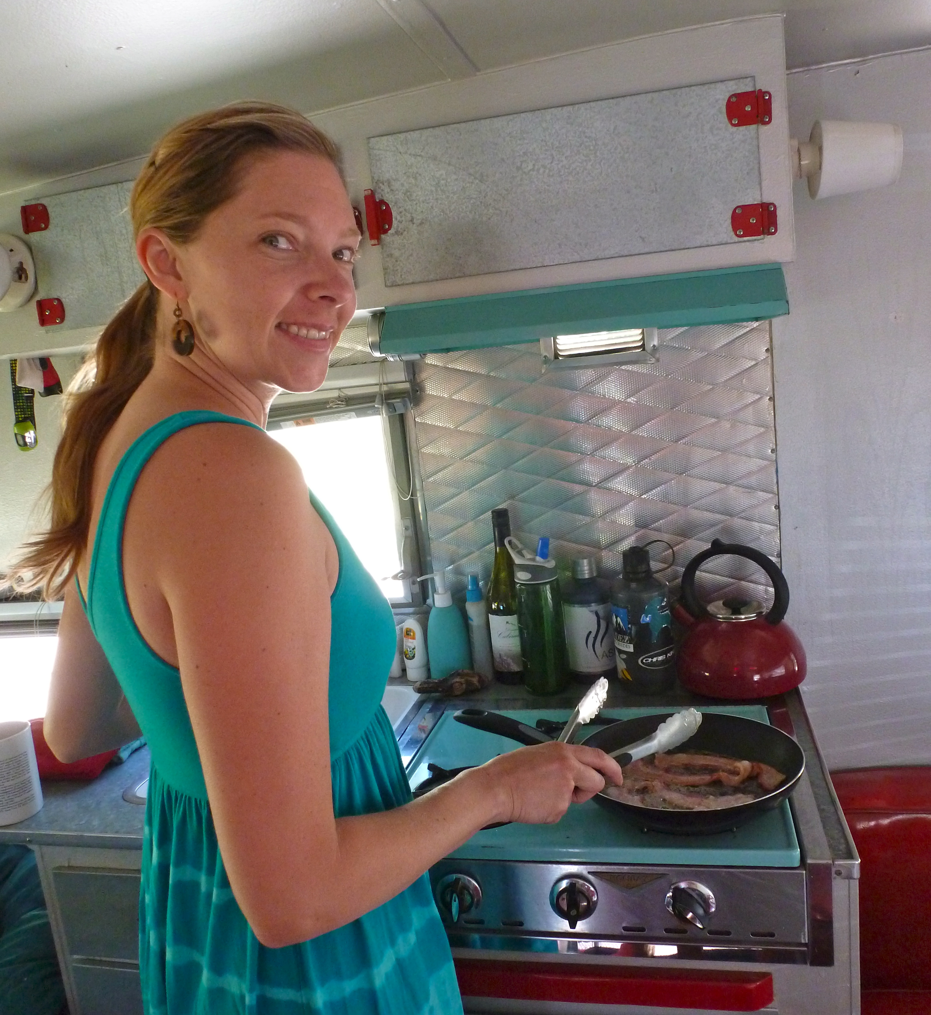 “I love camping. My parents went on a camping trip for their honeymoon. They toted us kids along on their adventures from day one, and their love for nature rubbed off on us. As a baby, I hung out in a playpen on the banks of various rivers and lakes while my folks caught dinner. I spent much of my childhood exploring the great outdoors with my little brother, barefoot and getting dirty. I slept in tents or trailers all over the country, snuggled into my sleeping bag. The smell of a campfire comforts me. The gurgle of a creek, preferably accompanied by crickets, is my favorite lullaby. And nothing beats waking up to the smell of a hearty camp breakfast already in the works.”