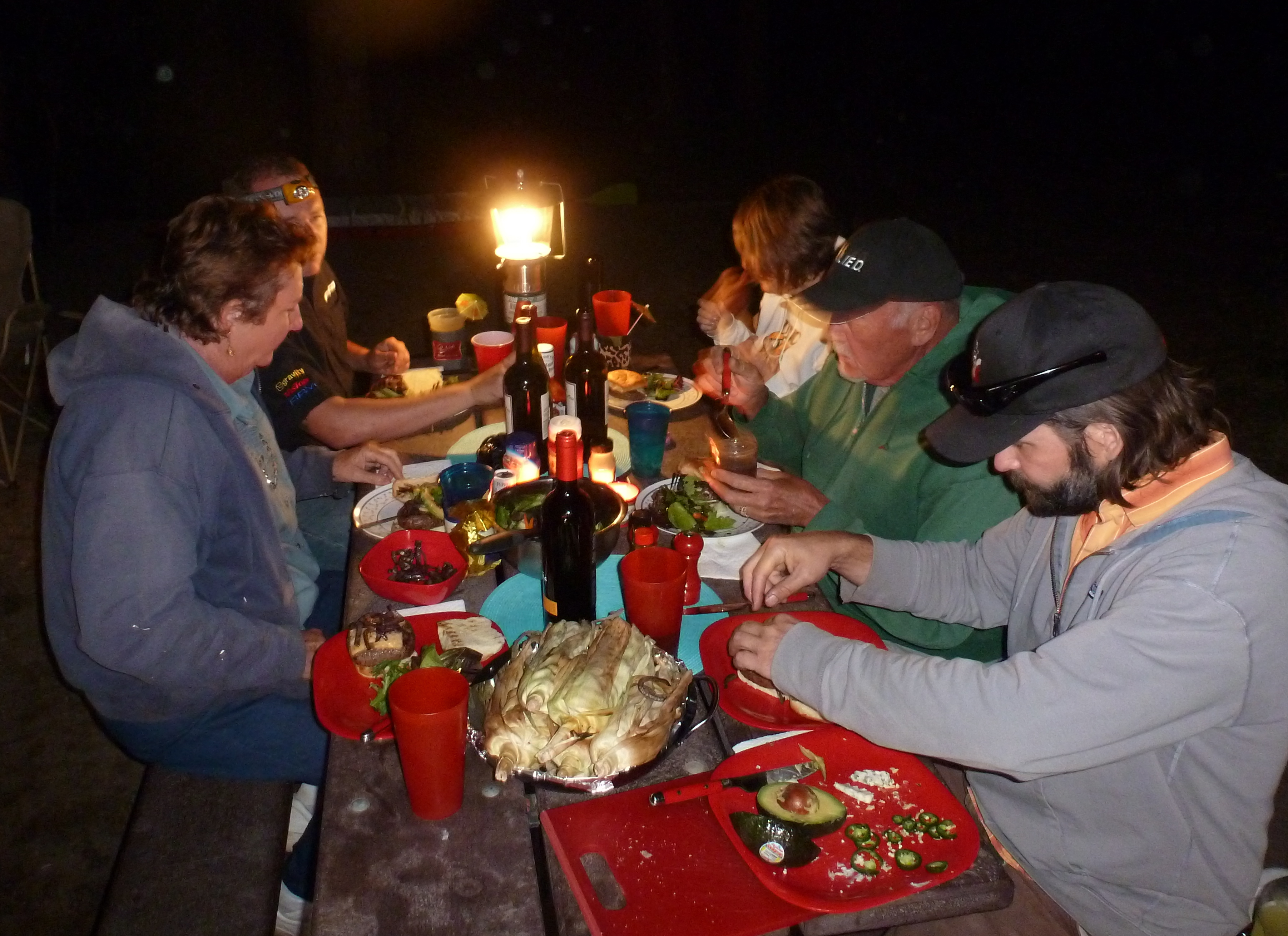 Another thing John and I have in common is our love of good food. Though we enjoy eating out, some of our favorite date nights are at home in our kitchen together. We’ll put on some music, set out some snacks, pour a couple of drinks, and dance our way through creating a meal. Then we clink our glasses over candlelight and savor whatever deliciousness landed on our plates. So it’s only natural that we eat well when we’re camping. I remember “camping food” in college meaning bean and cheese burritos, basic burgers, or spaghetti with canned sauce. Now, we joke that we sometimes eat better on the road than at home. Our meals aren’t fancy, they really don’t take a lot of effort, and we enjoy the process: perfect outdoor eating.