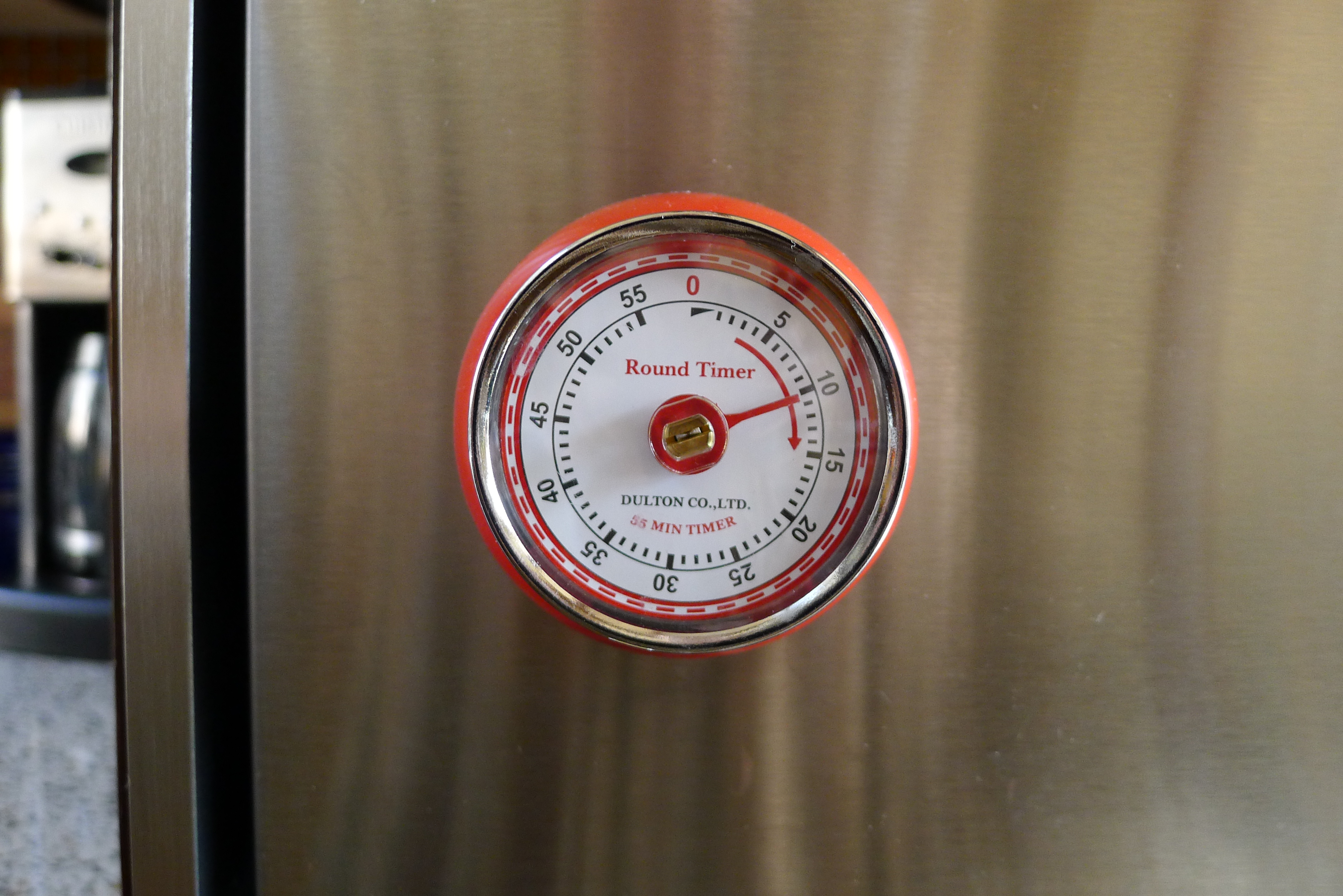 After about 20 minutes, I strained out the basil leaves and let the syrup cool. Then I added the zest and juice of a couple of lemons and popped the mixture in the fridge for a bit. The ice cream maker took over from here: I simply poured in the lemony-basil mixture into it, switched it on, and walked away. After a half an hour, I had delicious sorbet! A dip of my spoon revealed a tartly sweet and herbal flavor that simply screams sunshine. I transferred the sorbet into freezable containers to harden up even more.