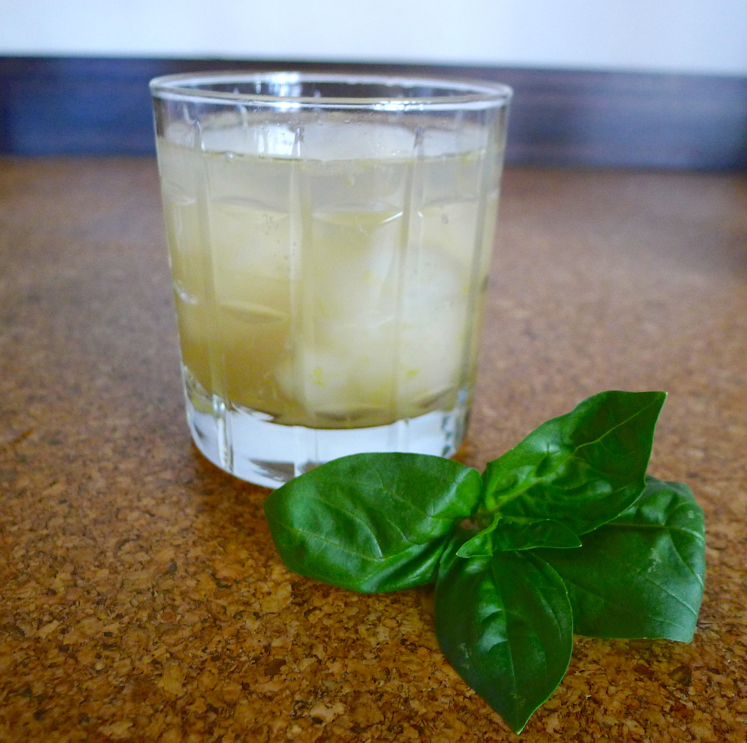 In a small saucepan, combine sugar and water and bring to a boil. When the sugar has dissolved, remove the pan from the heat, add the basil leaves, and put the lid on. Allow to steep for a half an hour, then strain and discard the basil leaves. Let the basil syrup cool completely. Add the lemon zest and juice. Pour it into an ice cream maker and follow the manufacturer’s instructions. Transfer the sorbet into freezable containers and freeze to harden more. Serve on a spring day (or on a day when you wish it was more spring-like). Yum! Lemon-Basil Cocktail For one drink, you’ll need: