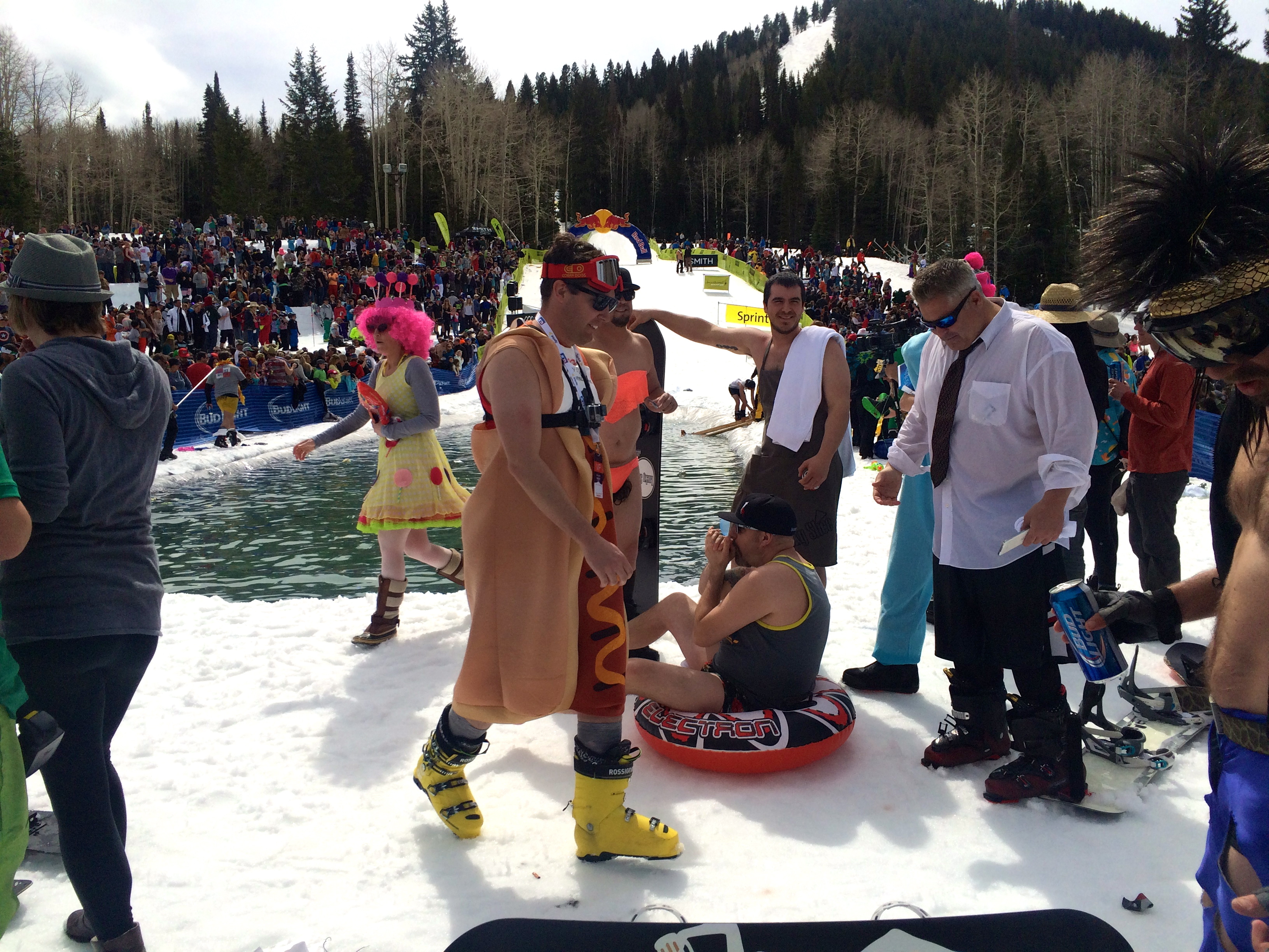 Every March, The Canyons Resort holds an end-of-season party which involves a pond-skimming contest. Basically, people dress in costume and create outrageous vehicles in which to ride down a ski slope and skim across a pond at the bottom. The event is always full of debauchery and dancing and good people-watching. (Take a peek at this link to see more from this year! You’ll laugh!) Nancy, Spencer, and Sydney always come into town for it so Spencer can play MC, and it’s a treat for us to have a weekend with dear friends (especially when a visit from John’s family was canceled last-minute- boo). I didn’t always pause for photos over the weekend, but managed to catch a few fun moments: happy hour at home, the big event, family brunch time, a girls’ day, and a BBQ with extra friends. The sun even stuck around until the weekend was over. Welcome, spring!