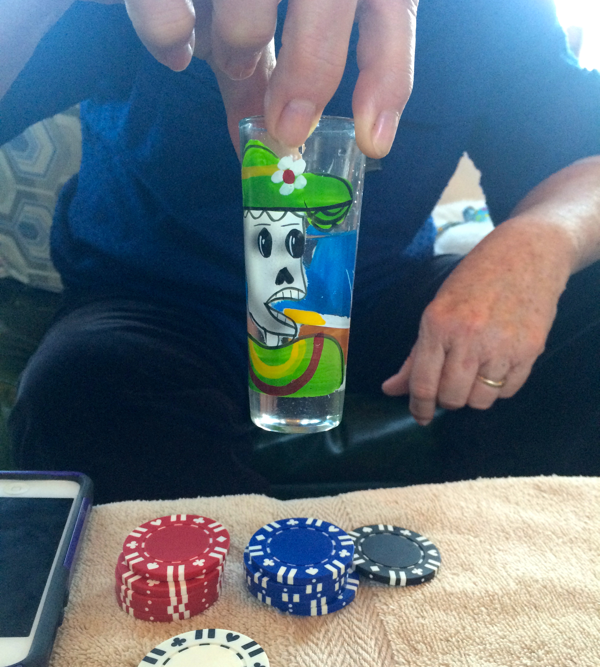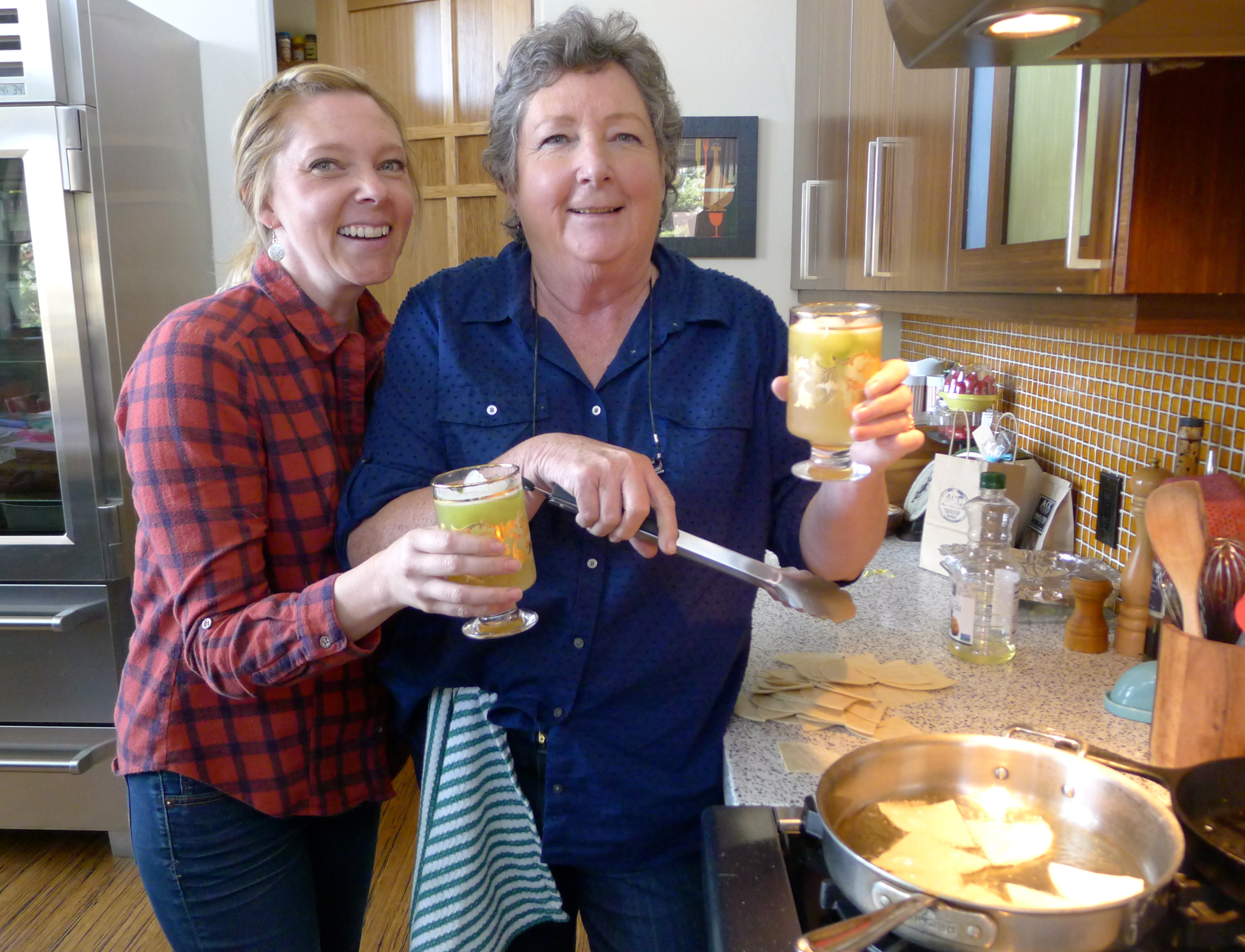 One evening, we had a Mexican theme in honor of the cruise they so enjoyed, complete with salsa music, Ranchera steak tacos, homemade chips with Mom’s guacamole, and margaritas. Oh, and tequila in my Mom’s souvenir glass.