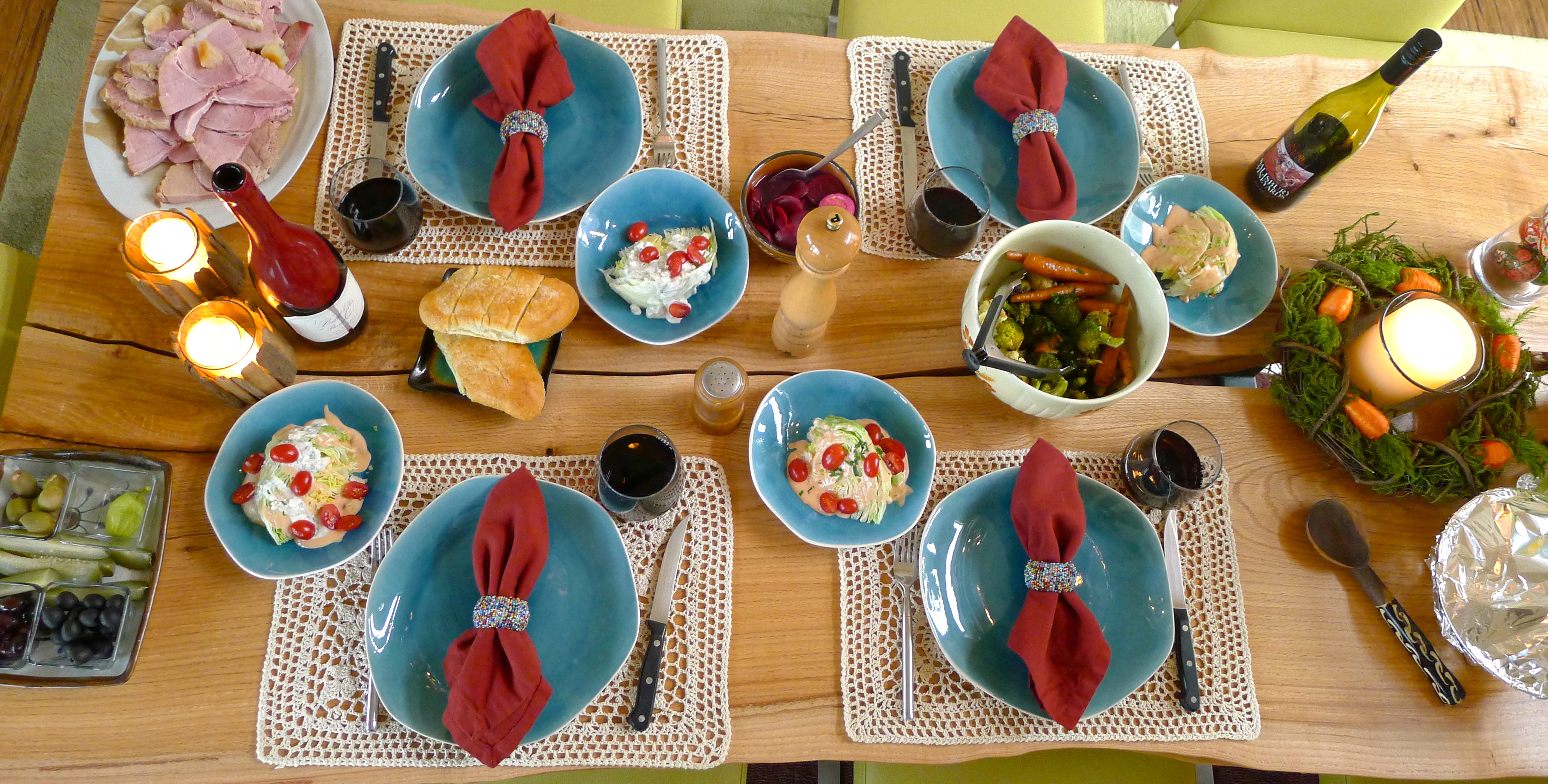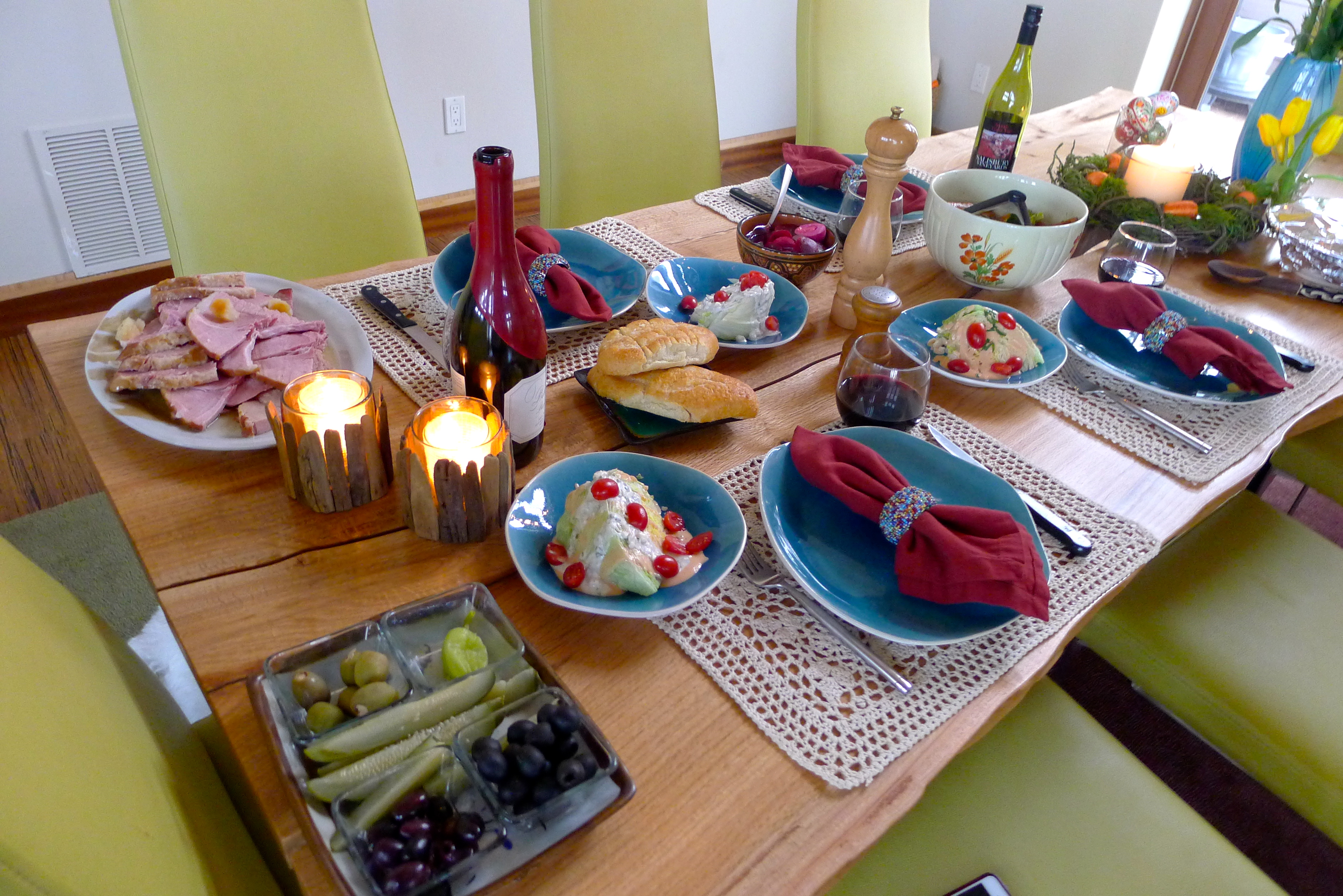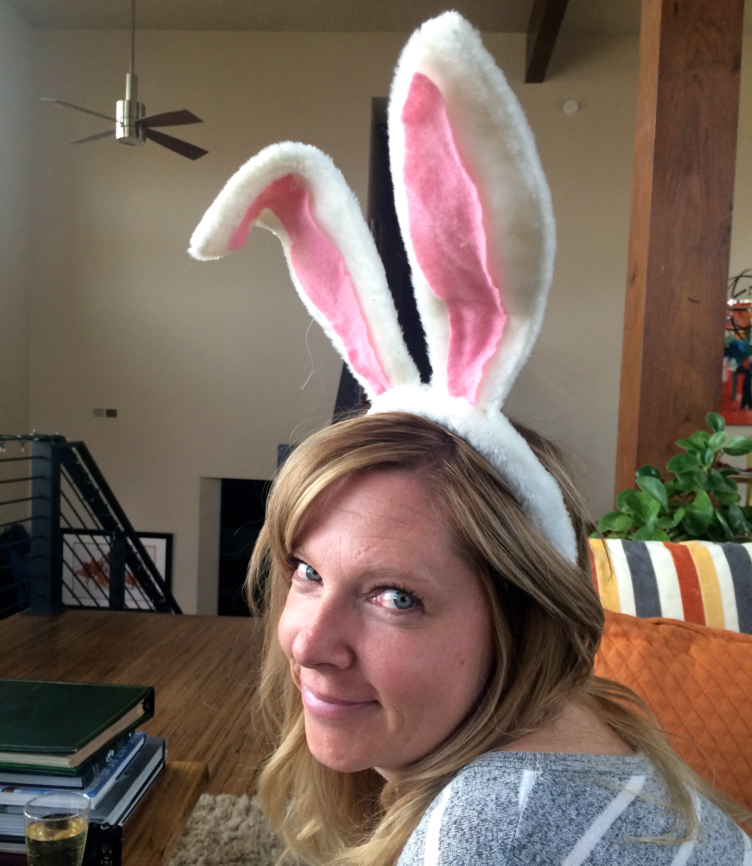 Sunday was slow but steady in the kitchen. Snacks from my childhood appeared on the counter and a pair of bunny ears made their way around the family. We looked at itty-bitty John photos in a family album, relaxed with books, walked the dogs around the block. For our Easter dinner, we put together our traditional ham feast but tried a couple of different sides in addition to the ham potatoes: roasted vegetables and a classic wedge salad. By the time we’d eaten dinner, we were tuckered out and FULL; we even forgot to dive into the ice cream sundaes we’d planned on for dessert!