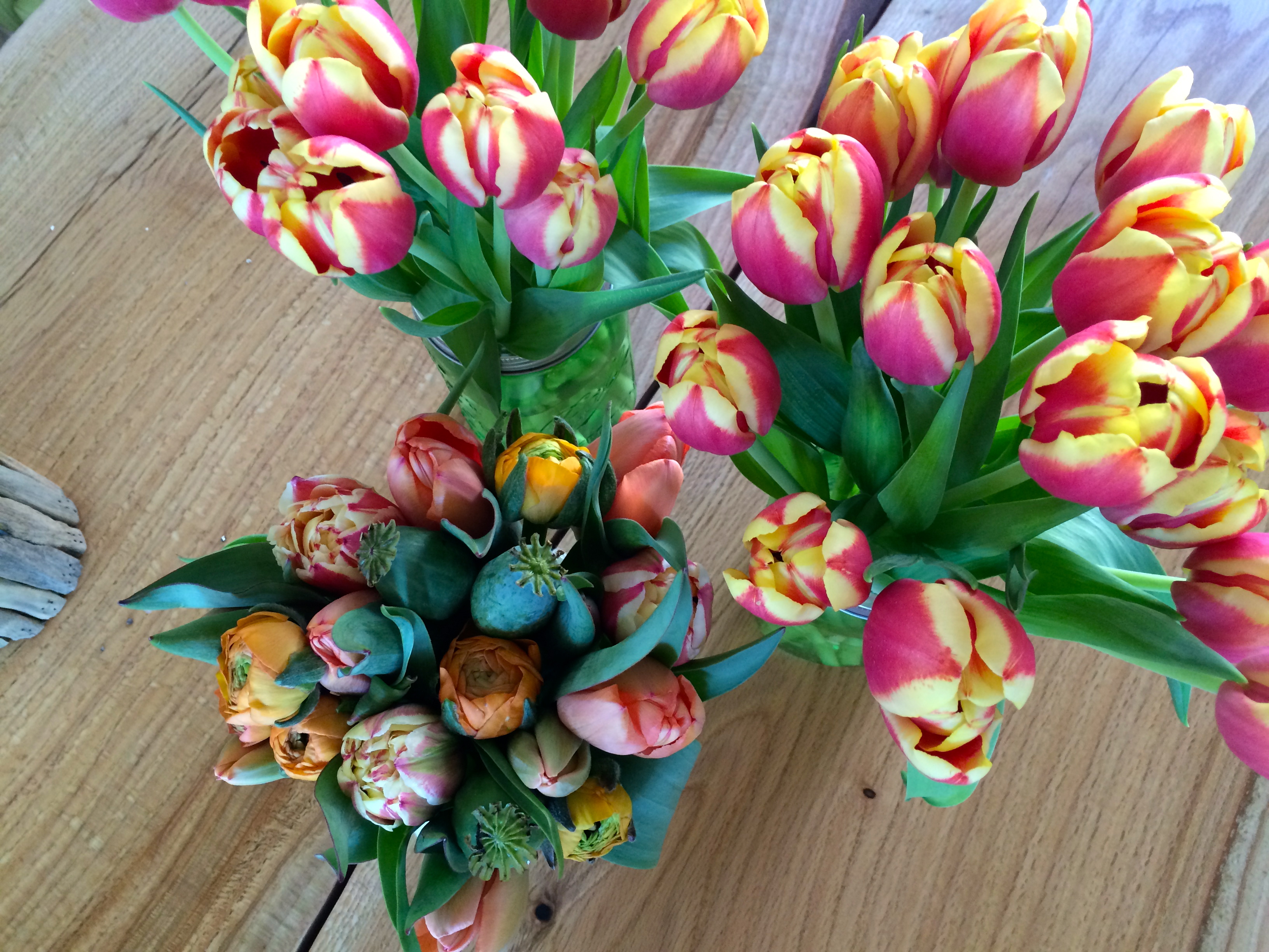 Before our friends arrived, I set the table to feel spring-like. One of our guests is a florist and added a beautiful bouquet to the table. We served our trusty (scrumptious) lamb burgers with yogurt-dill sauce, fingerling potatoes roasted with shallots, garlic, and herbs, and a big old Greek salad (I prepped the salad and potatoes ahead of time). When the dinner bell rang, I snapped a photo then set aside the camera so I could enjoy the time with friends. Our friends brought dessert and also helped with the dishes before they left- BONUS! Another fun and delish evening in the books, without a ton of effort or stress.