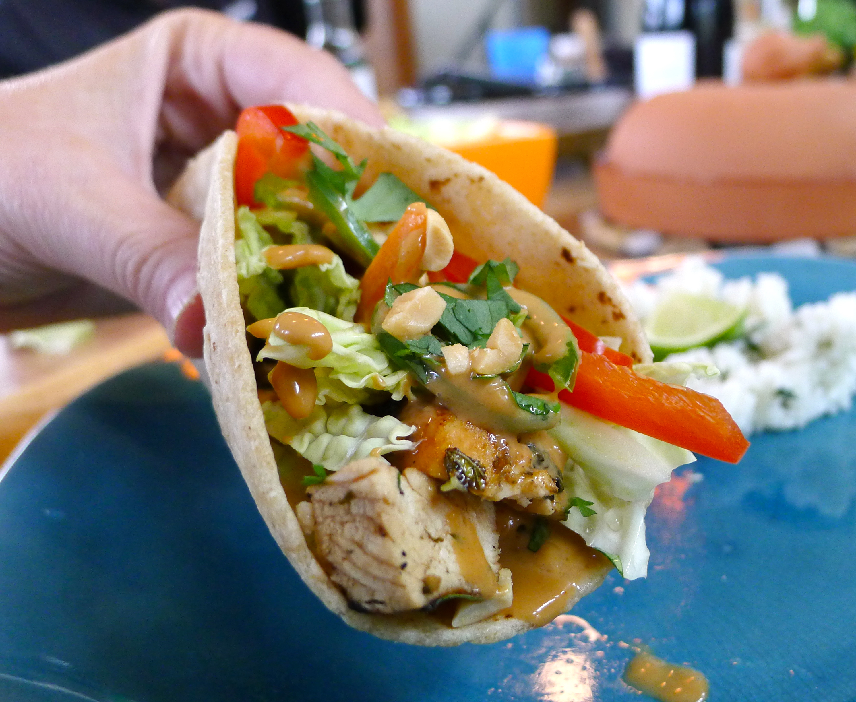 The original Thai Chicken Tacos with Spicy Peanut Drizzle.