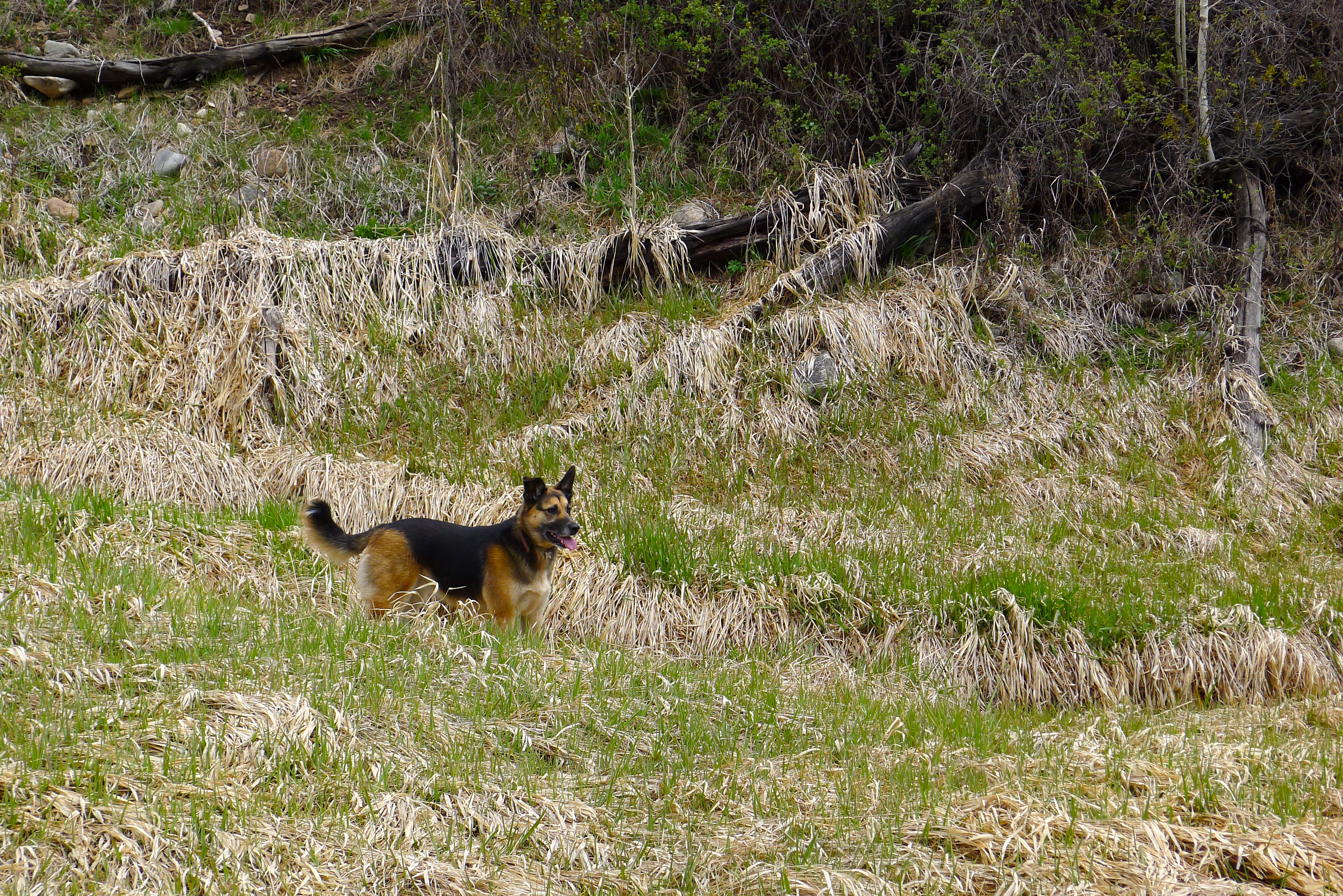We strolled along a stream that seemed to flow right over long grasses. We startled a colorful mallard and his lady. We beat the storm; in fact, the sun even came out for a bit. This time, Cholula’s swim was the finale: the icing on her hiking cake.